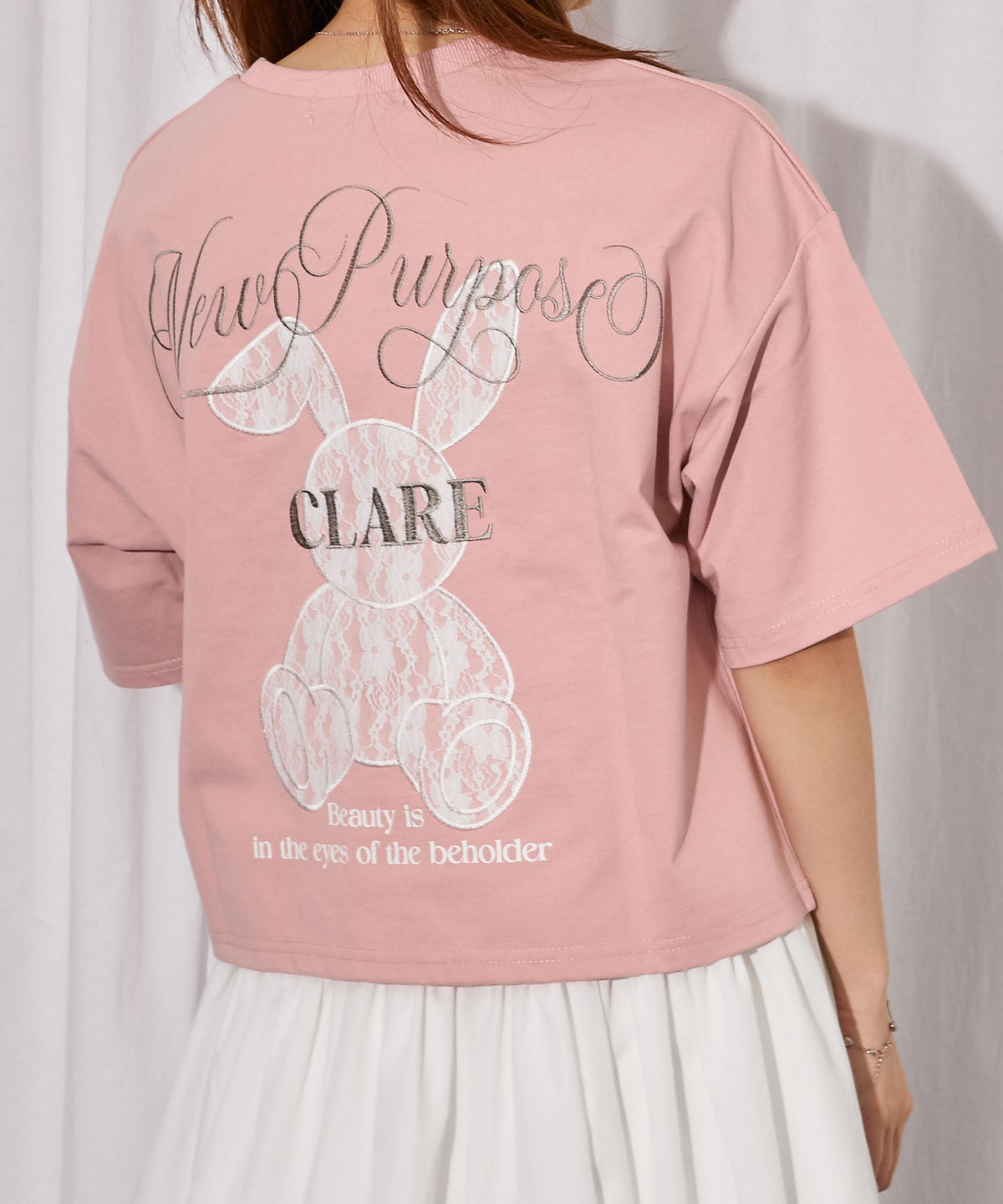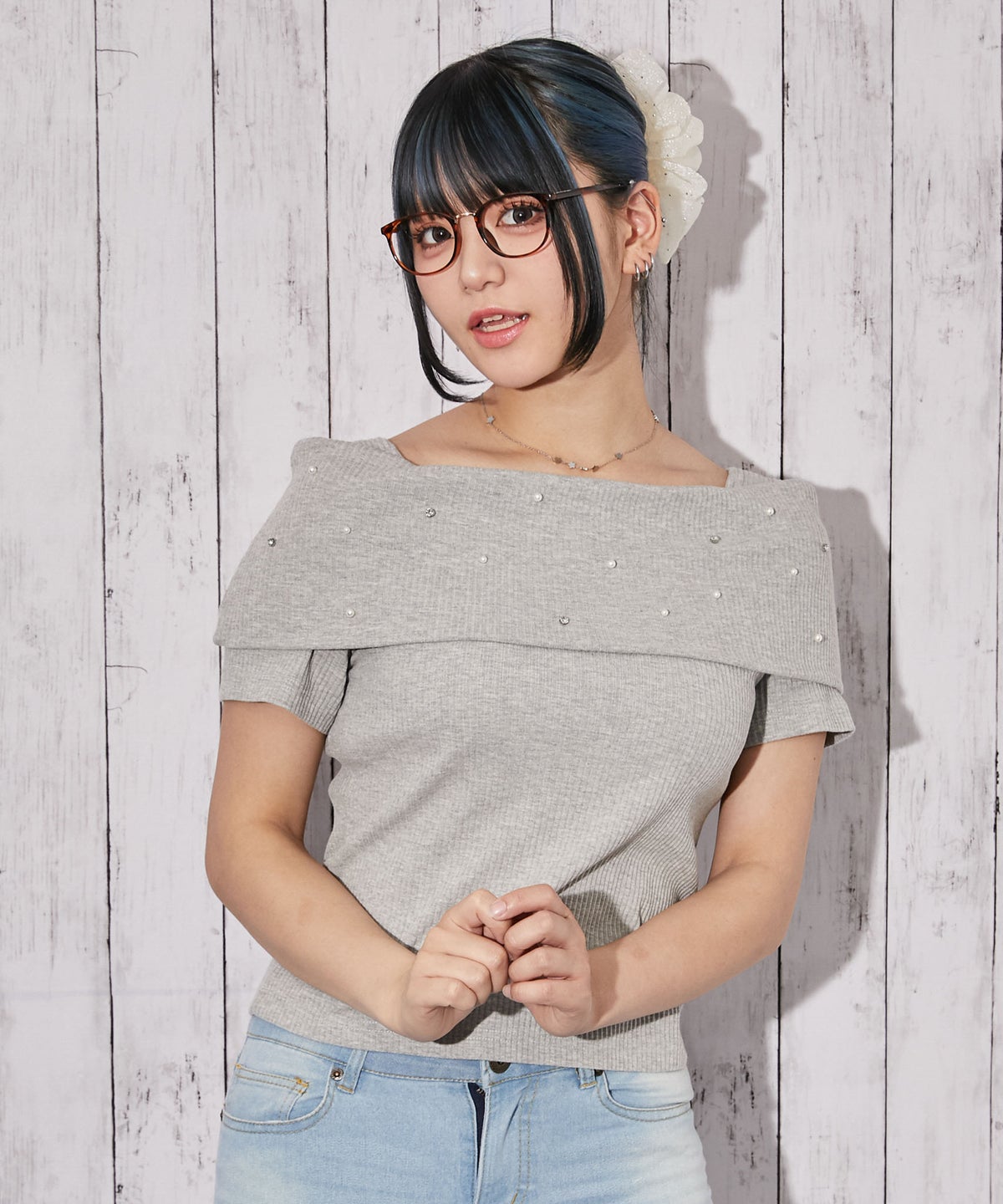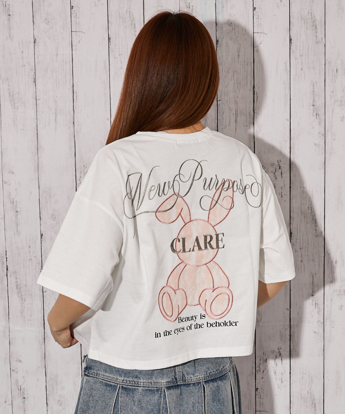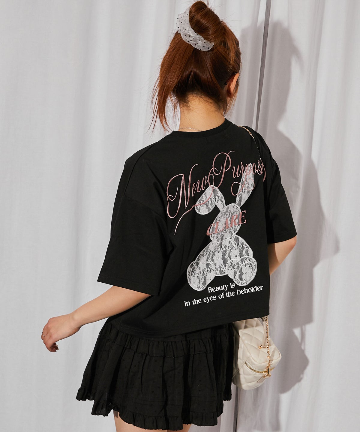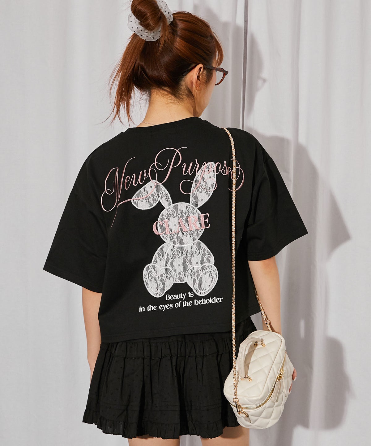 《花柄刺繍×ラインストーン》短丈Tシャツ/Y2K/春夏/全4色