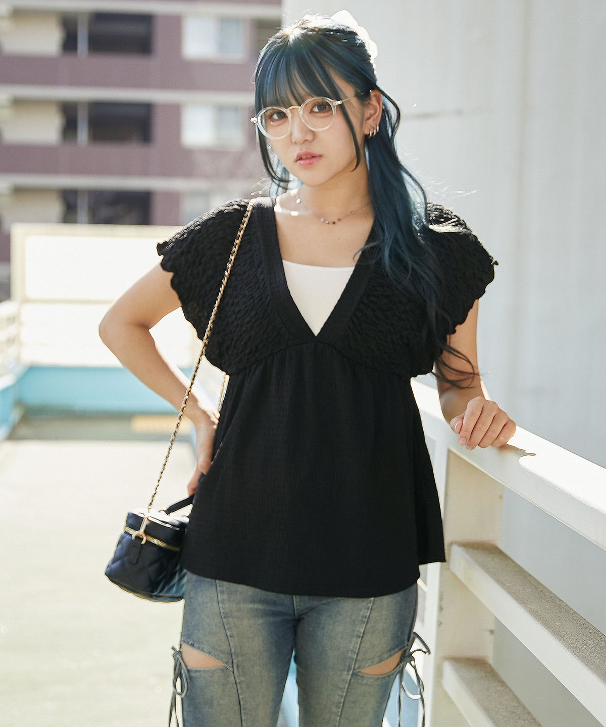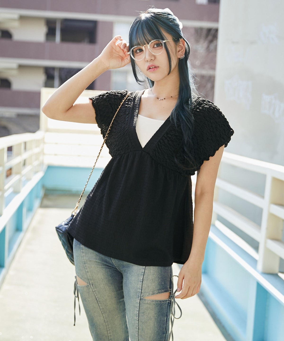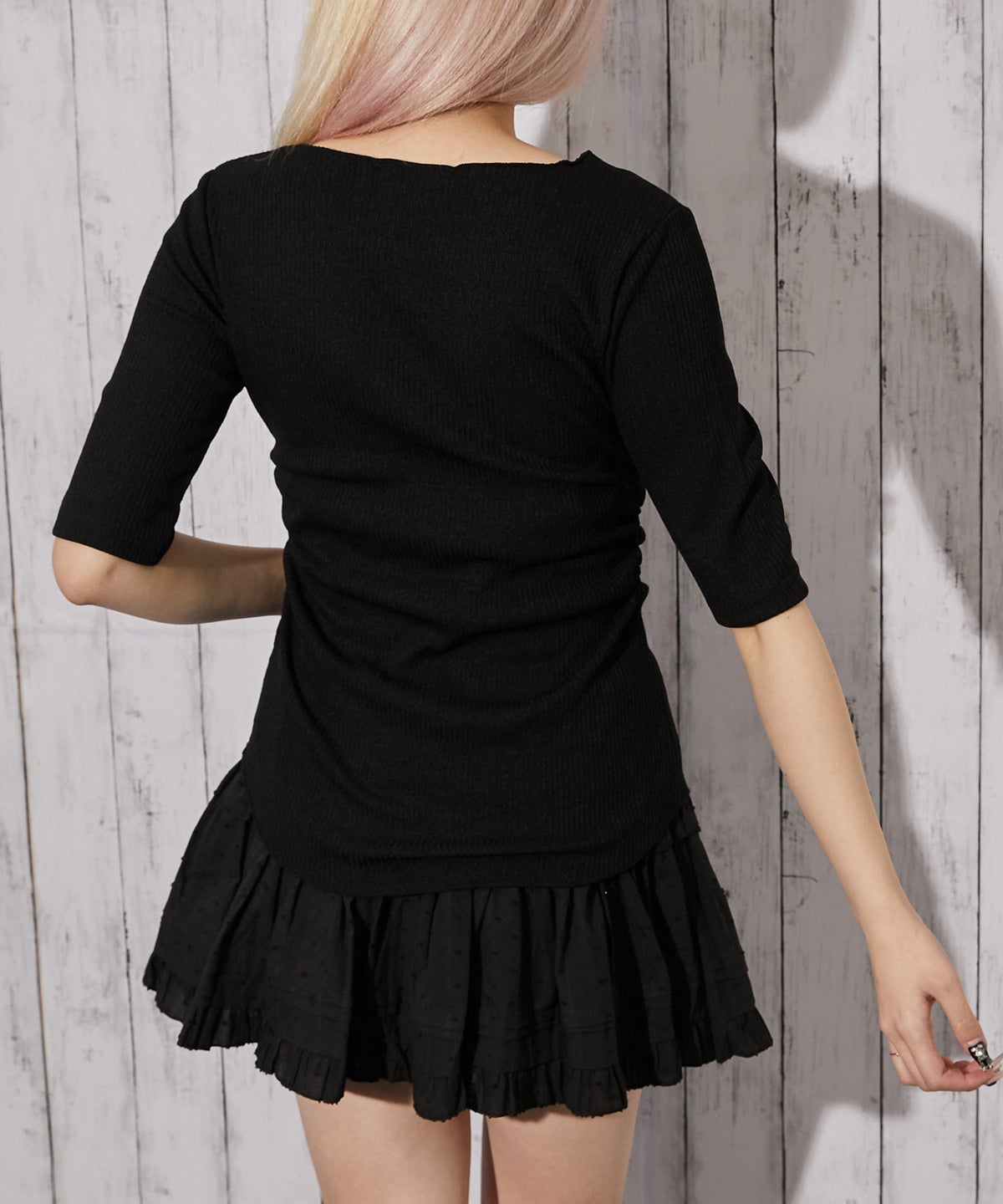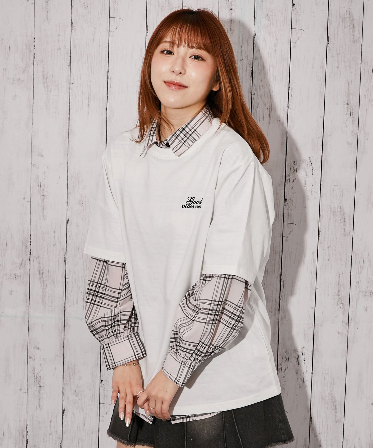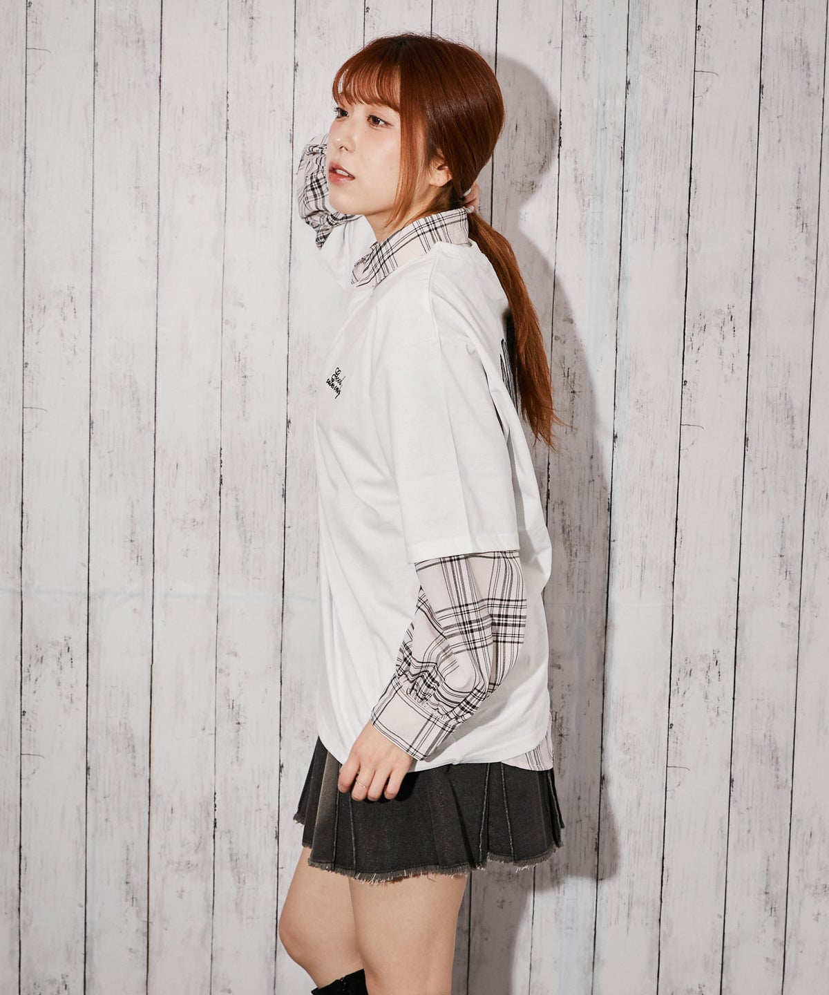 《フェイクレイヤード×シャーリング》カットソー/Y2K/春夏秋/全2色