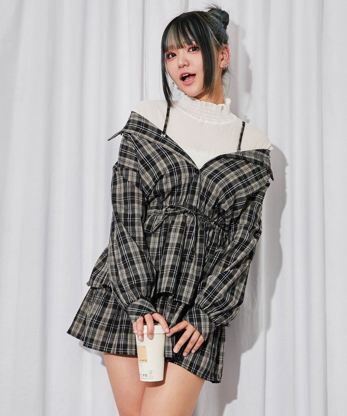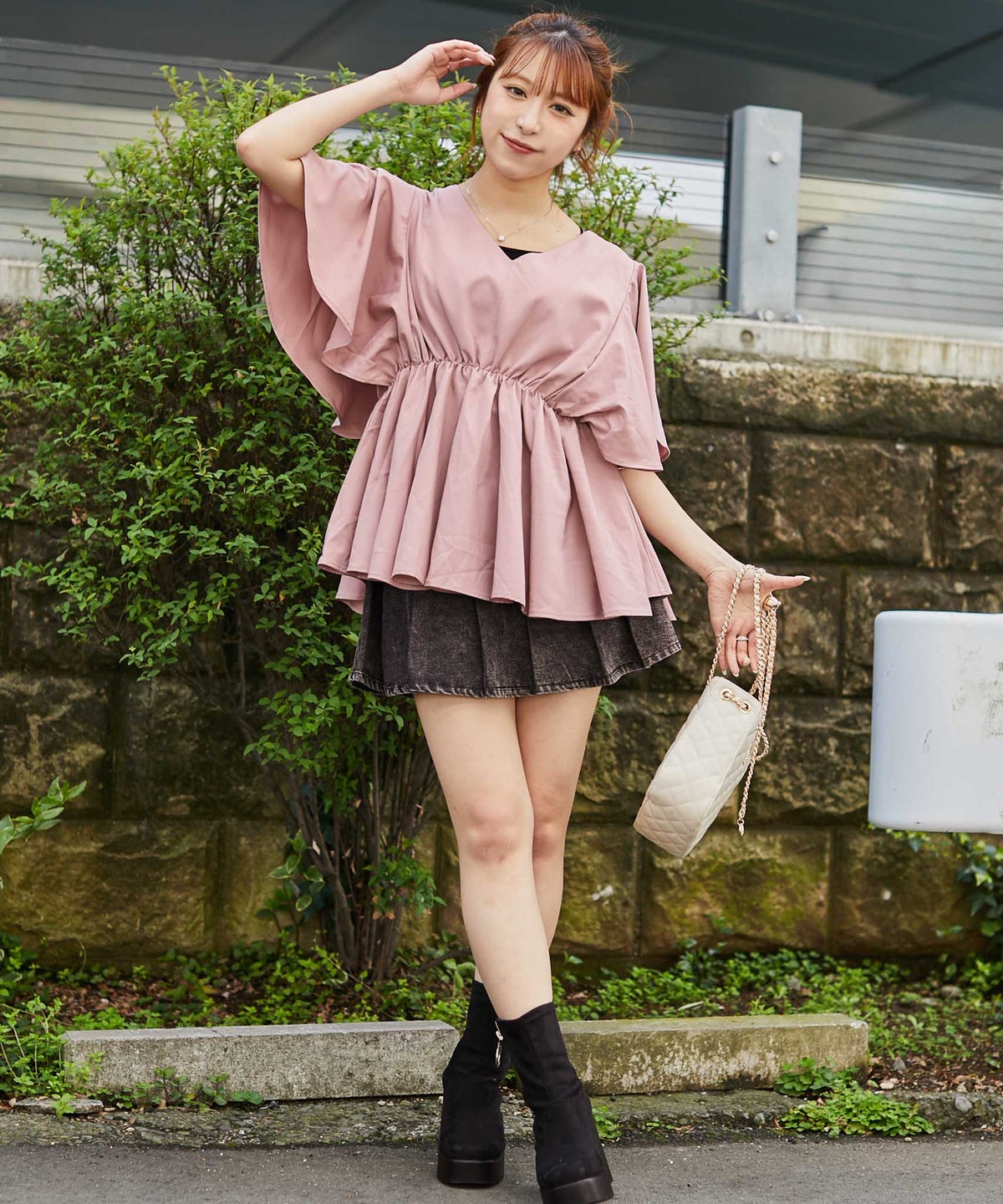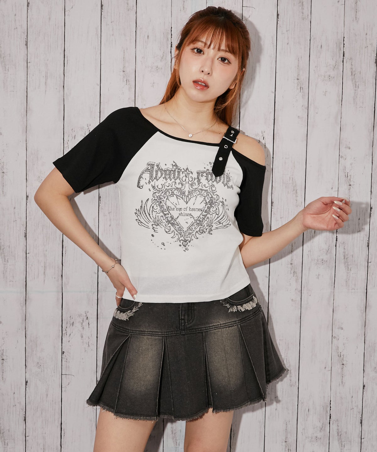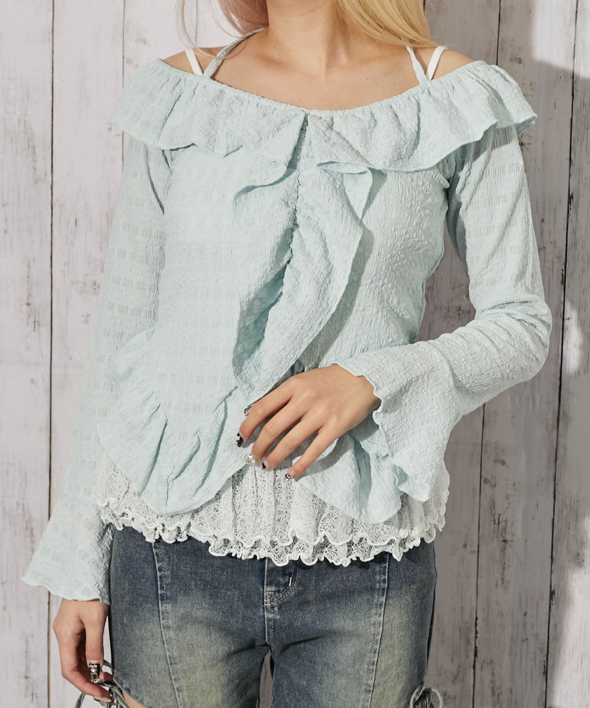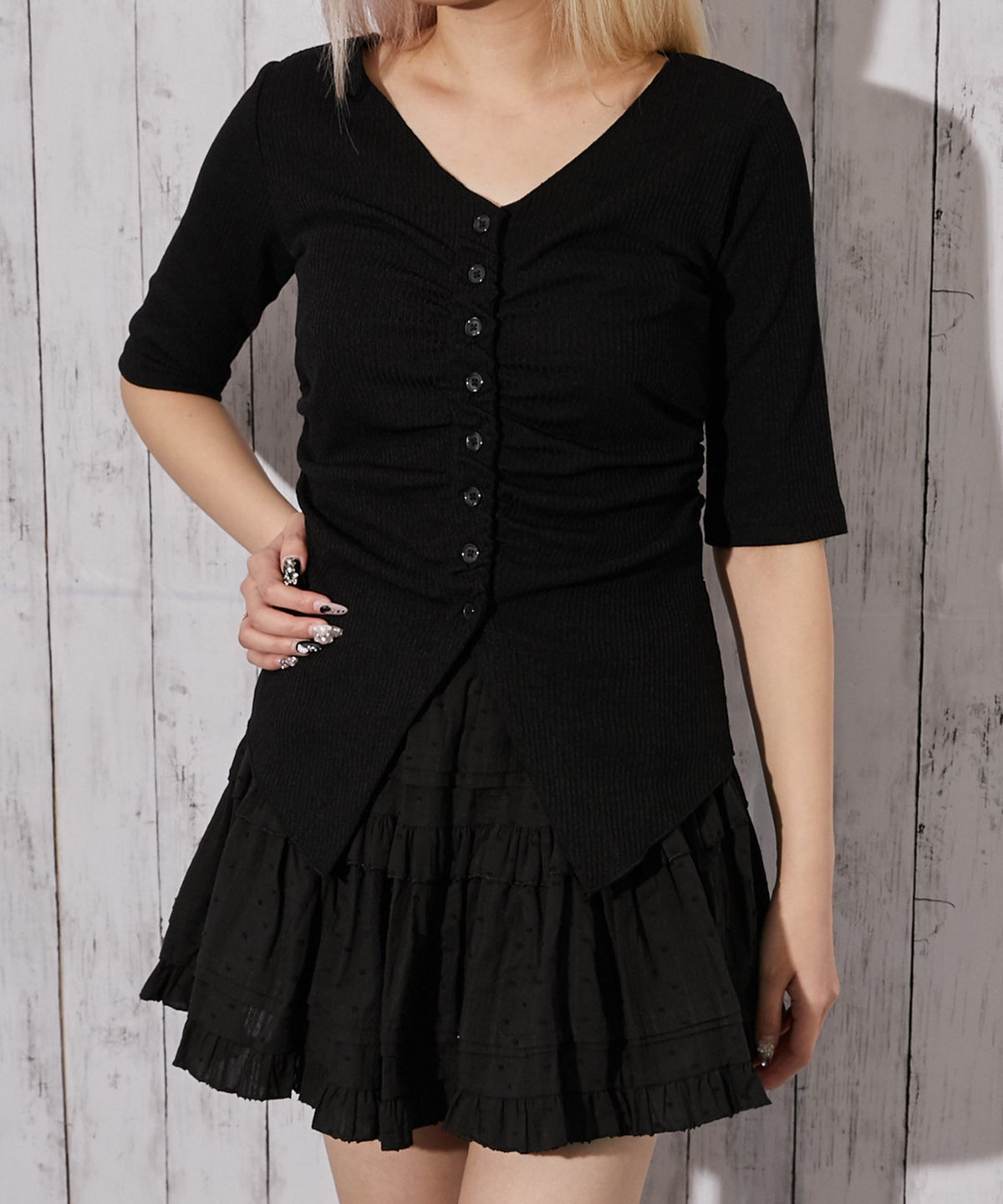 《フェイクレイヤード×シャーリング》カットソー/Y2K/春夏秋/全2色