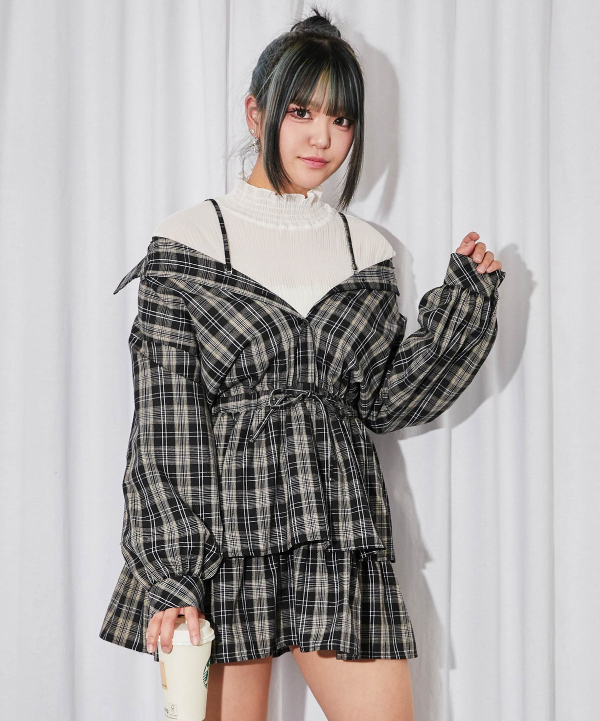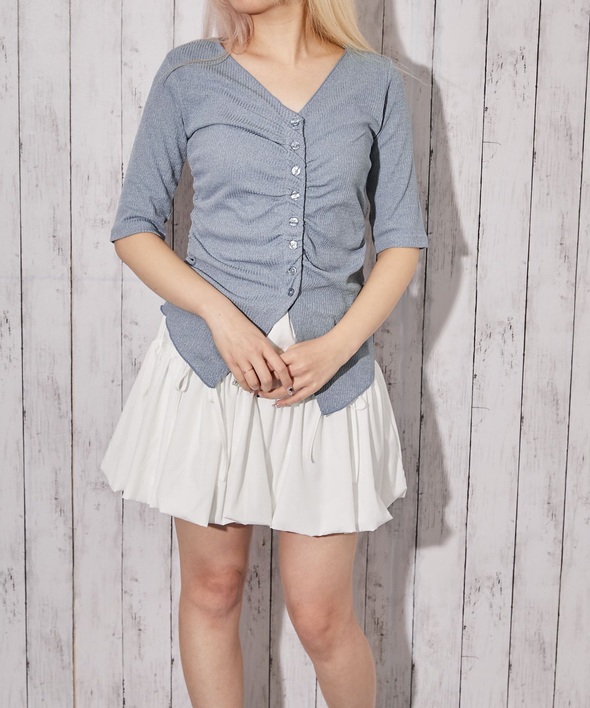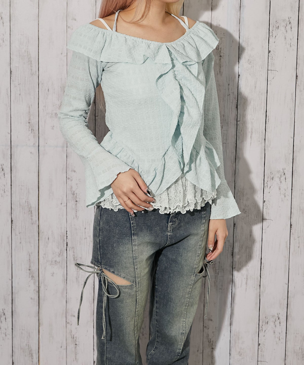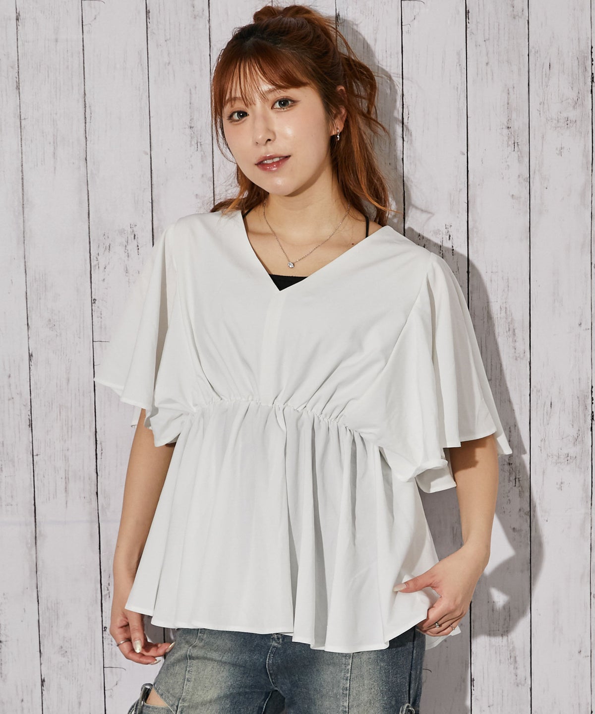 《フェイクレイヤード×シャーリング》カットソー/Y2K/春夏秋/全2色