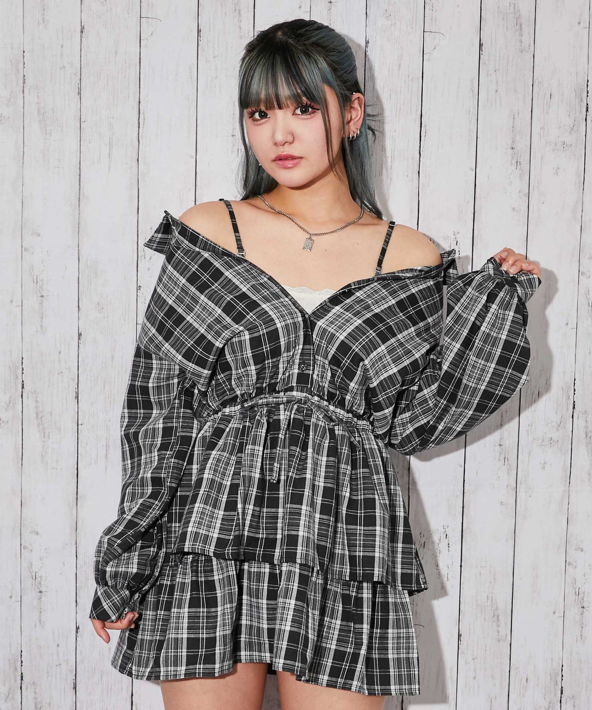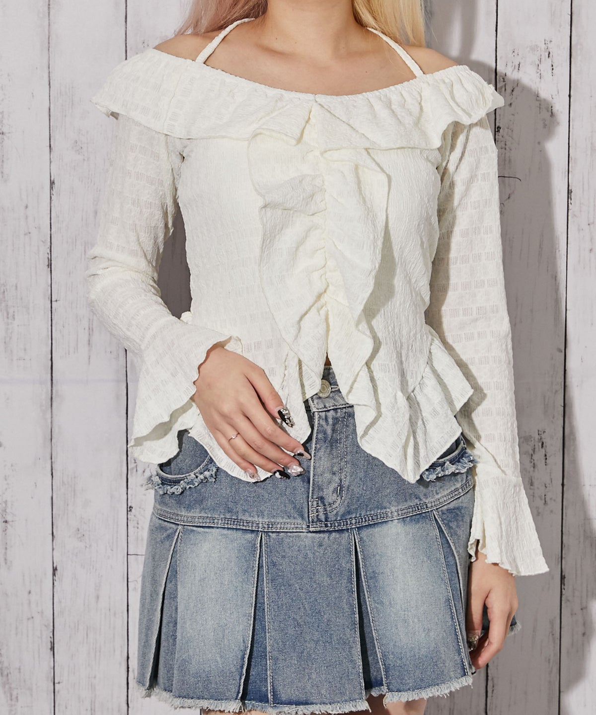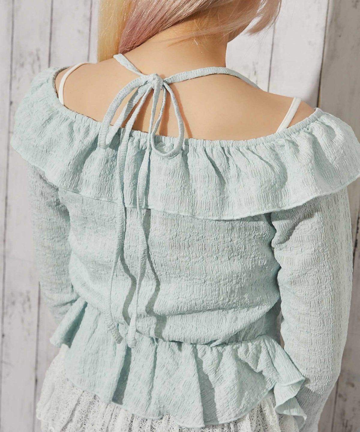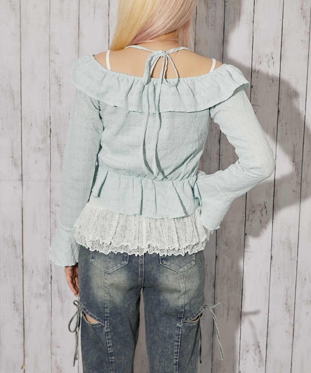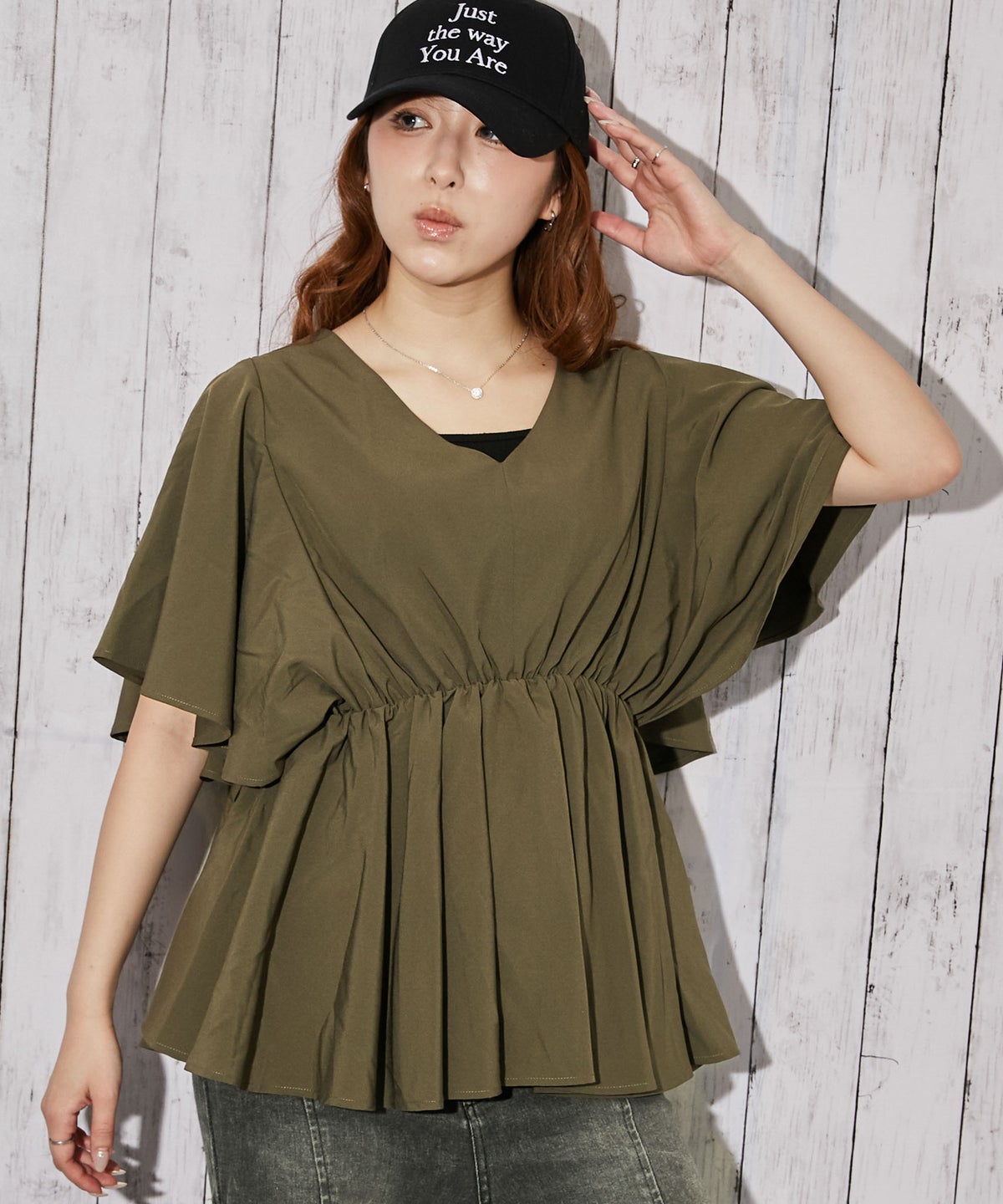 《フェイクレイヤード×シャーリング》カットソー/Y2K/春夏秋/全2色