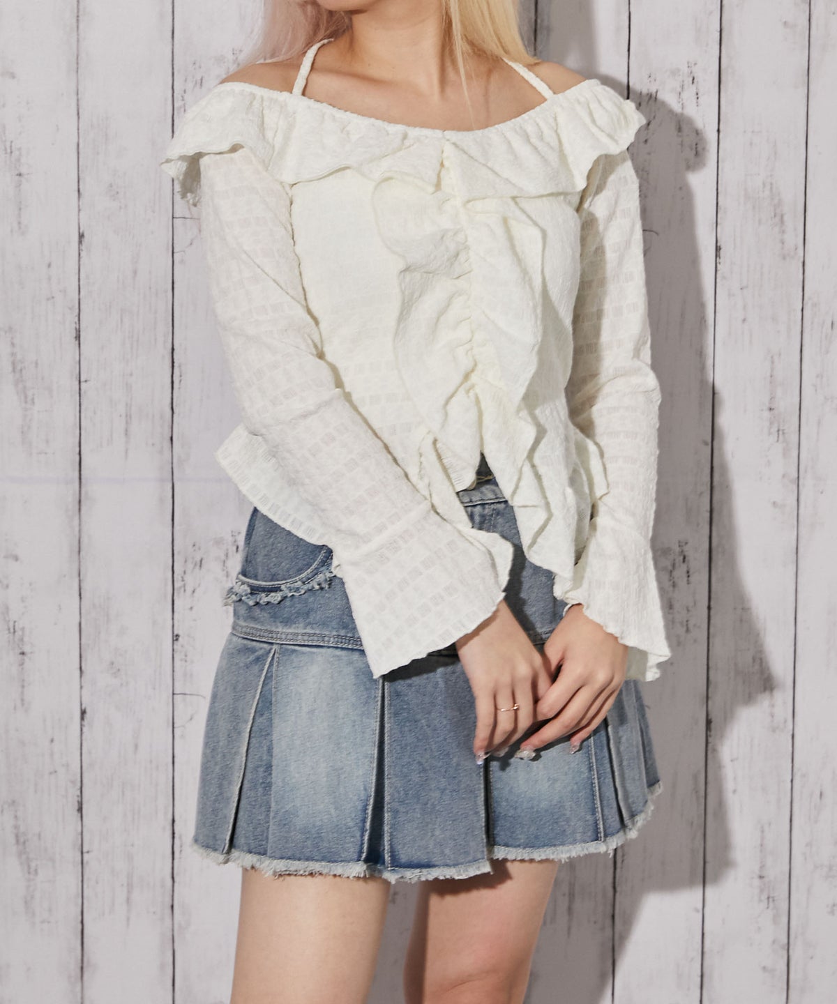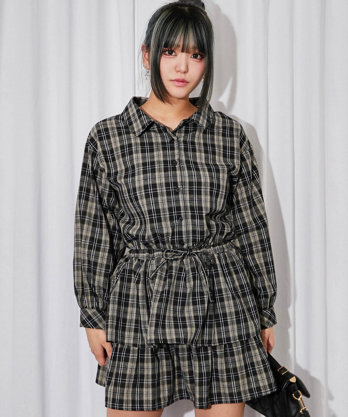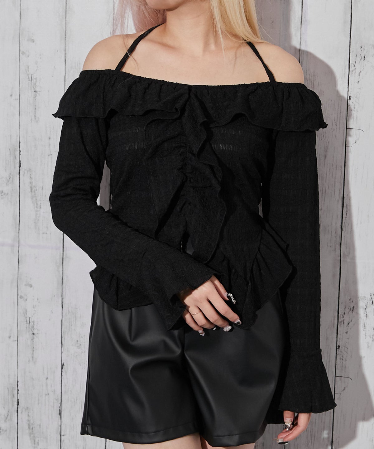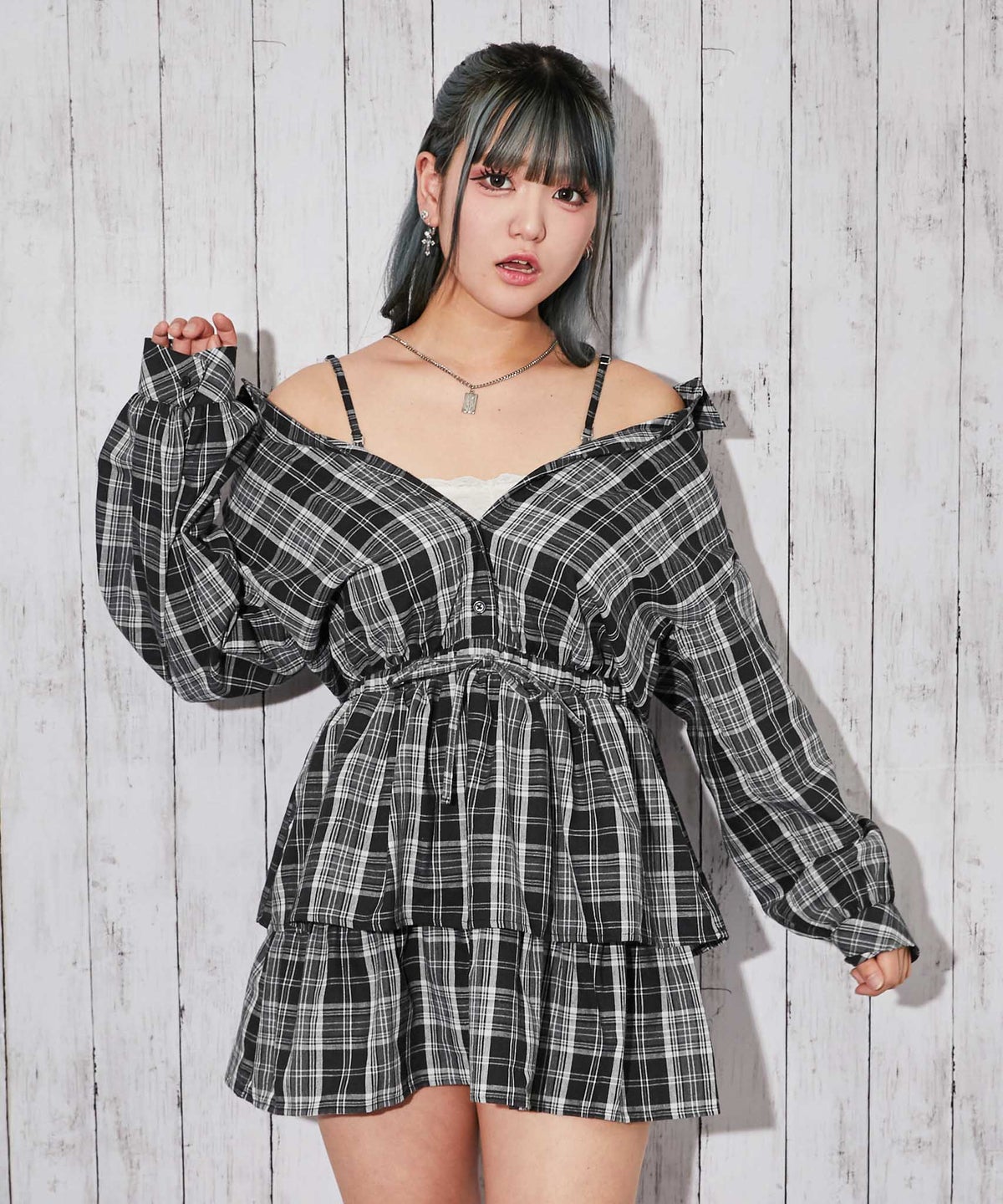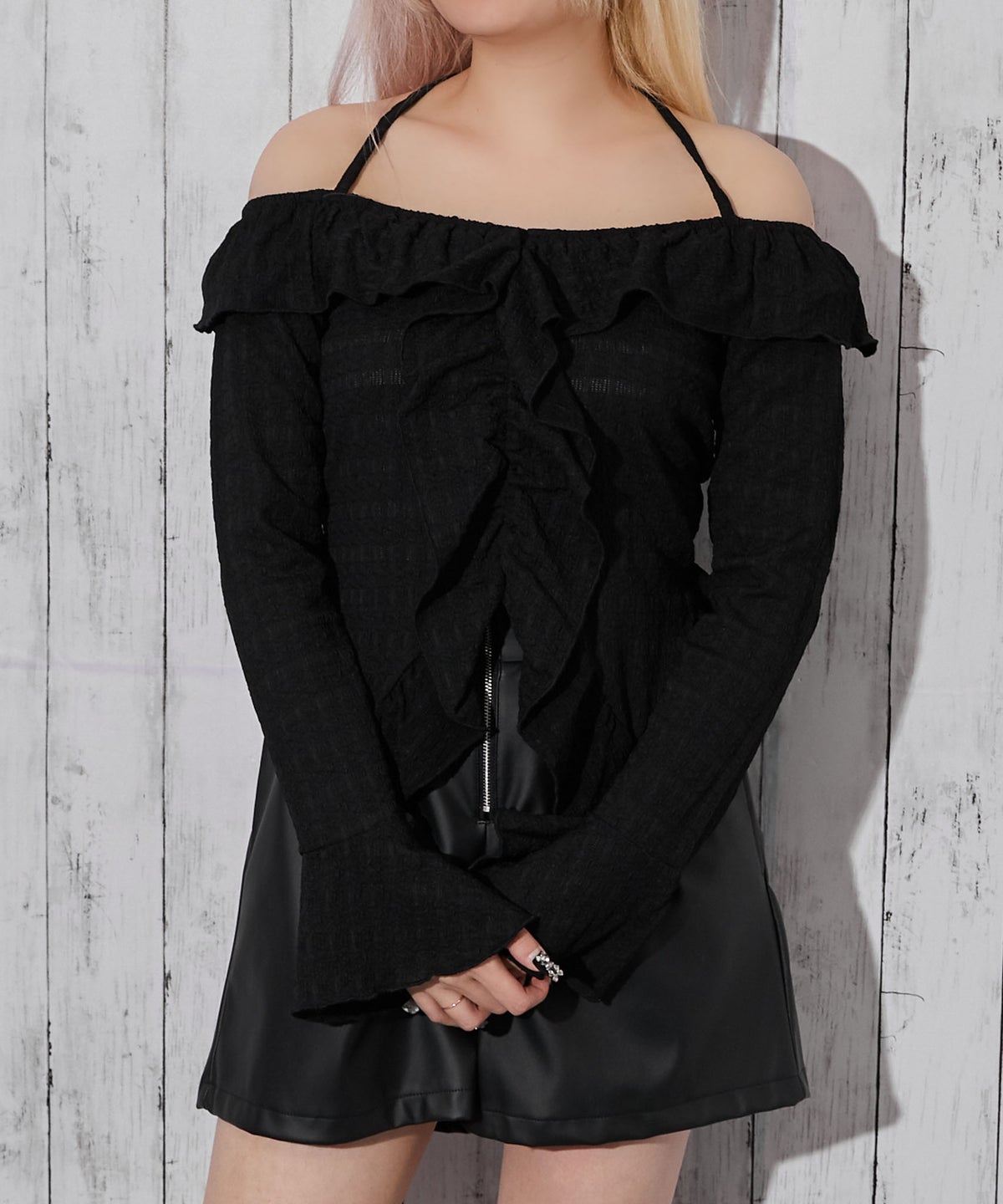 《フェイクレイヤード×シャーリング》カットソー/Y2K/春夏秋/全2色