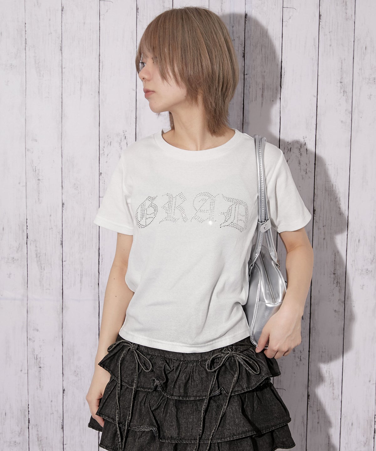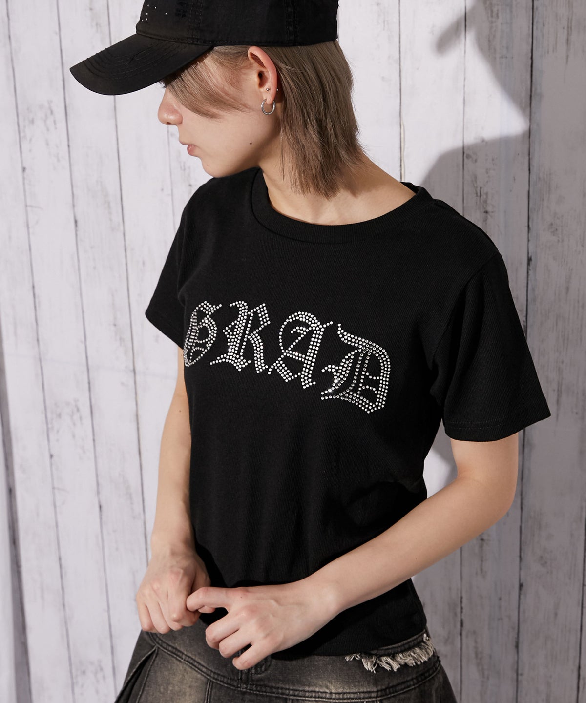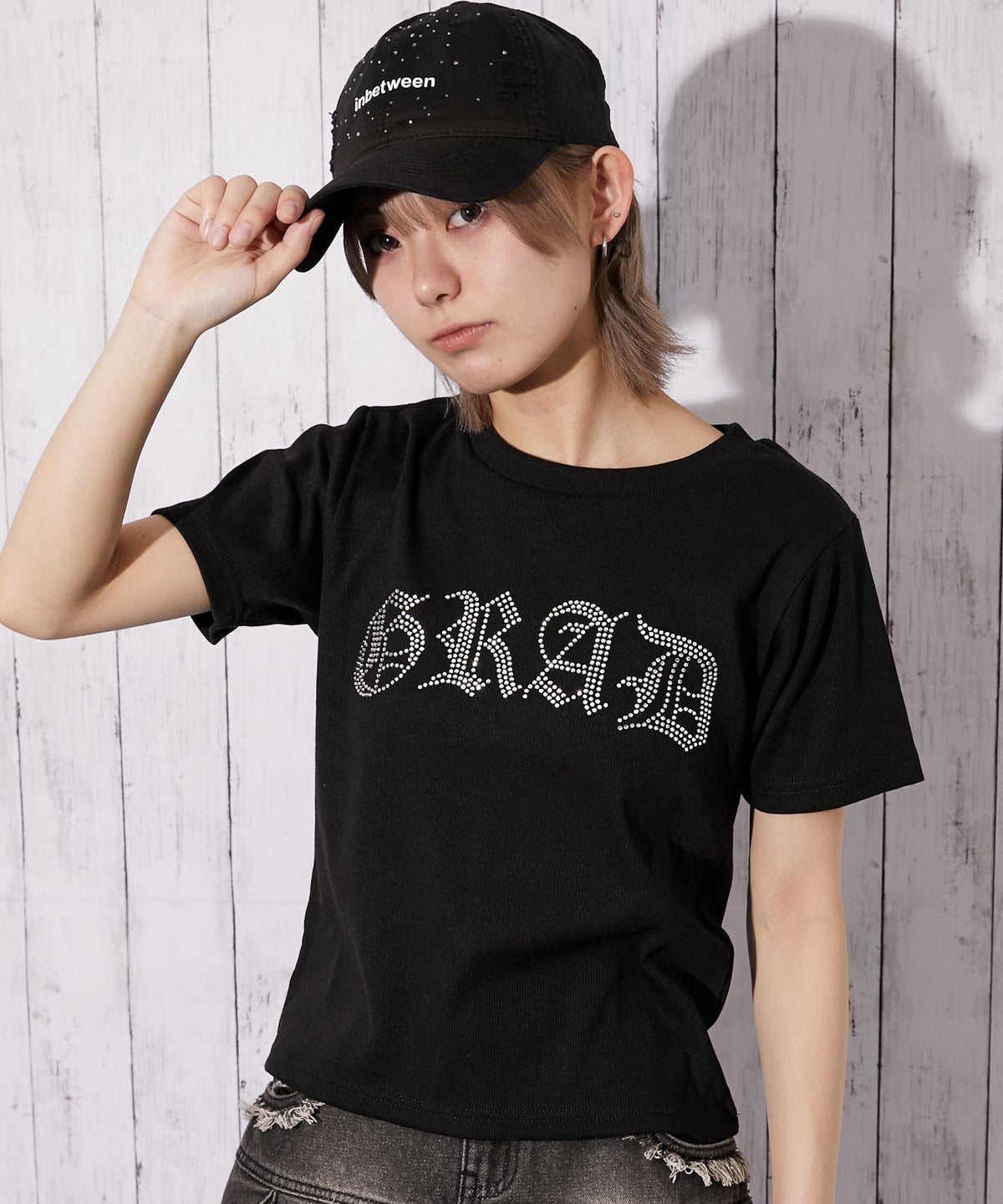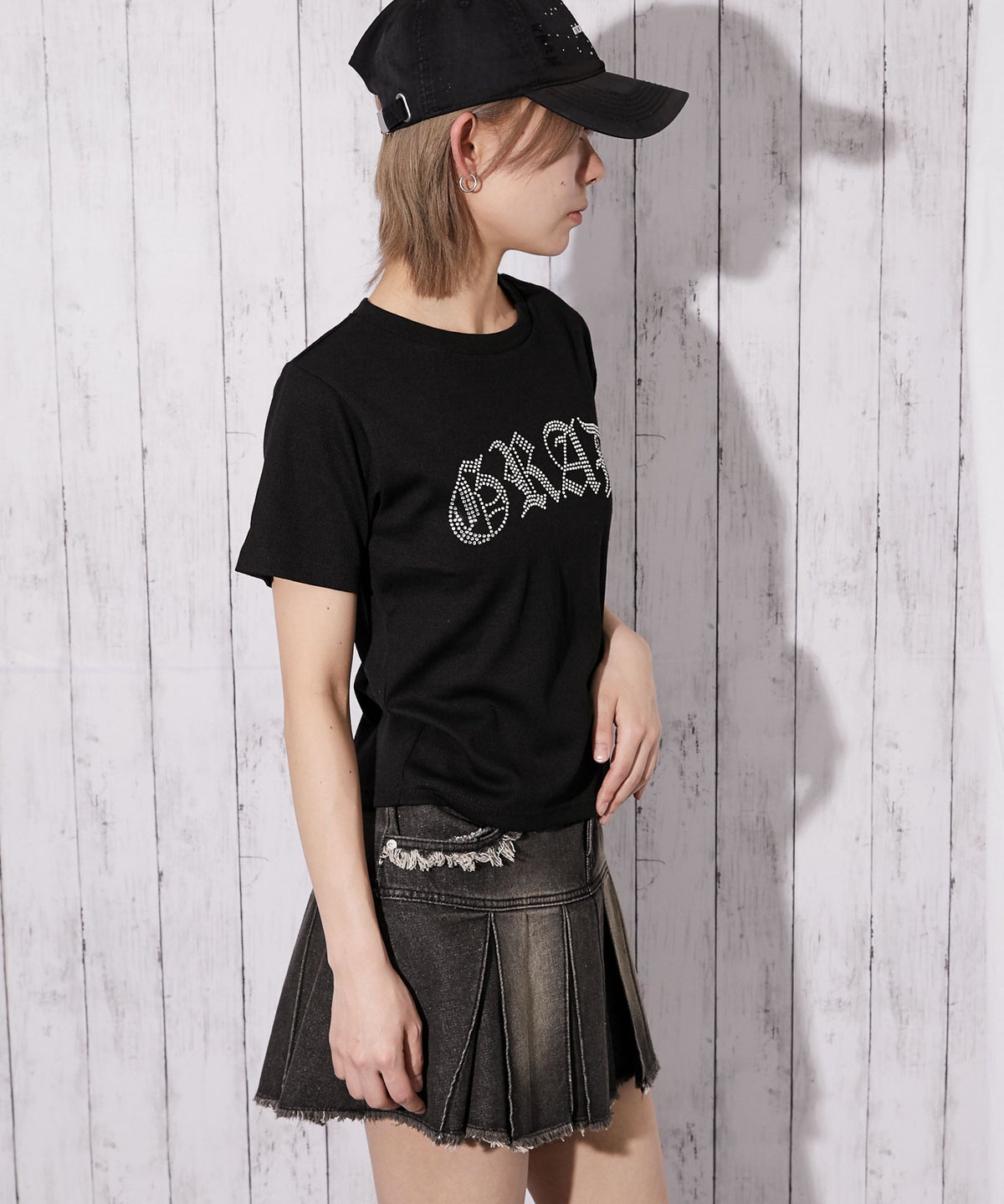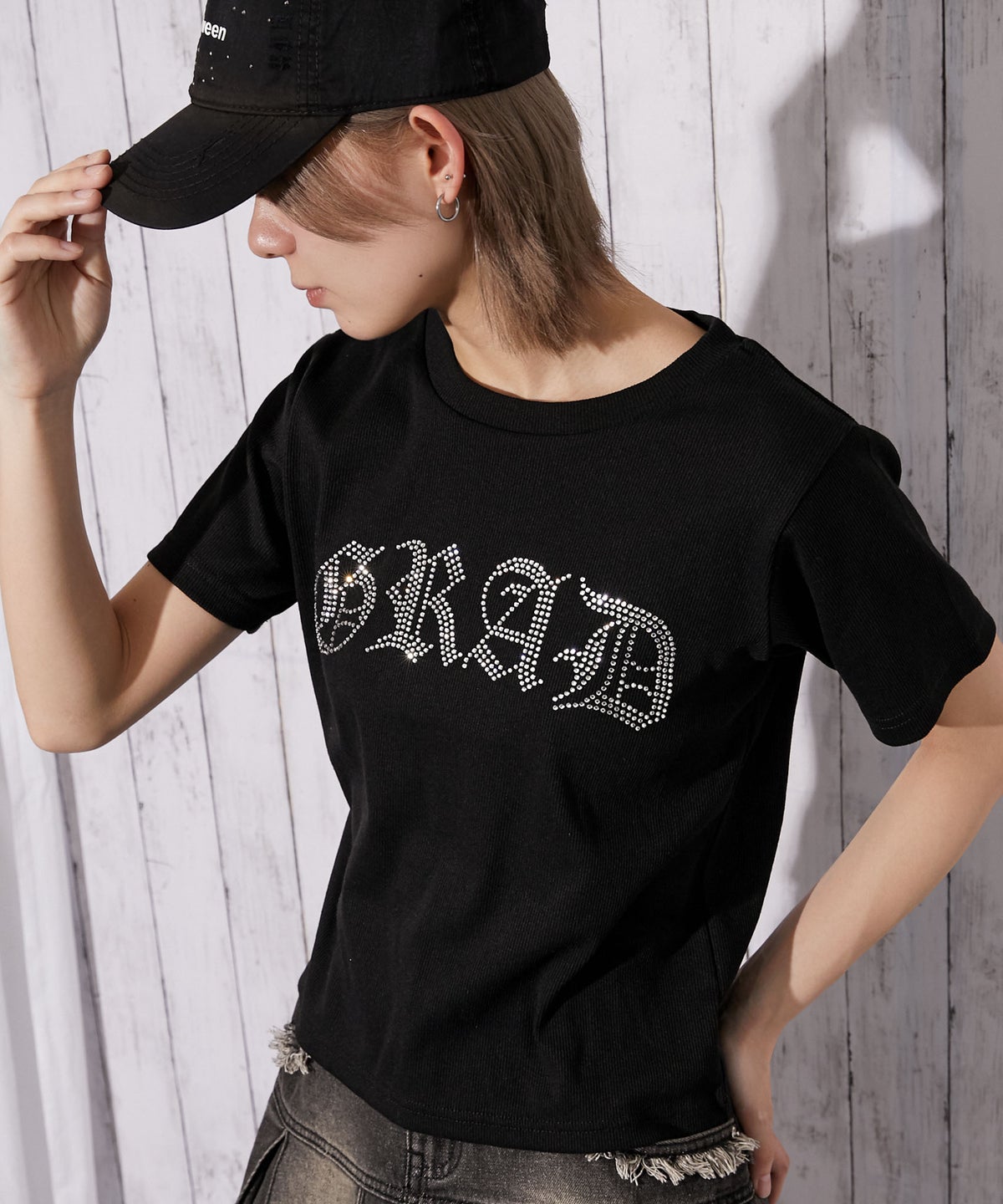《ラインストーンロゴ×短丈》Tシャツ/Y2K/春夏/全2色