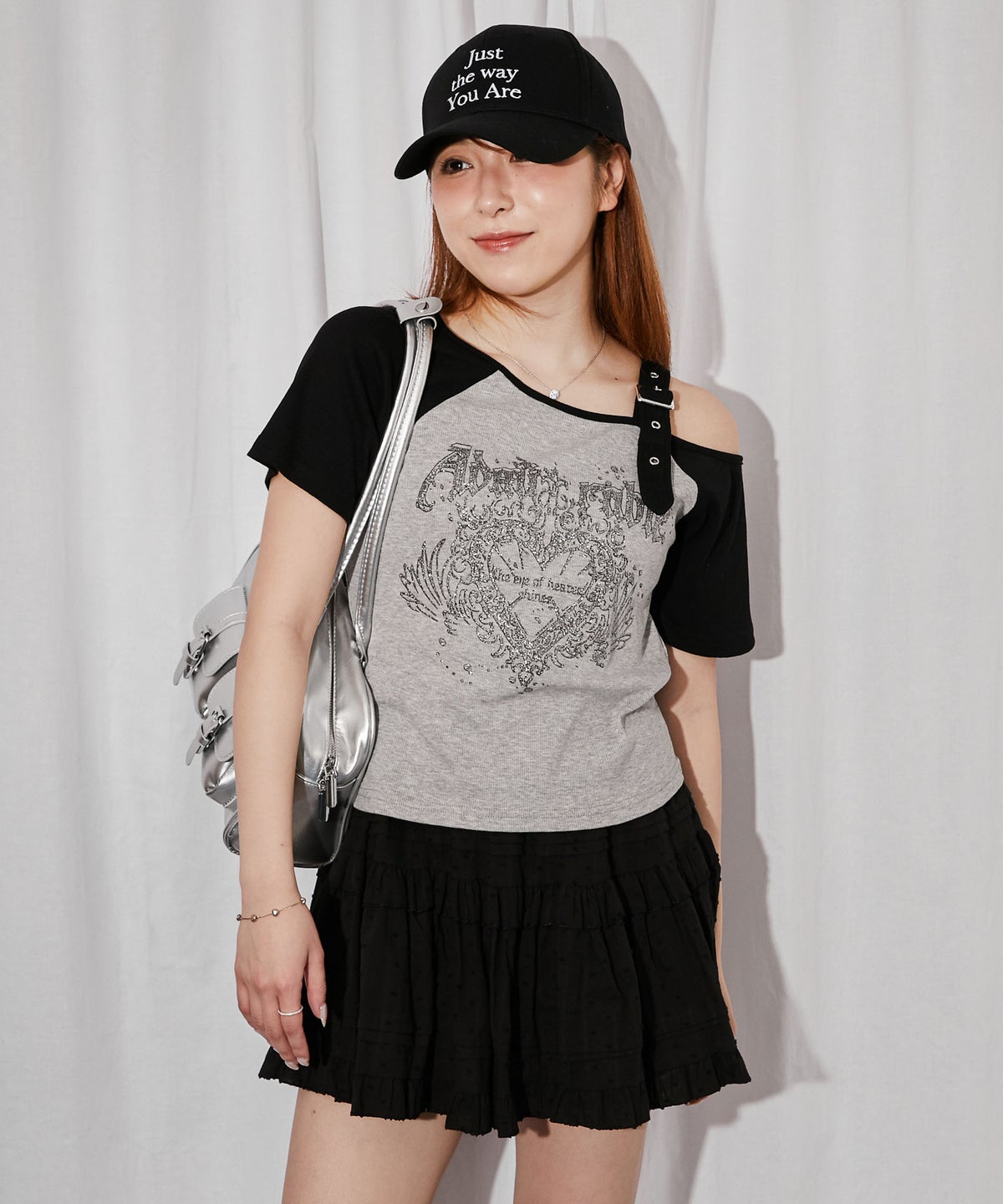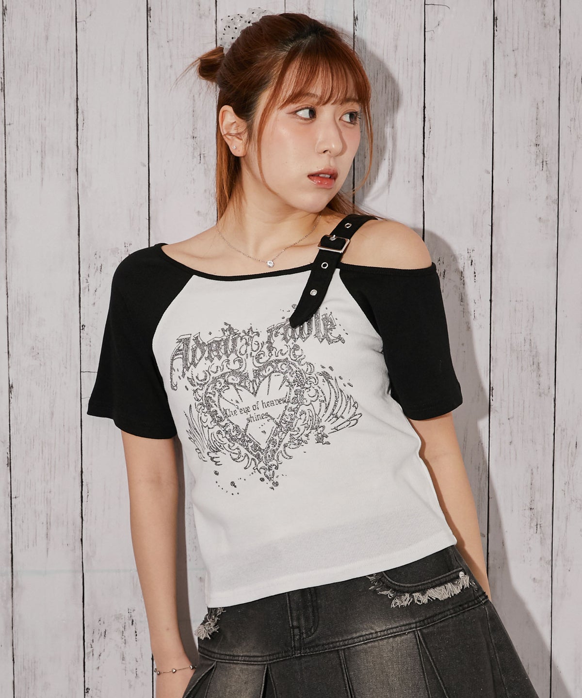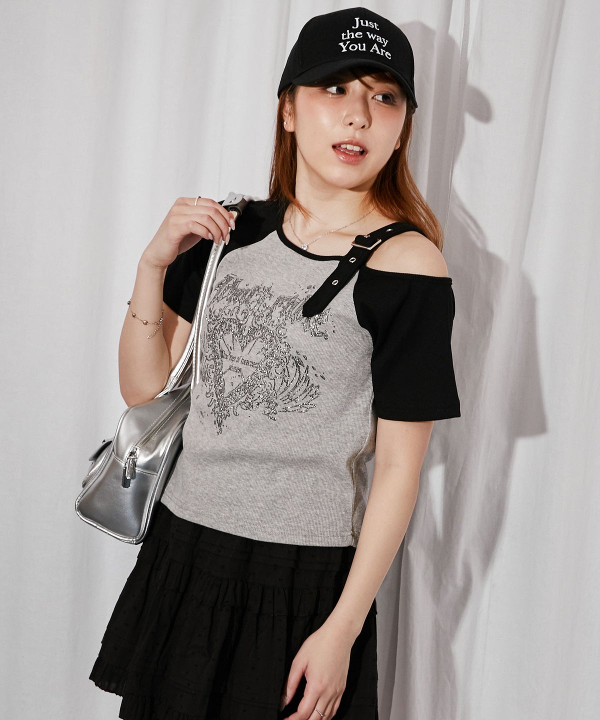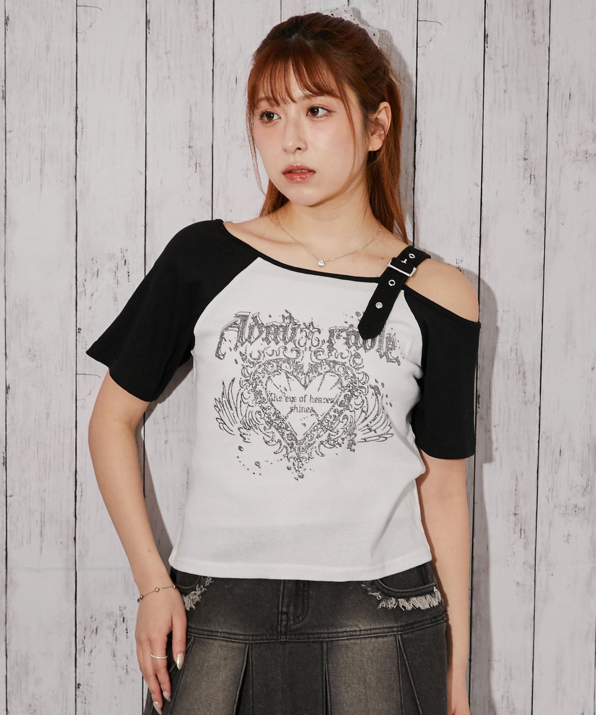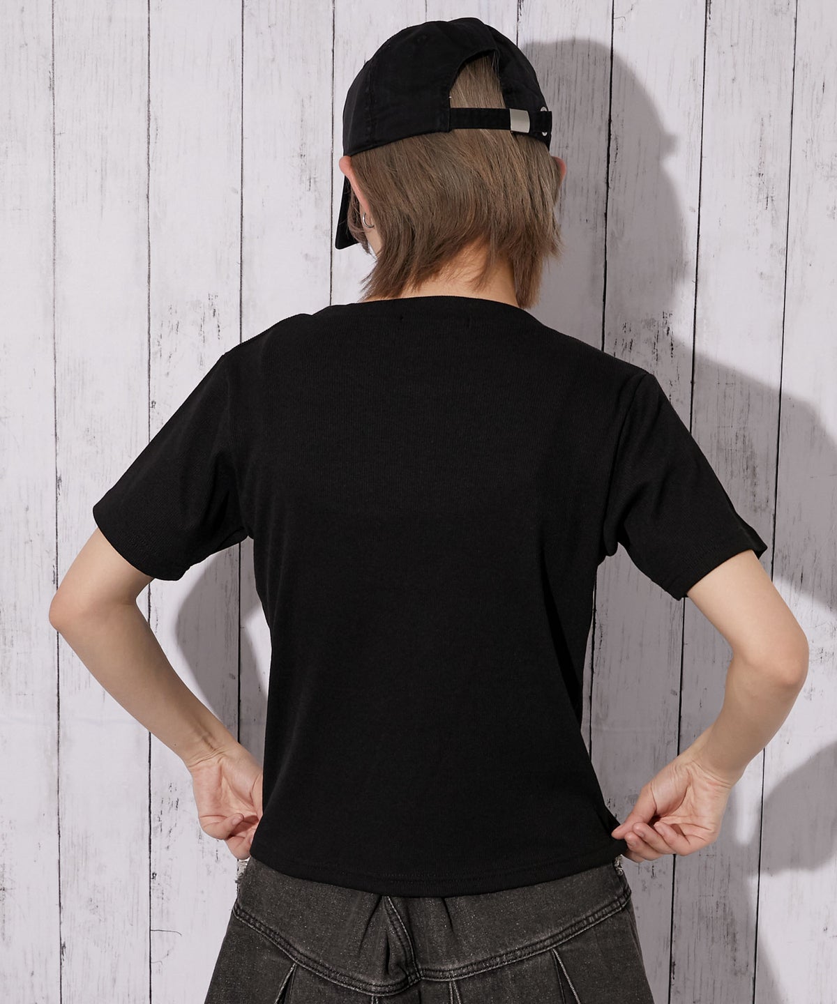 《ラインストーンロゴ×短丈》Tシャツ/Y2K/春夏/全2色