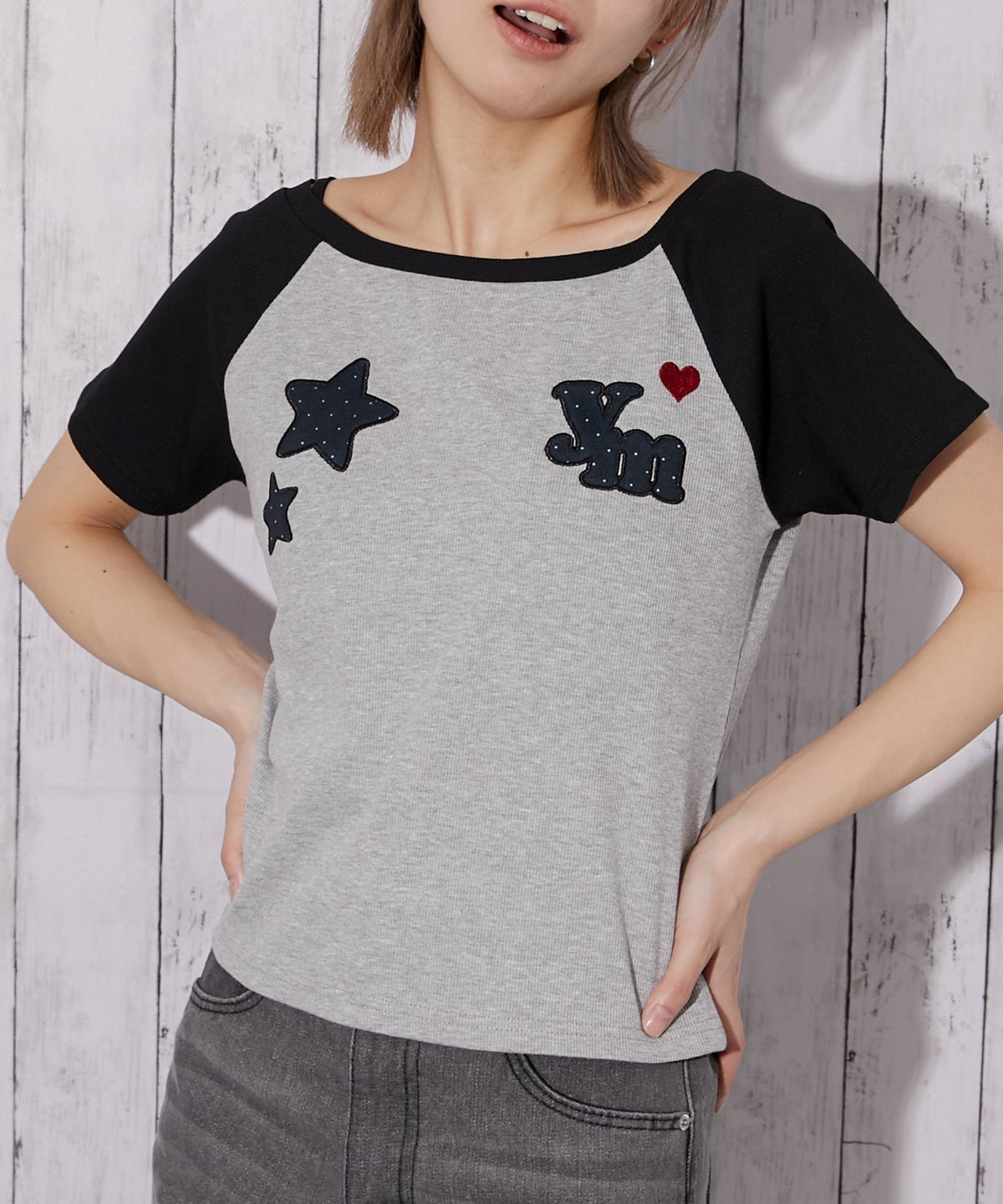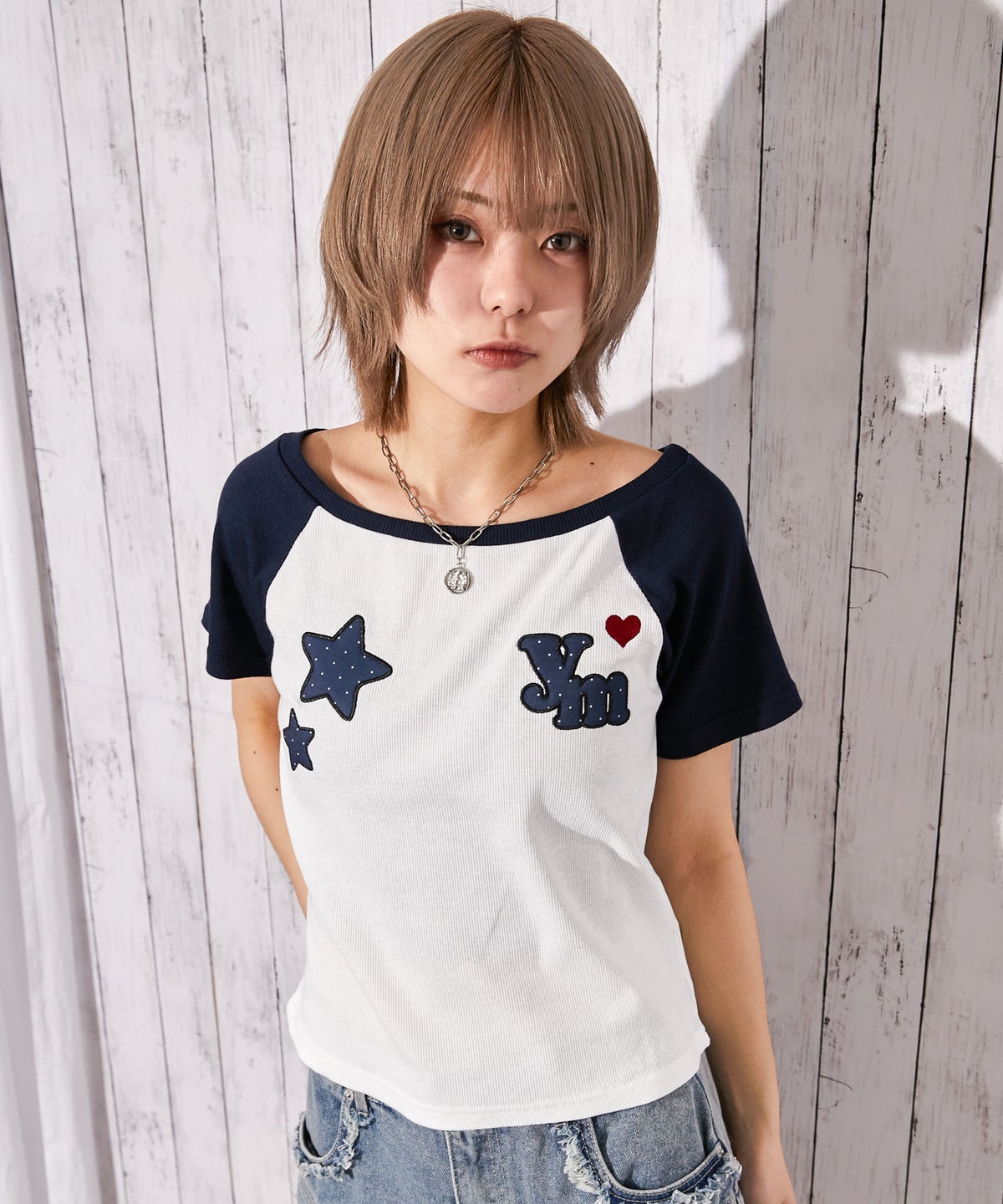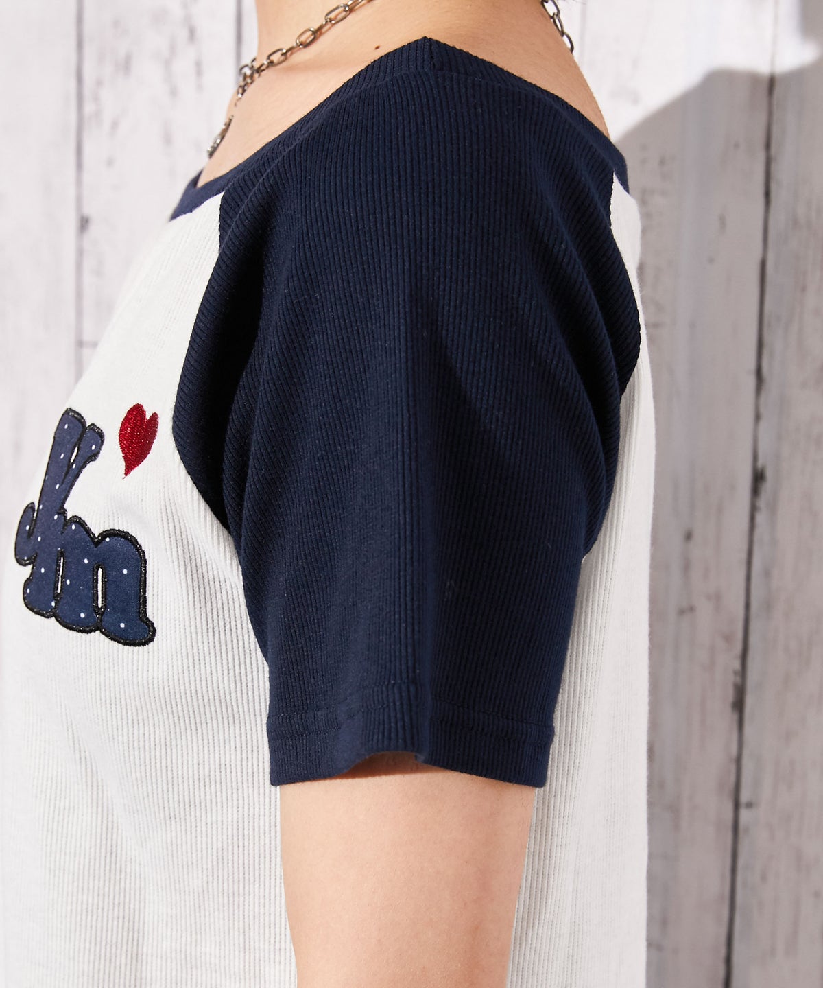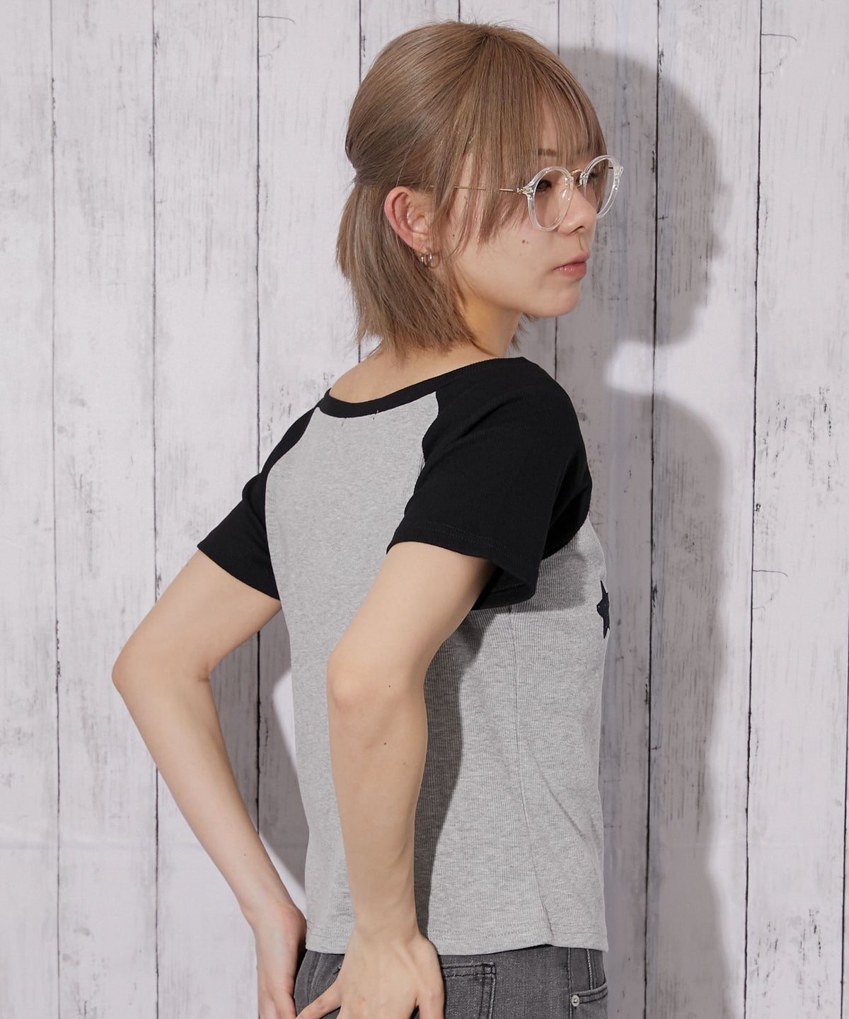 《ワッペンデザイン》短丈配色ラグランTシャツ/Y2K/春夏/全3色