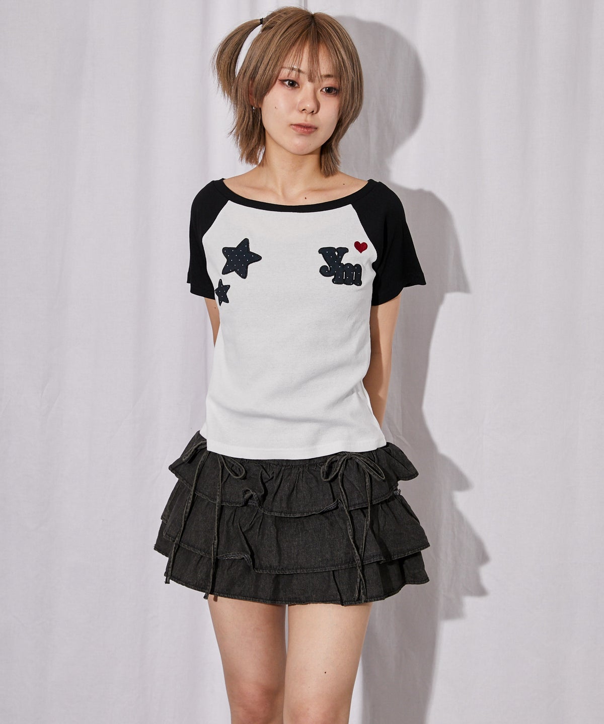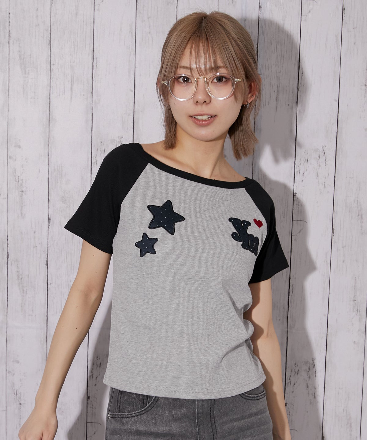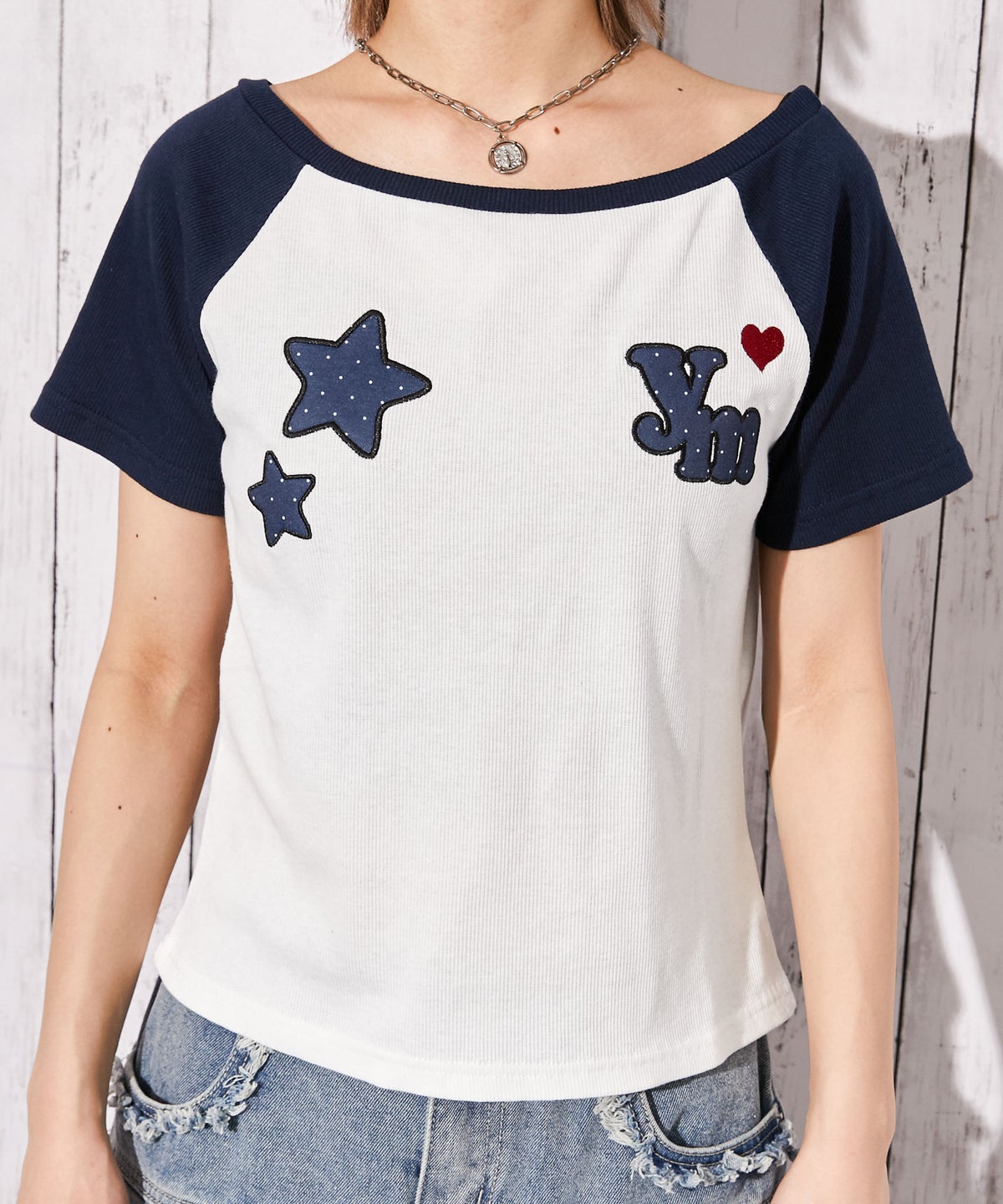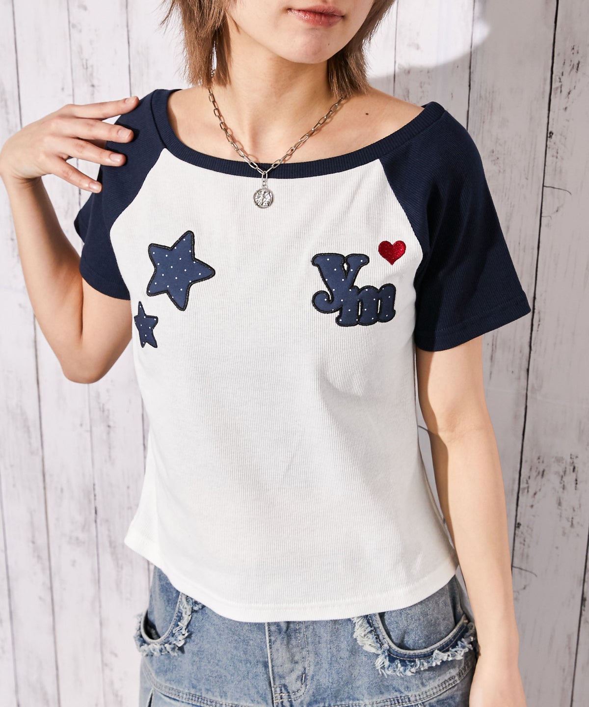《ワッペンデザイン》短丈配色ラグランTシャツ/Y2K/春夏/全3色
