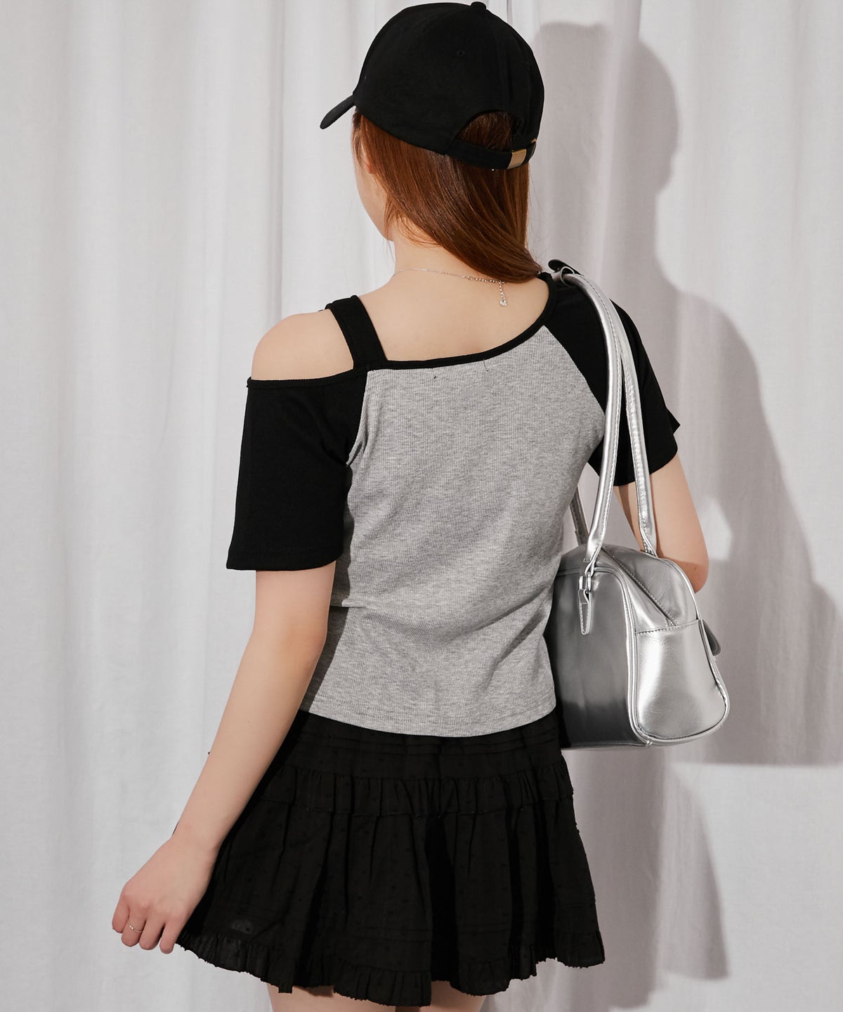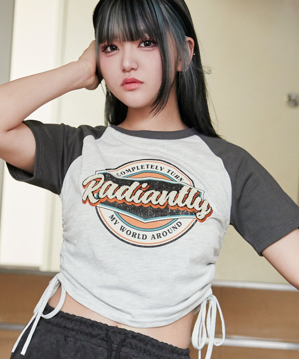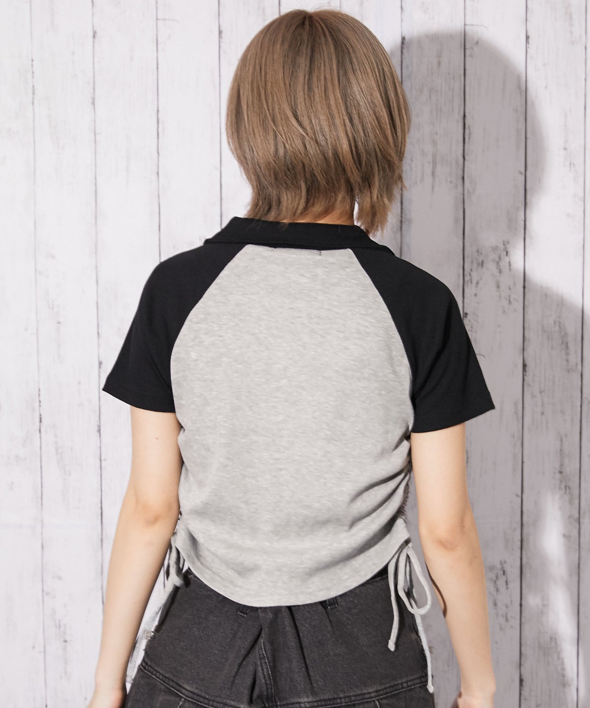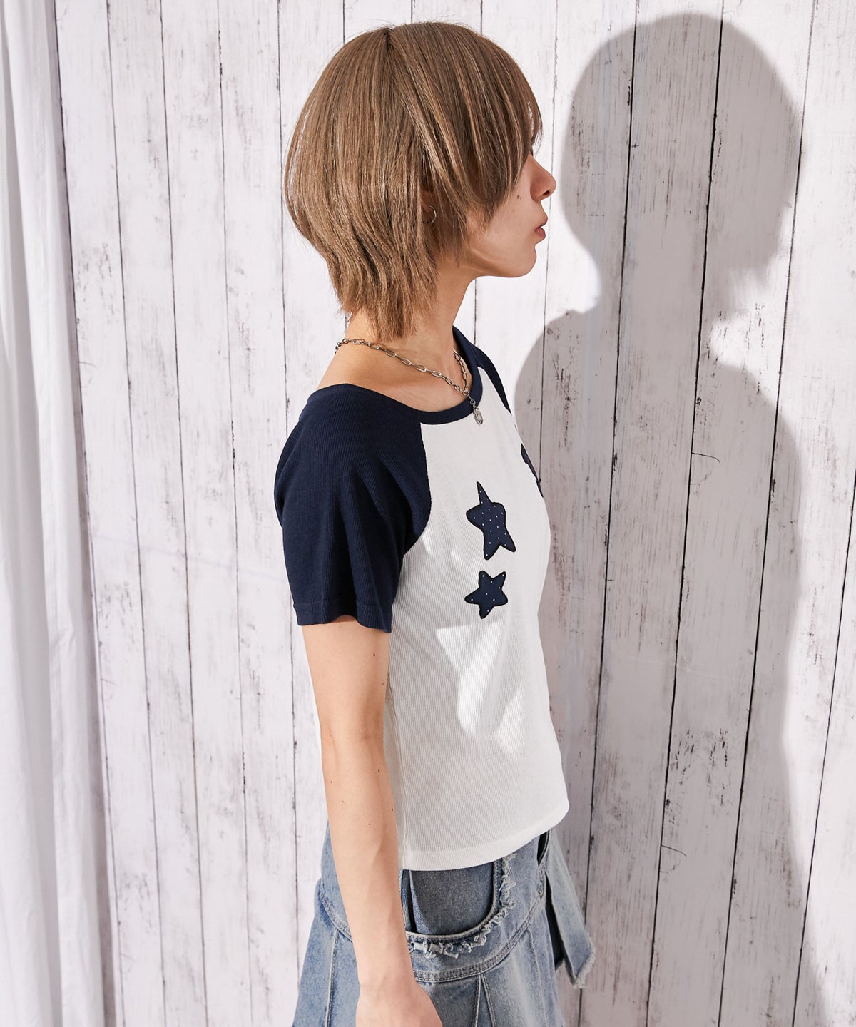 《ワッペンデザイン》短丈配色ラグランTシャツ/Y2K/春夏/全3色