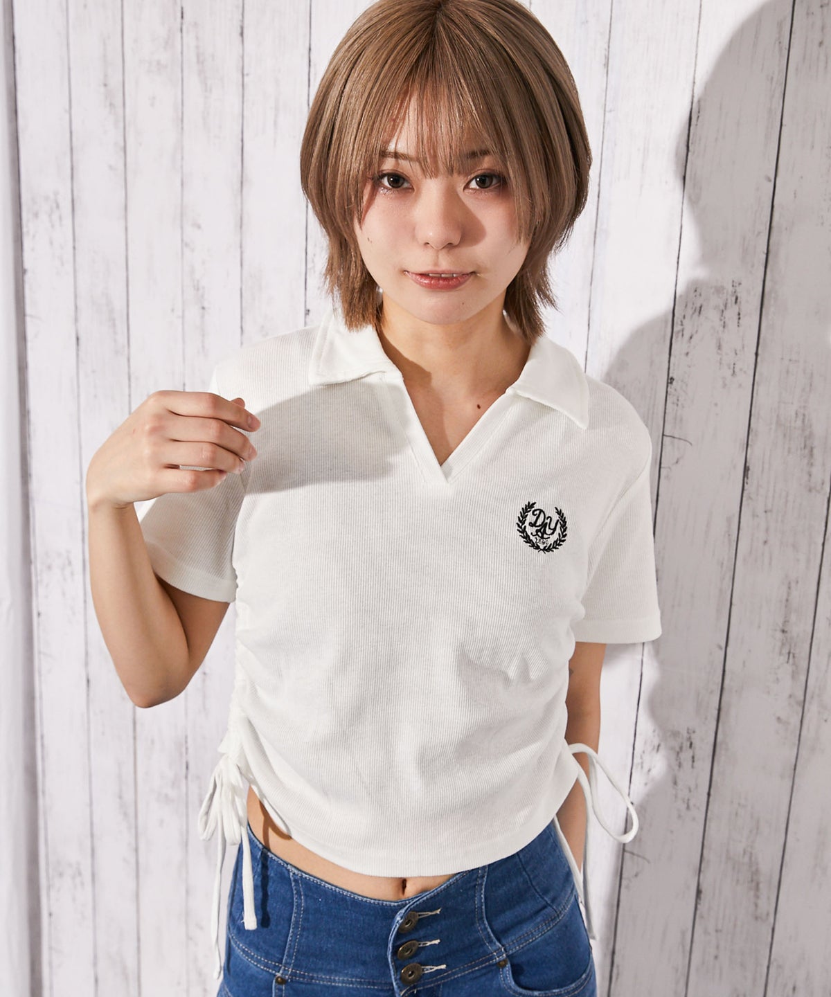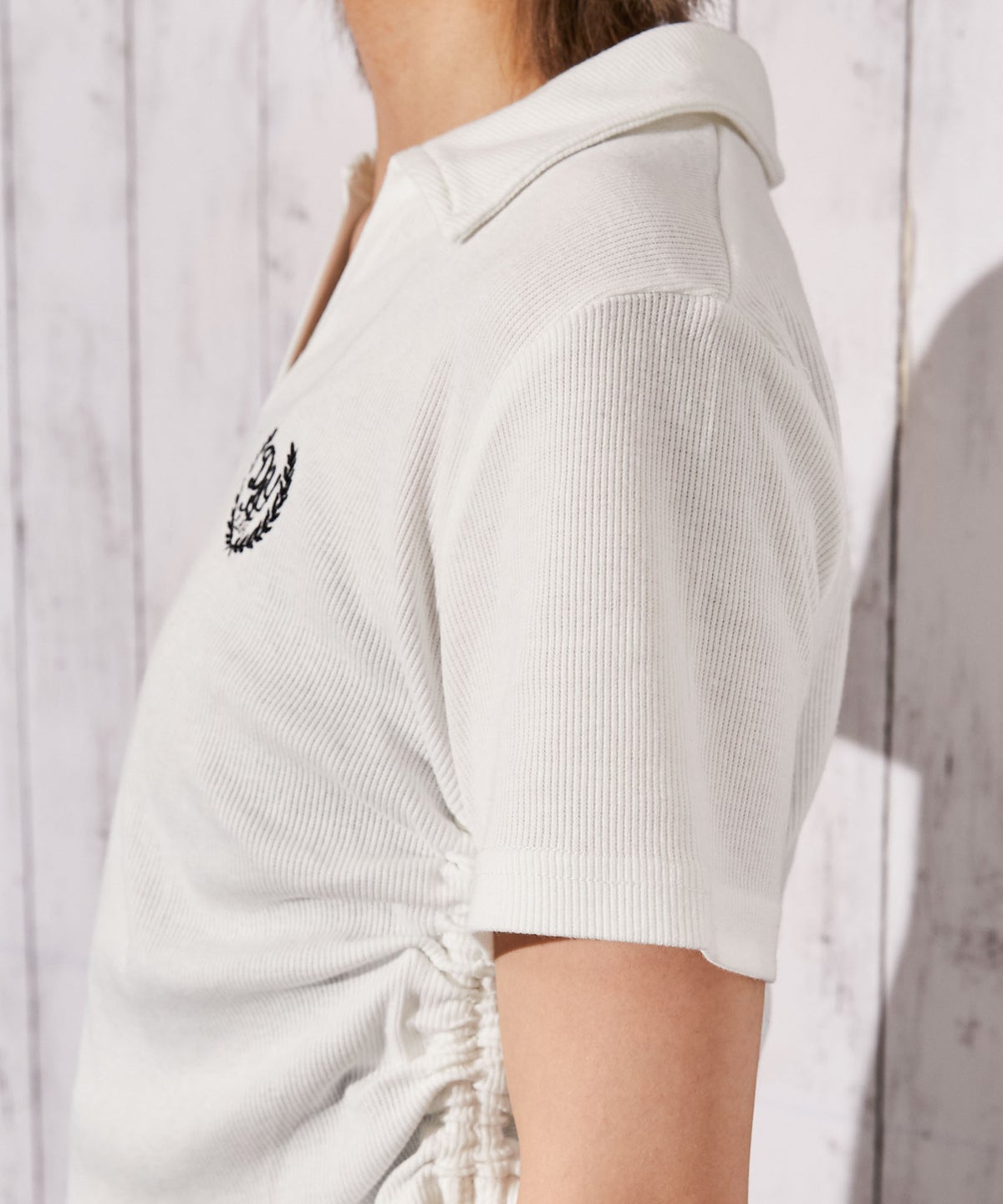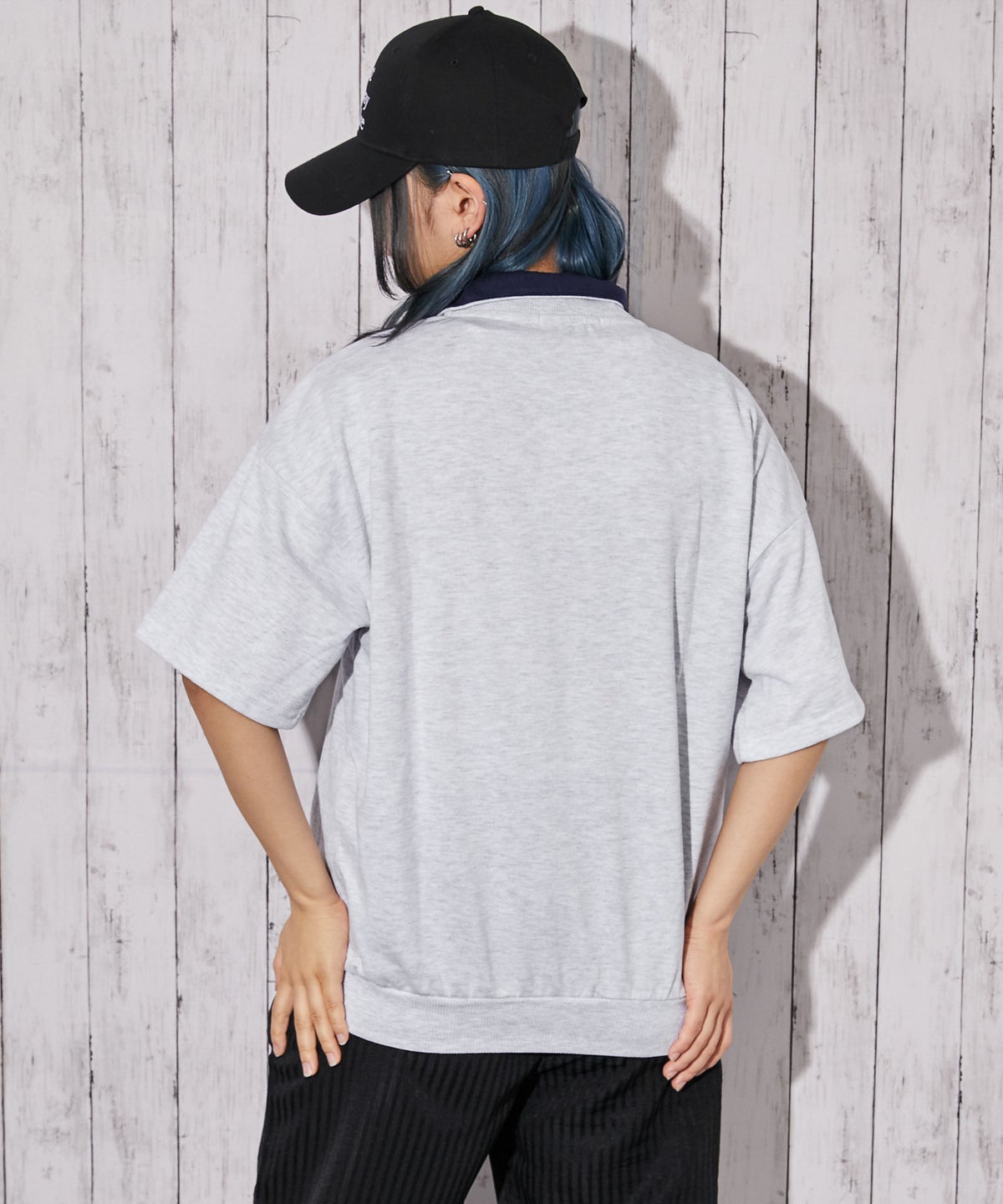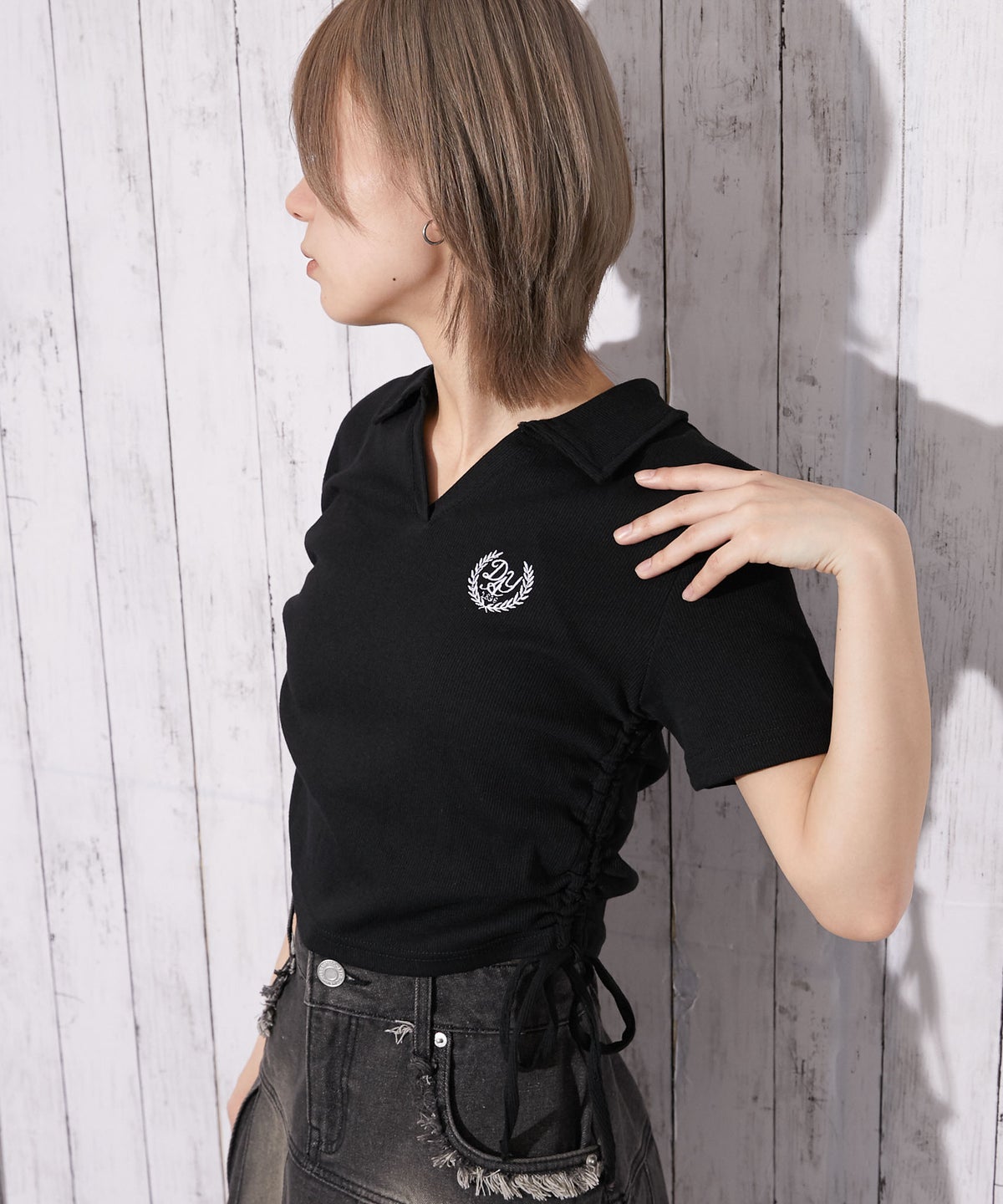《サイドドロスト×エンブレム刺繍》スキッパーTシャツ/ストリート/春夏/全2色