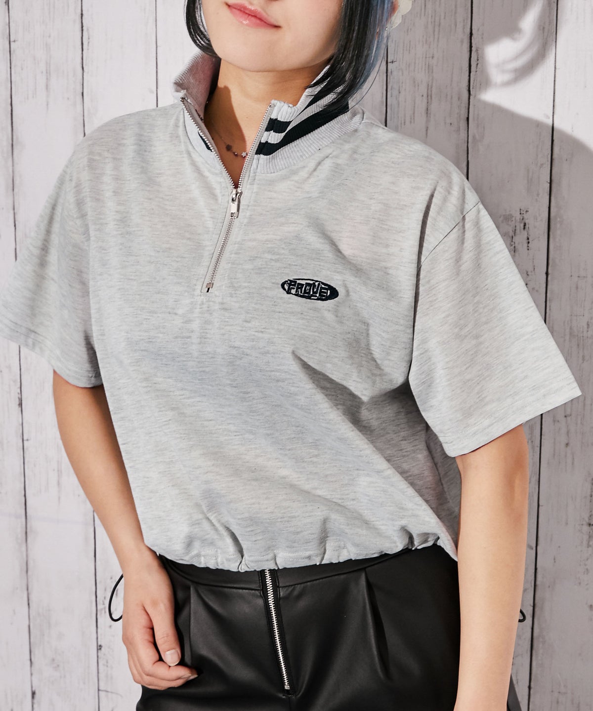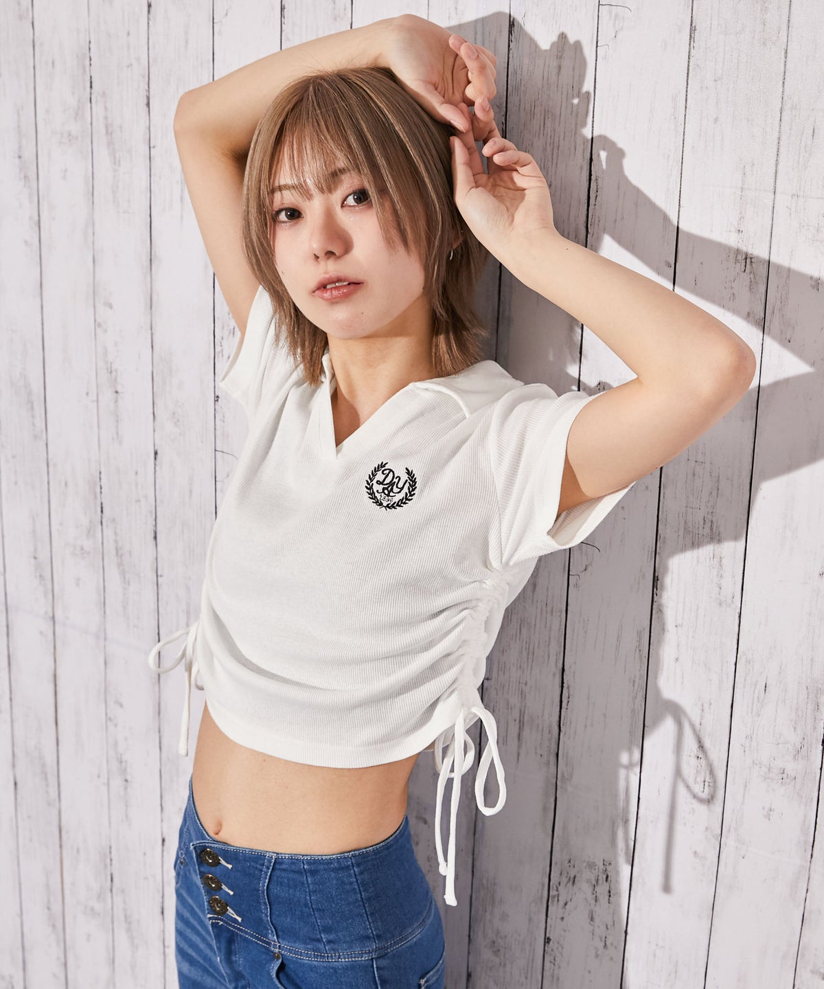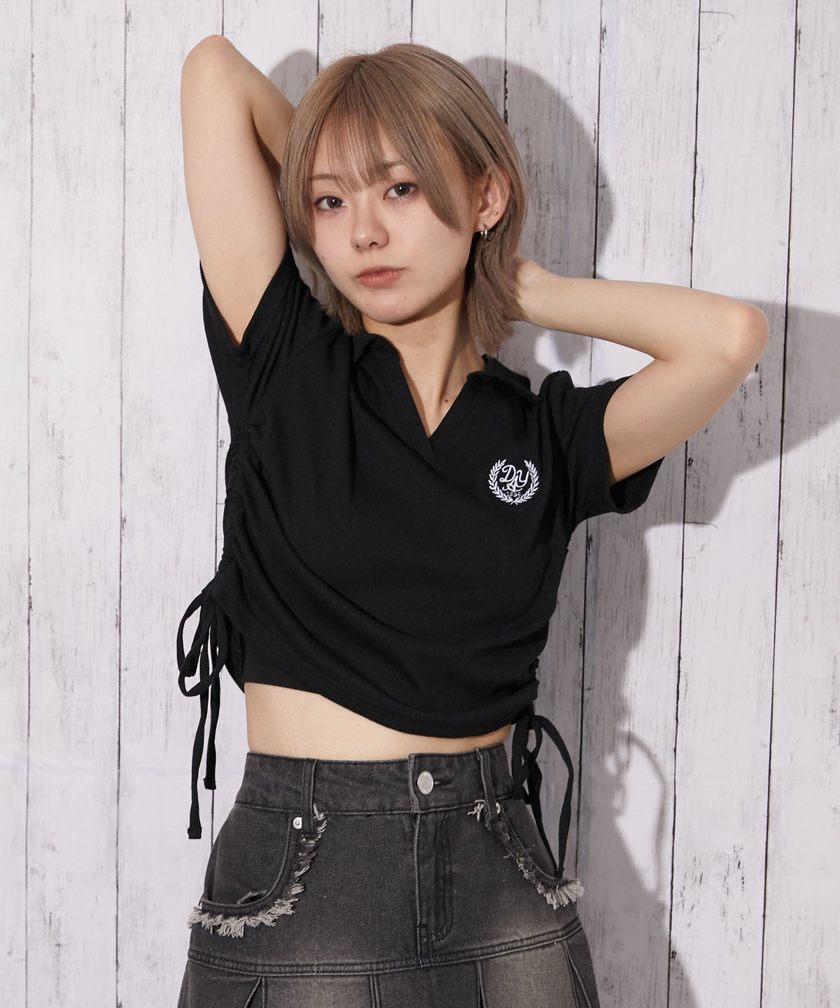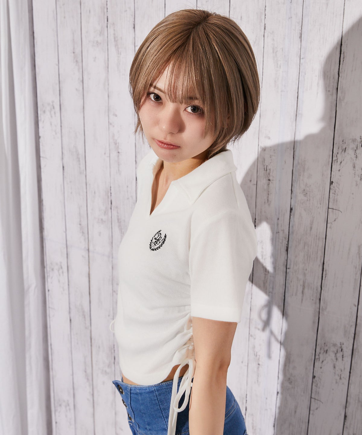 《サイドドロスト×エンブレム刺繍》スキッパーTシャツ/ストリート/春夏/全2色