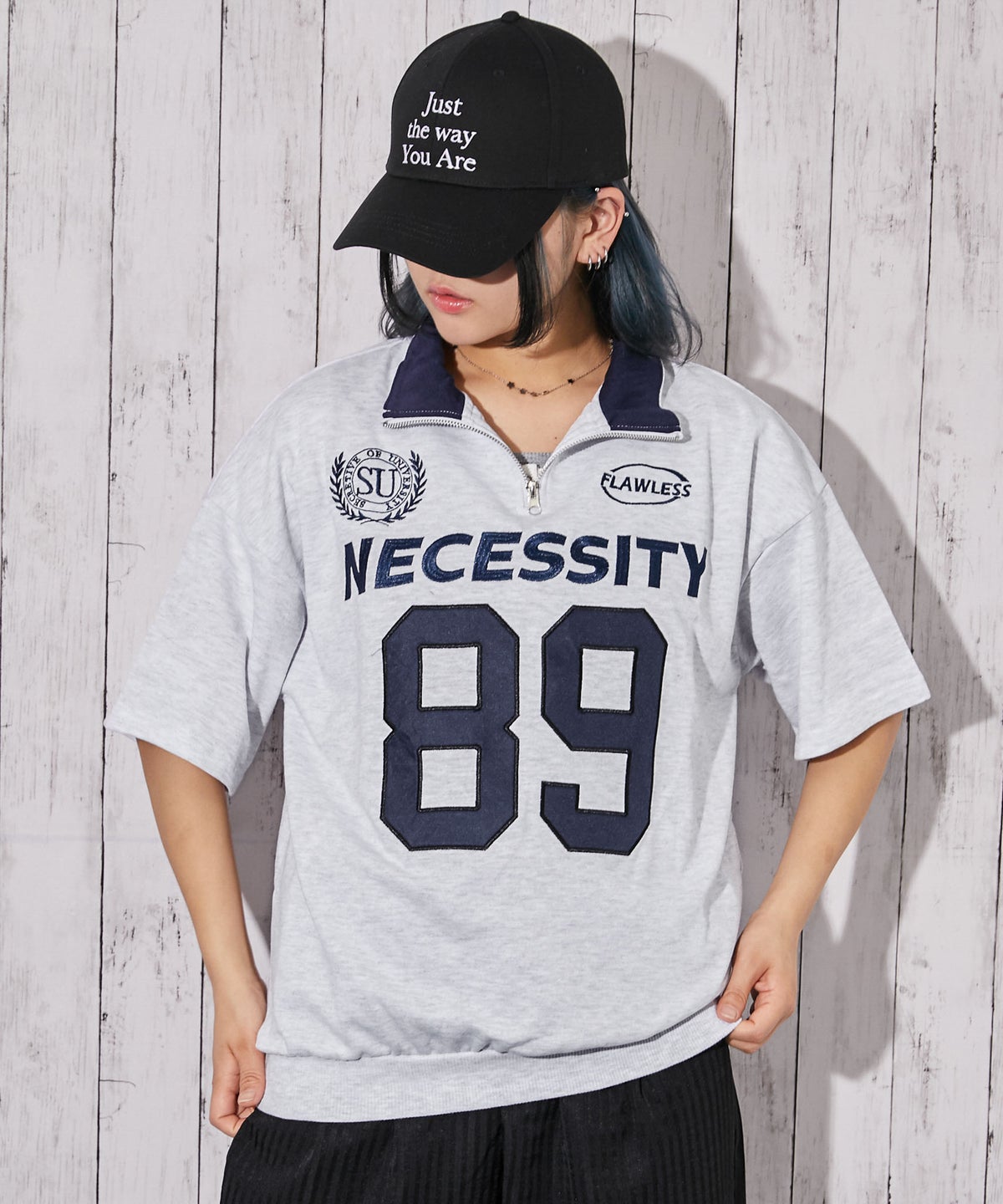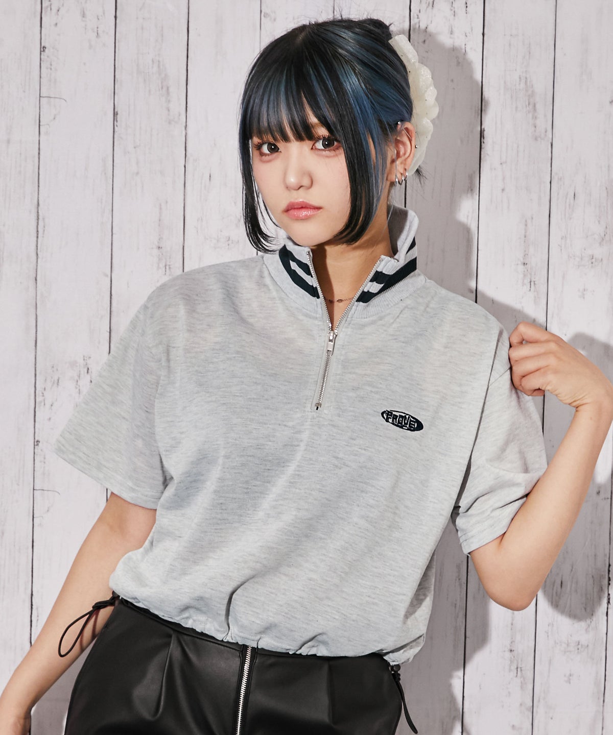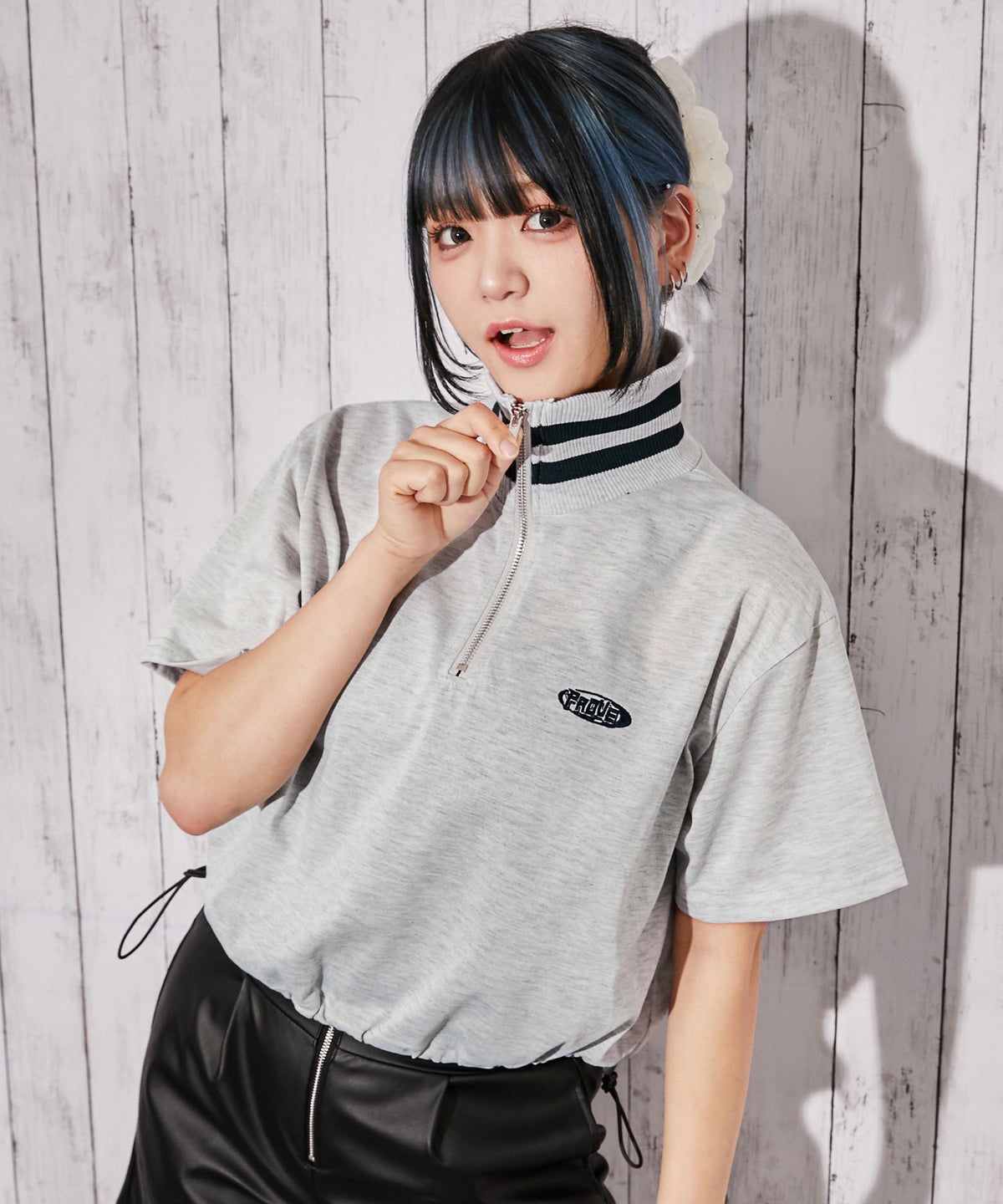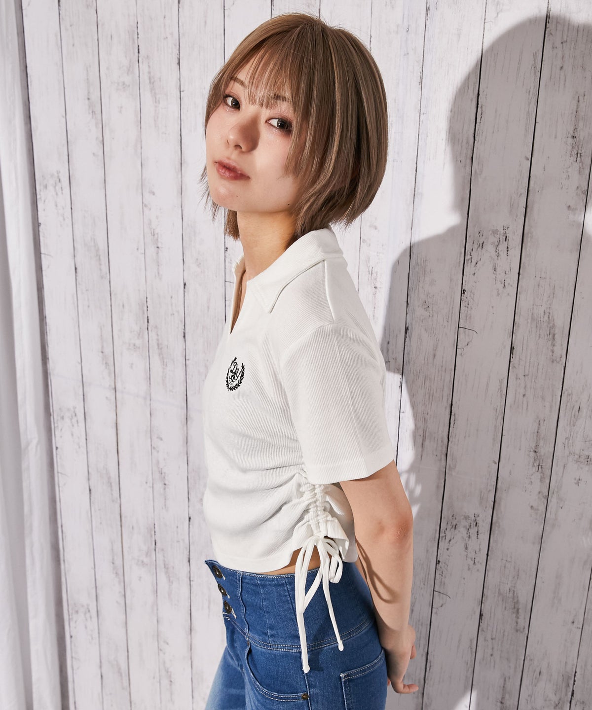 《サイドドロスト×エンブレム刺繍》スキッパーTシャツ/ストリート/春夏/全2色