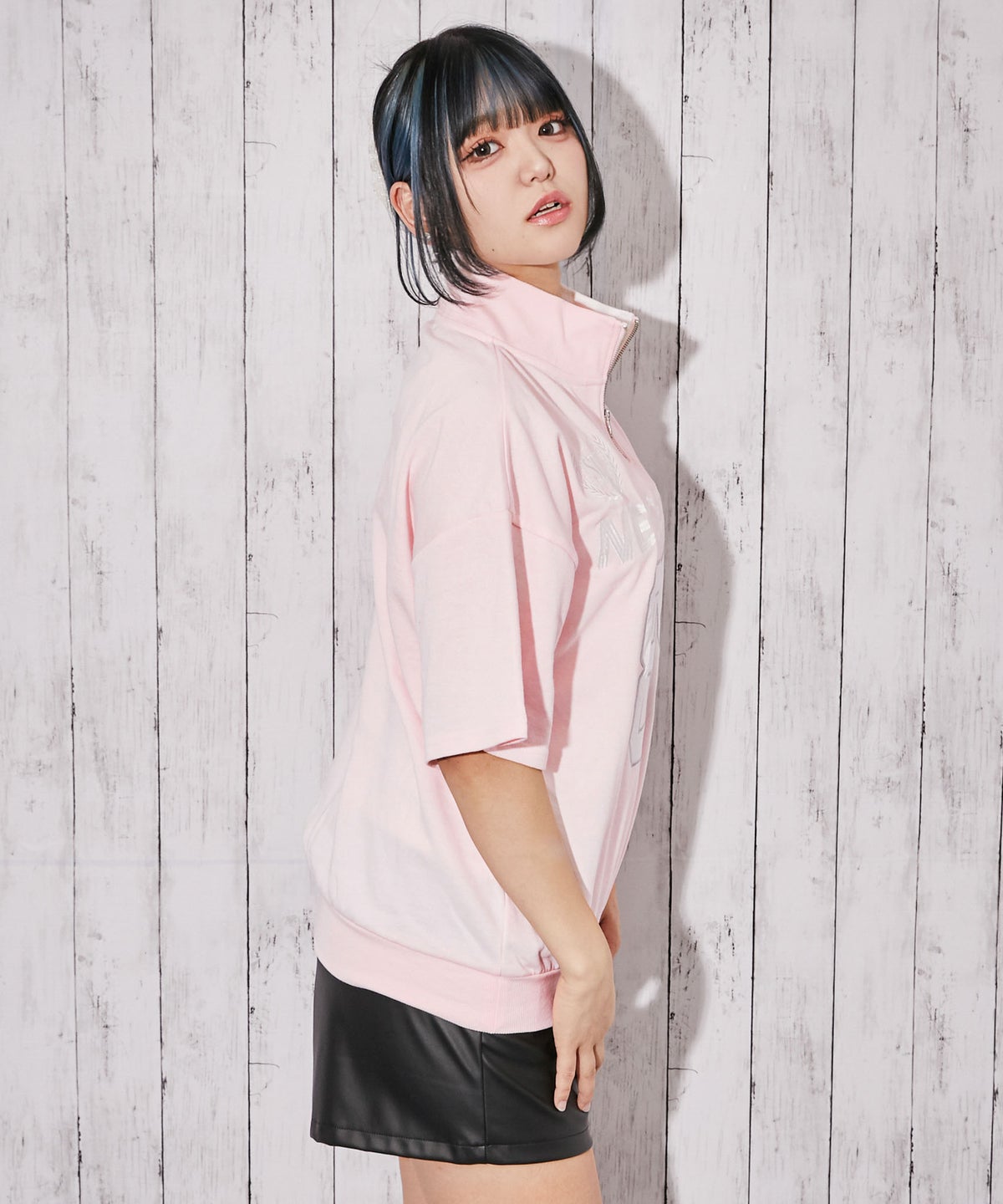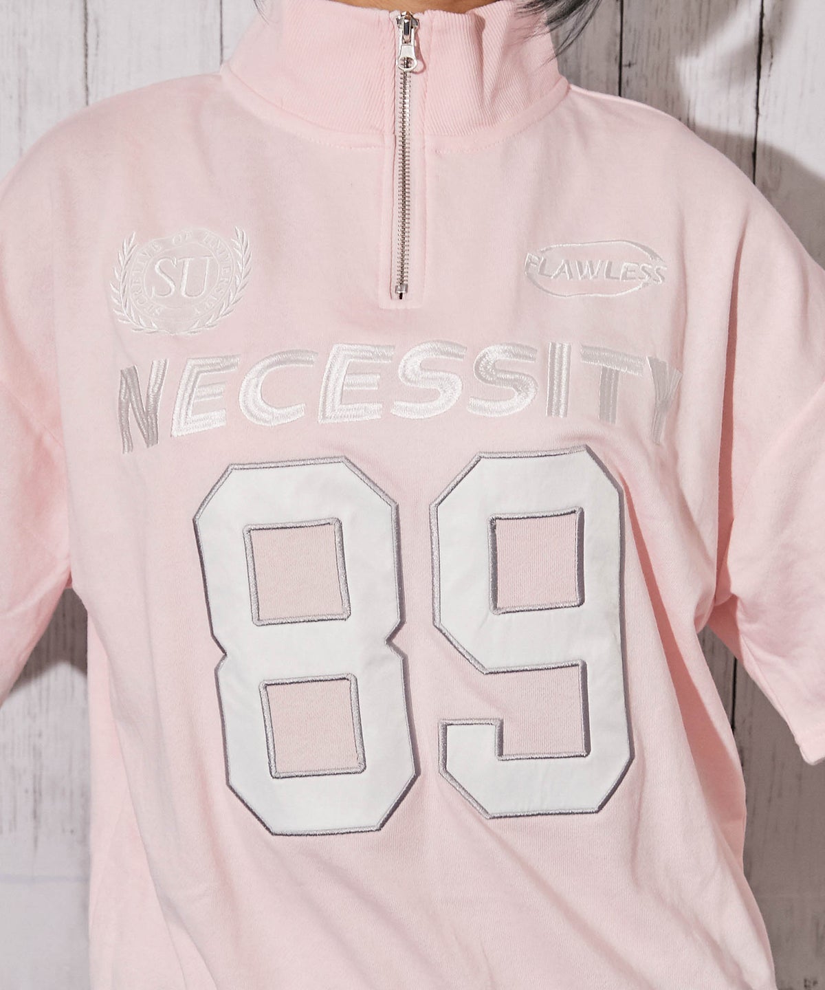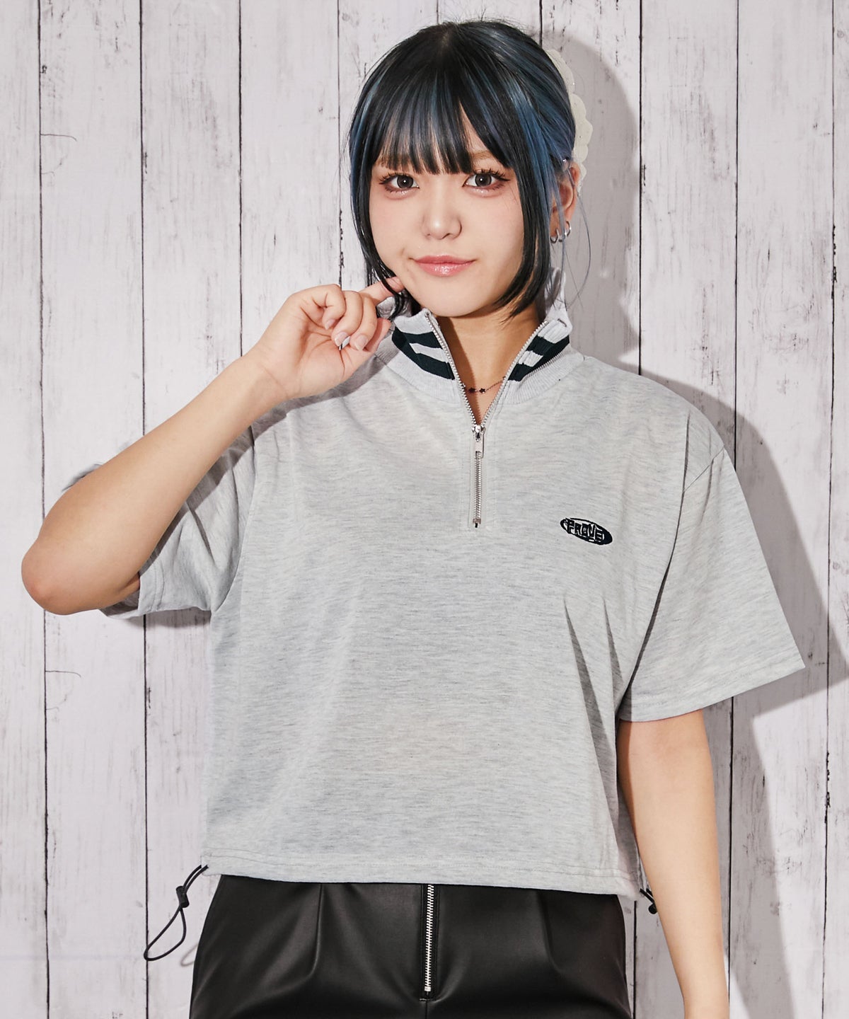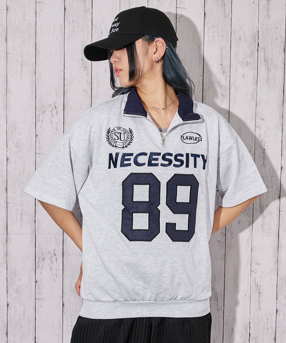 《サイドドロスト×エンブレム刺繍》スキッパーTシャツ/ストリート/春夏/全2色