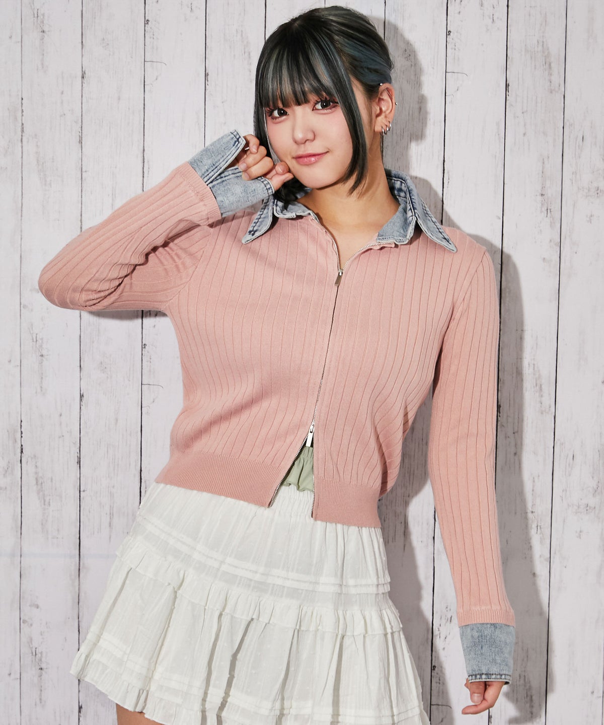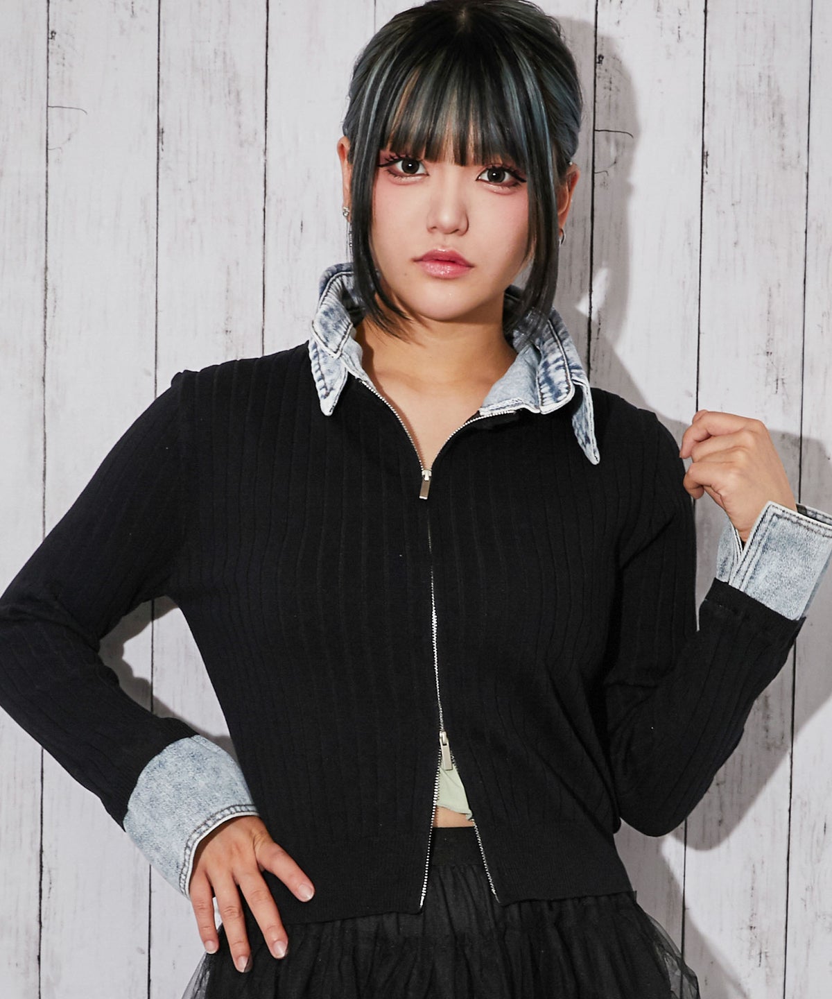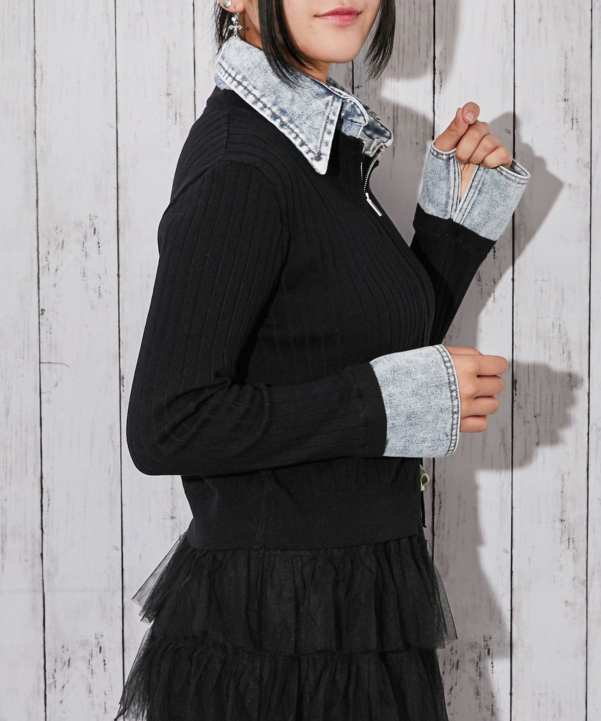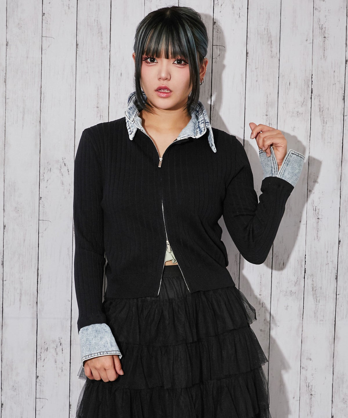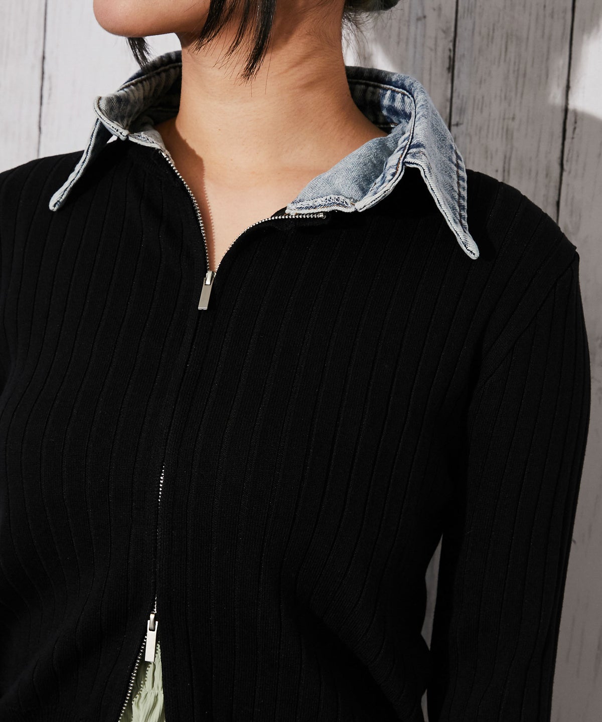 《デニム衿・Wジップ》リブニット/フェミニン/春秋冬/全4色