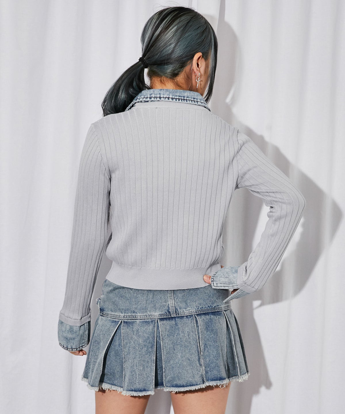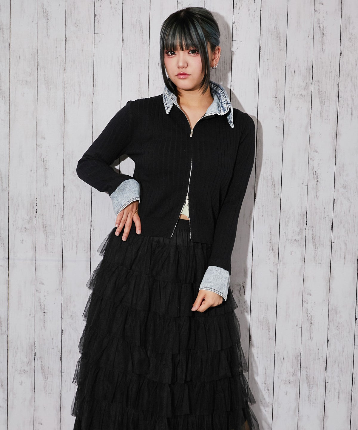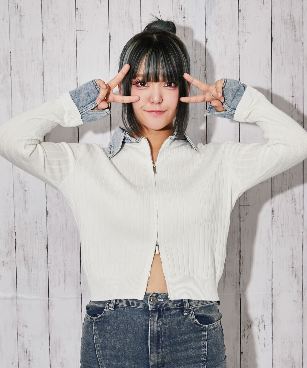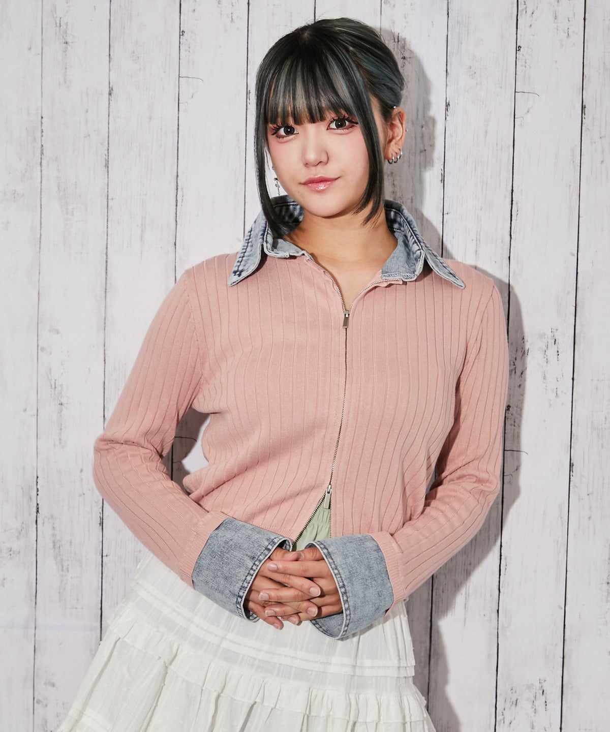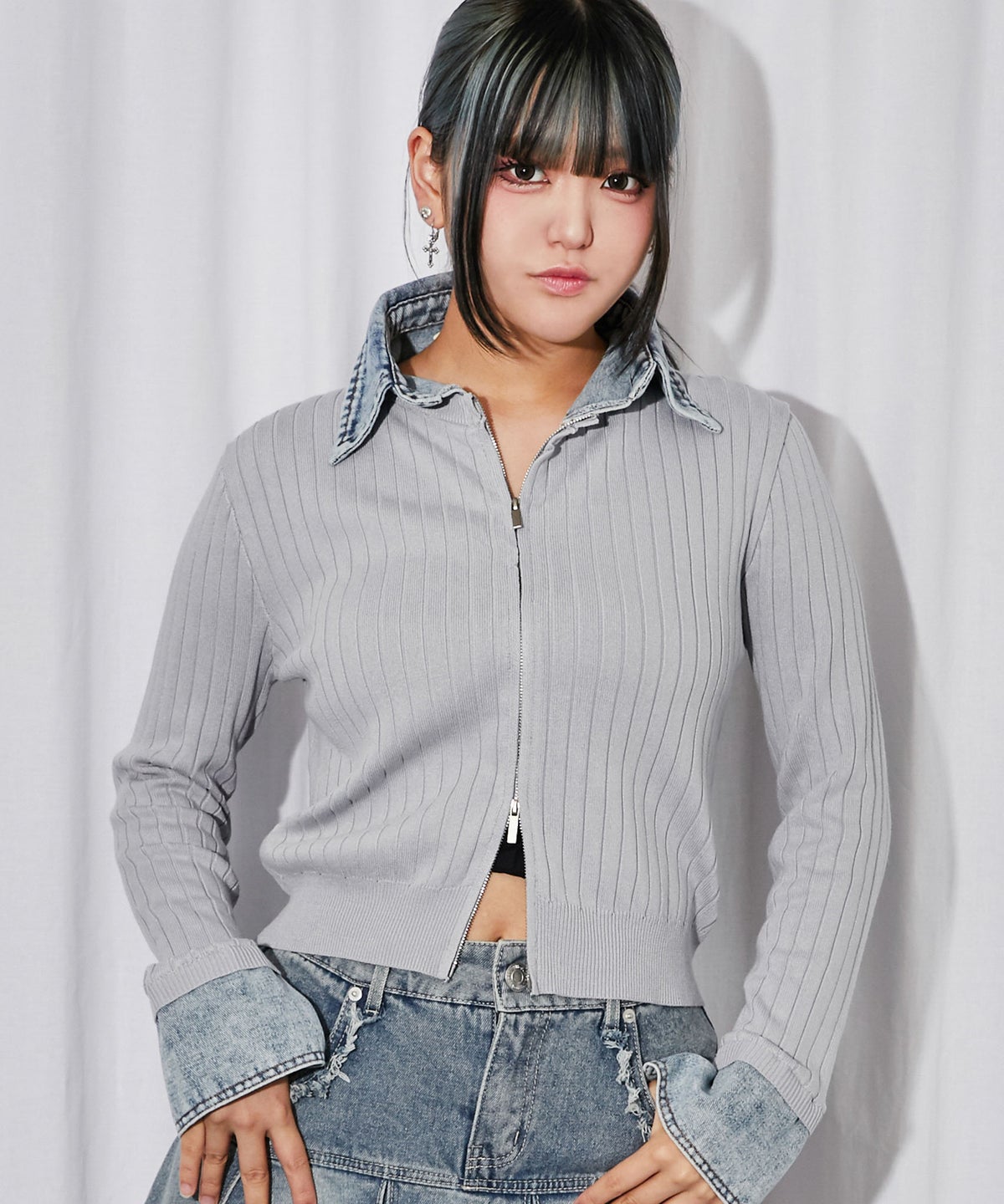 《デニム衿・Wジップ》リブニット/フェミニン/春秋冬/全4色