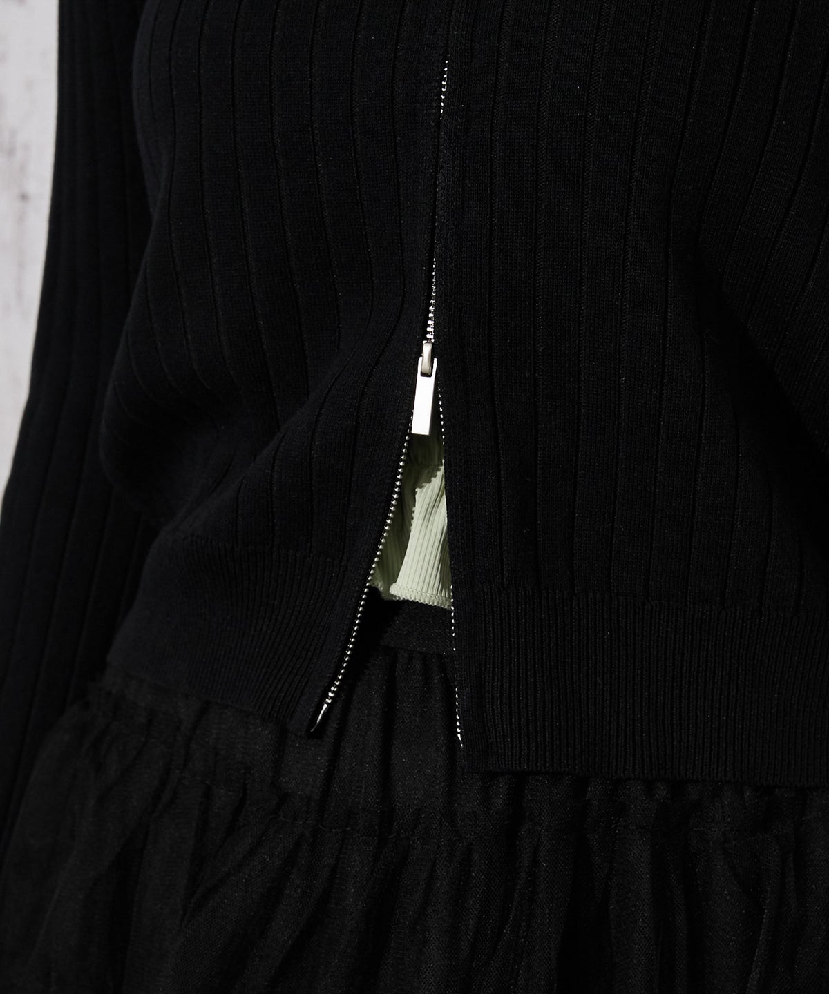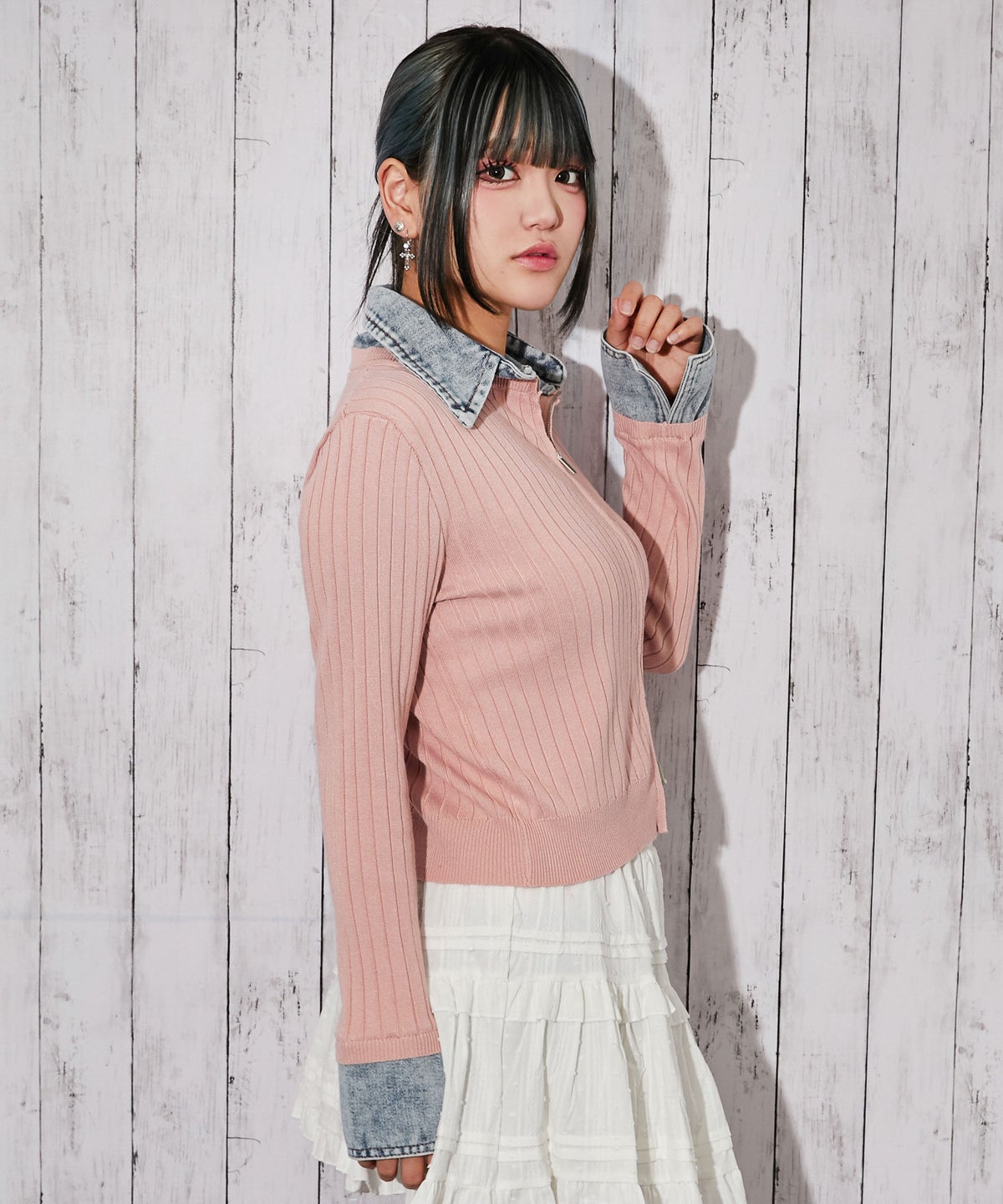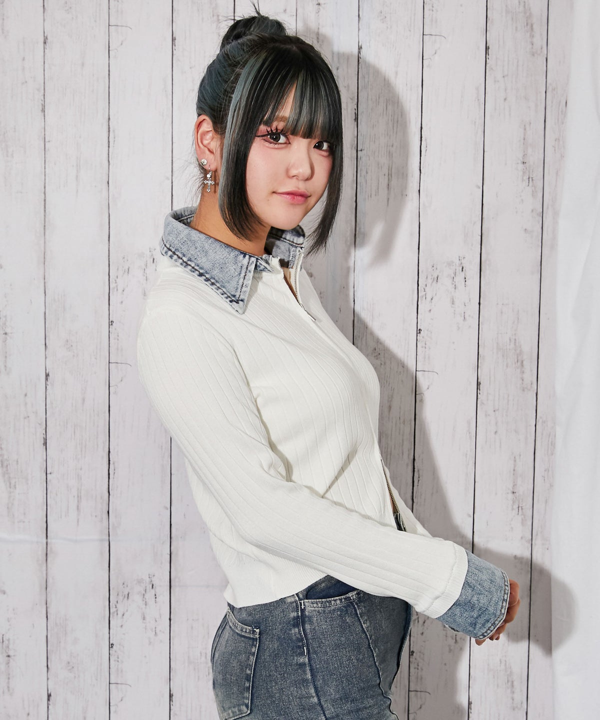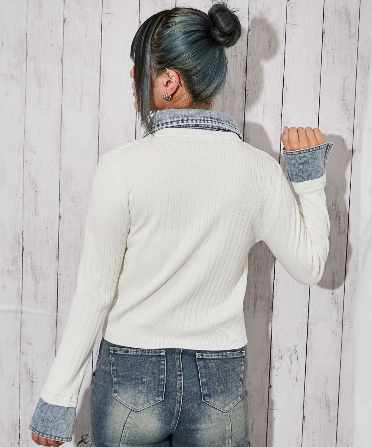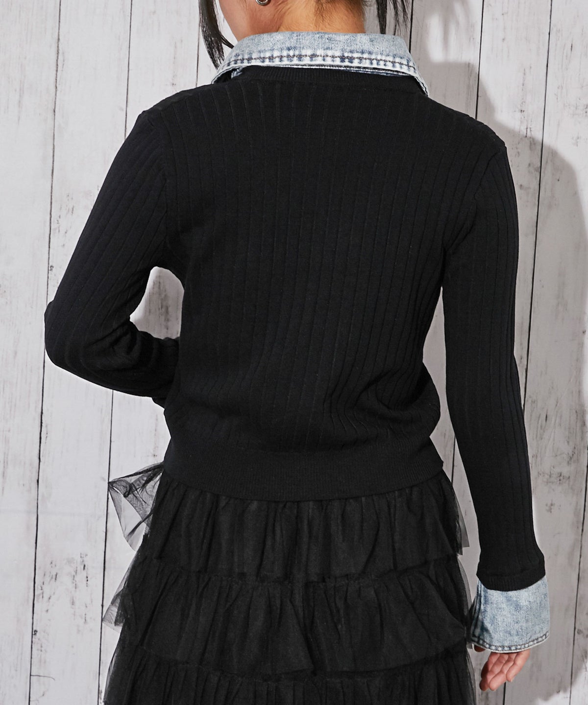 《デニム衿・Wジップ》リブニット/フェミニン/春秋冬/全4色