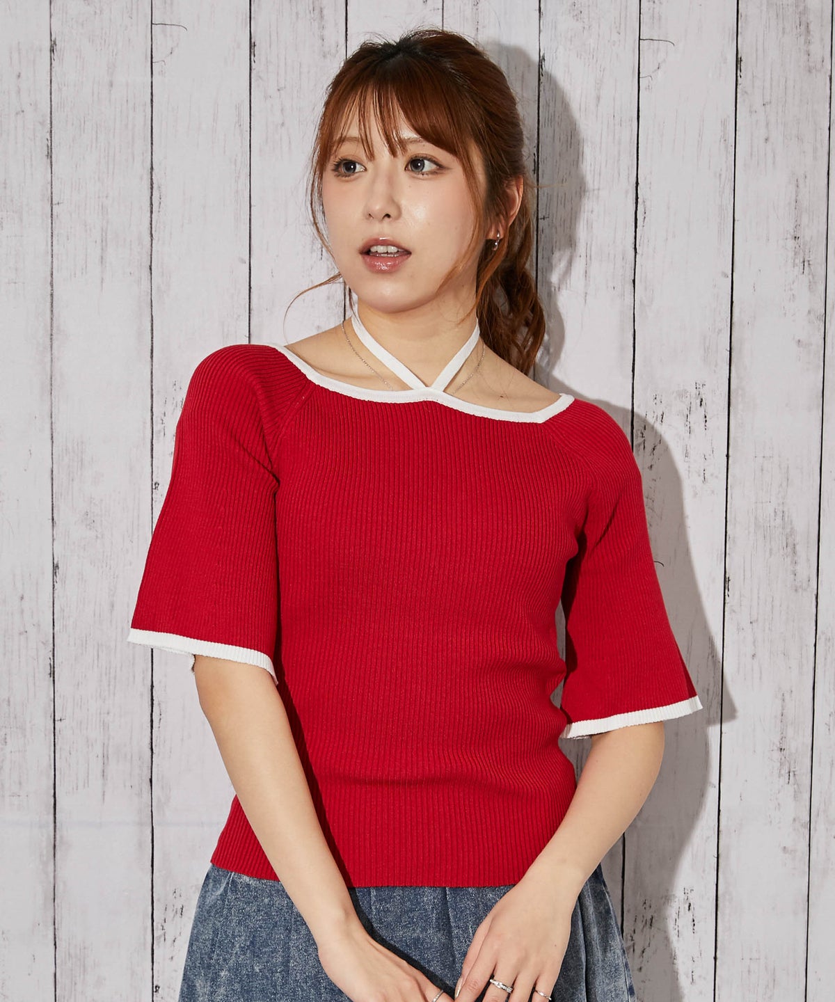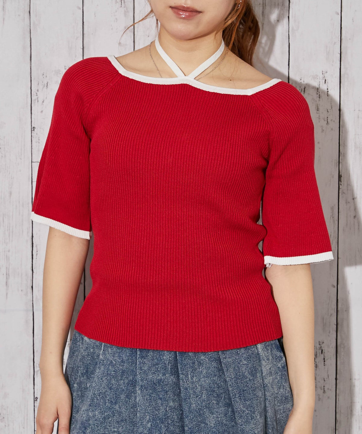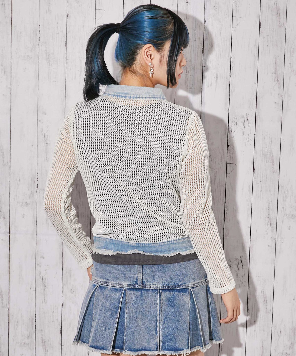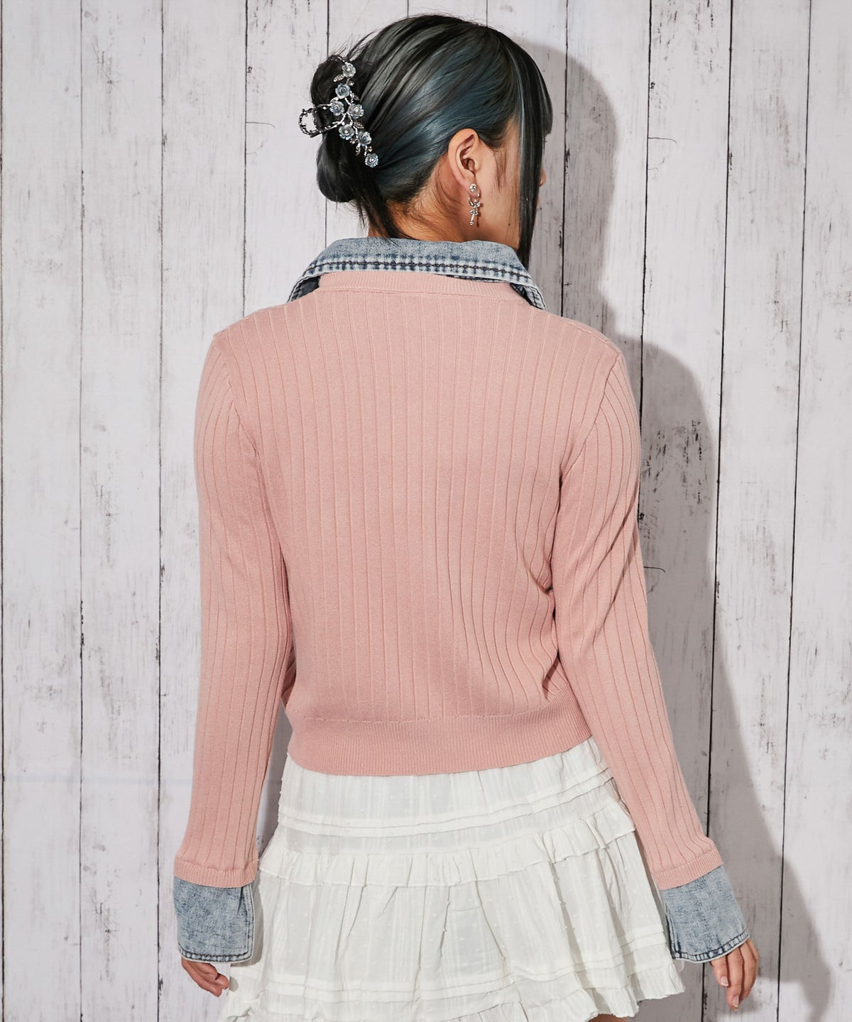 《デニム衿・Wジップ》リブニット/フェミニン/春秋冬/全4色