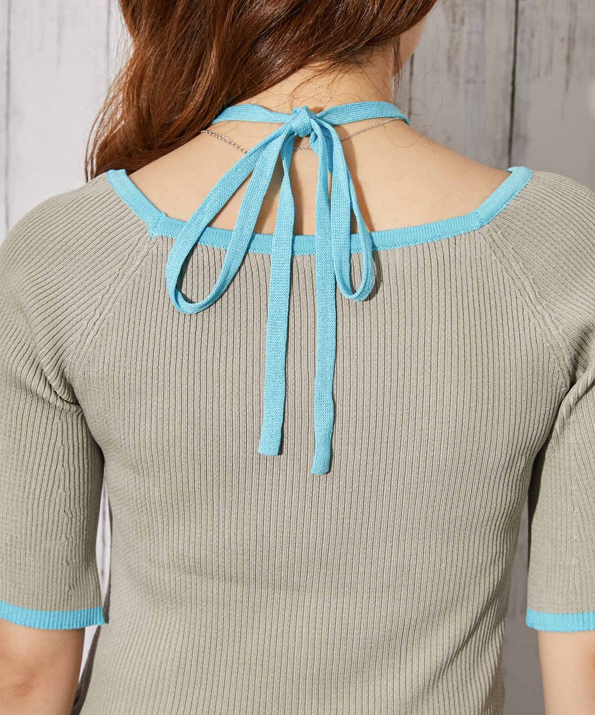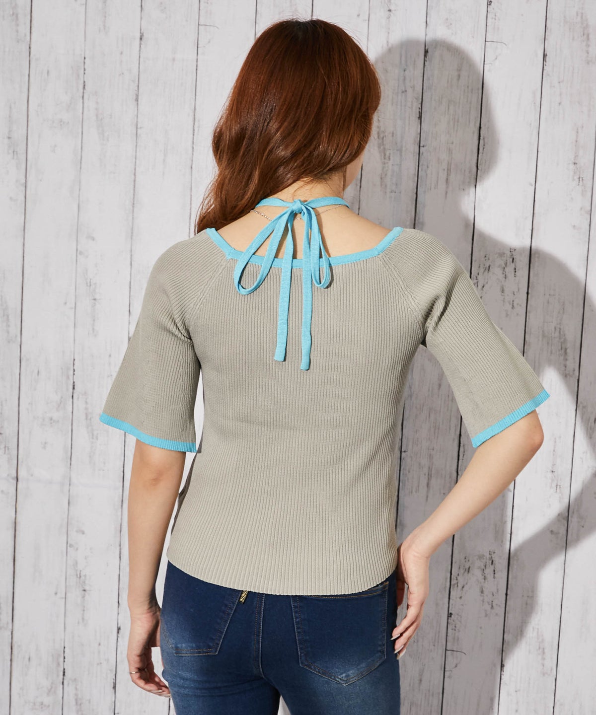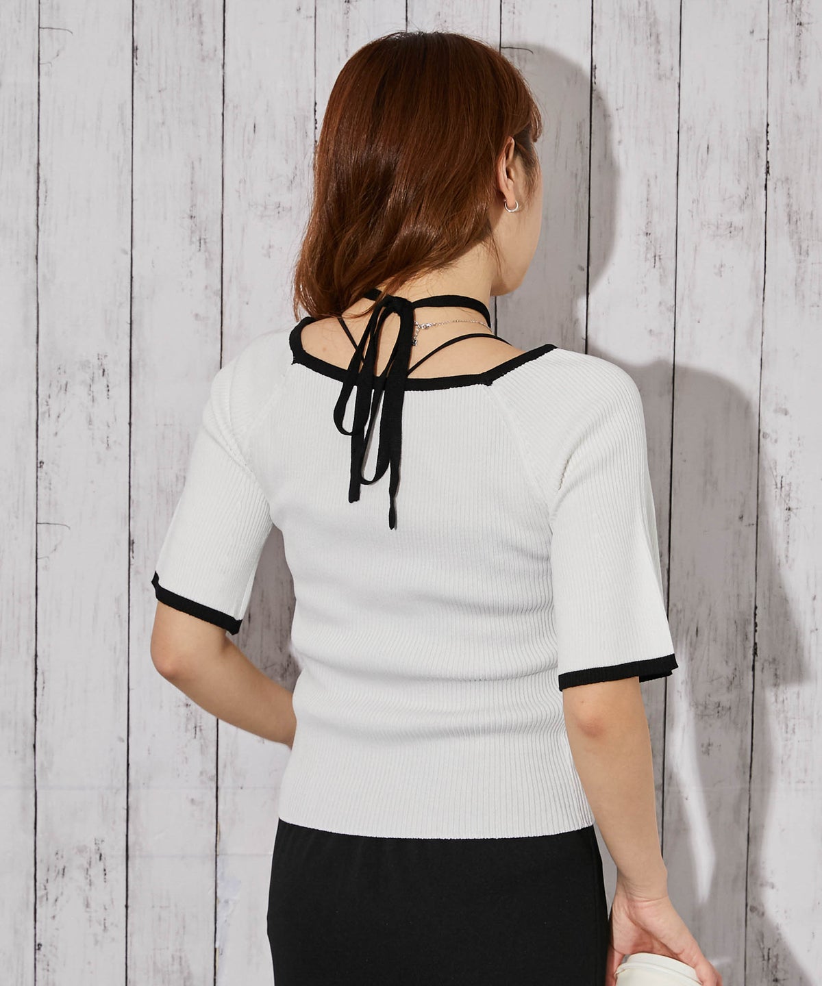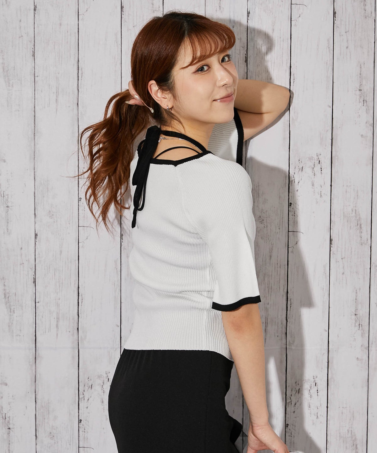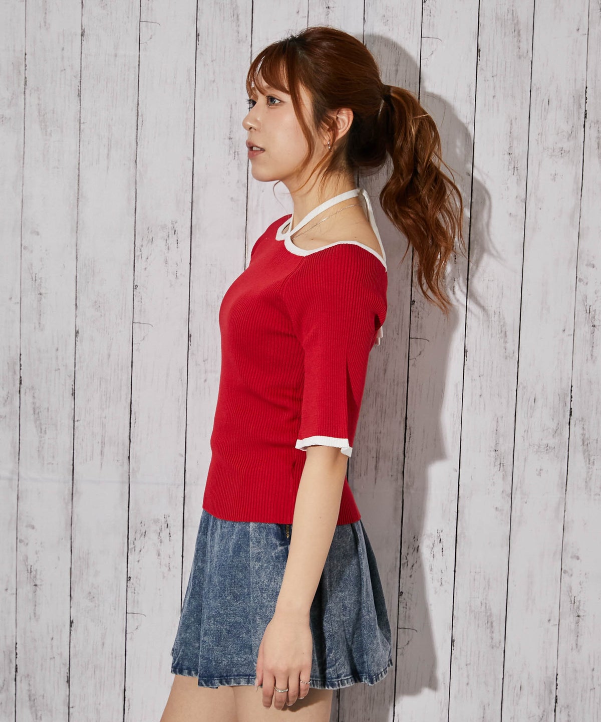 《デニム衿・Wジップ》リブニット/フェミニン/春秋冬/全4色