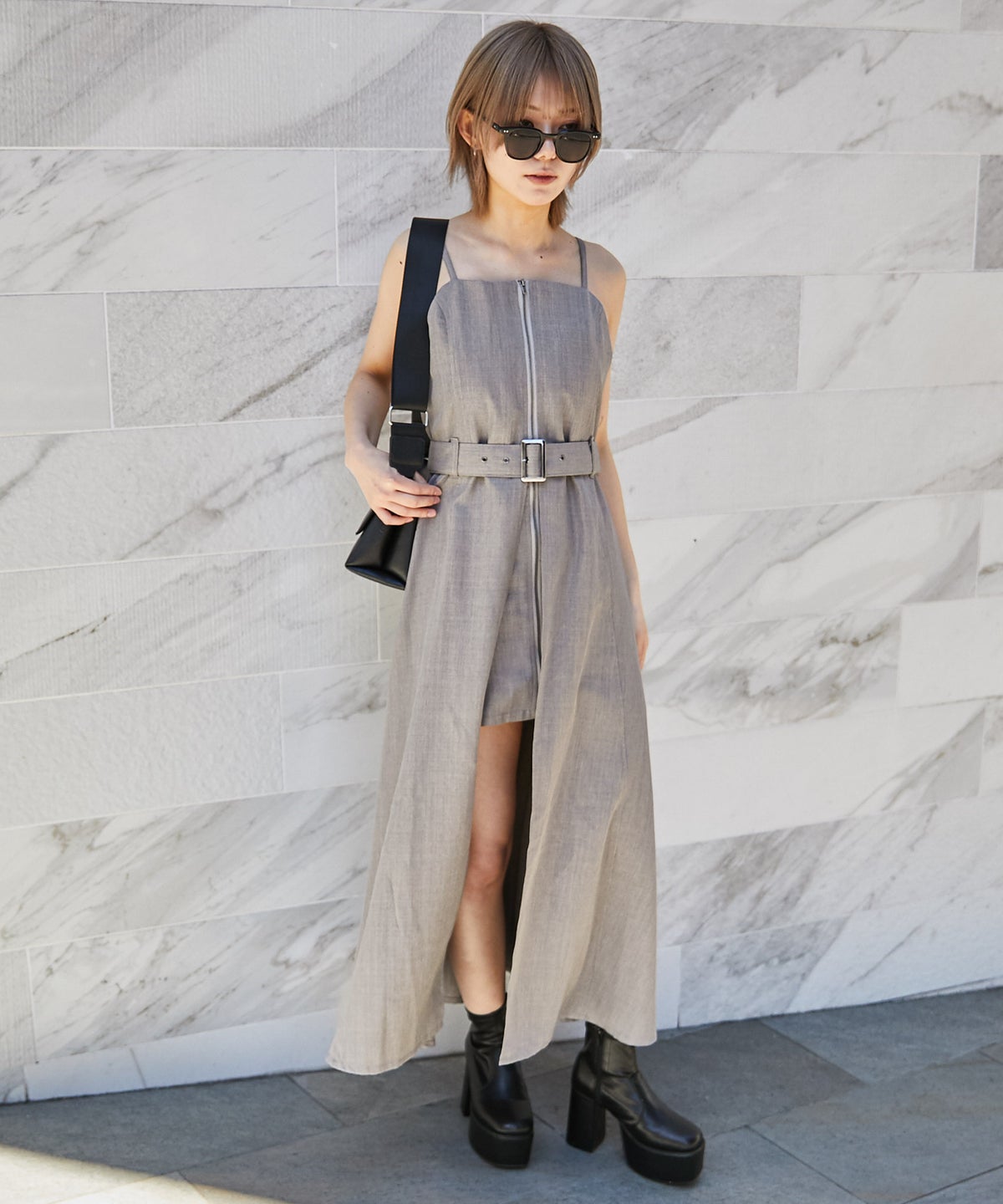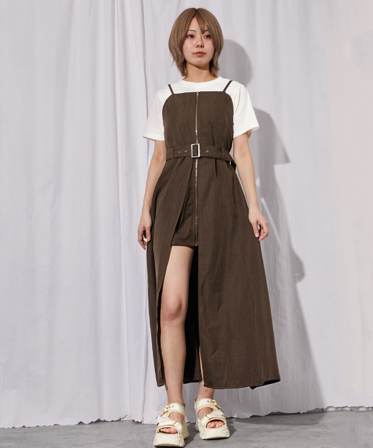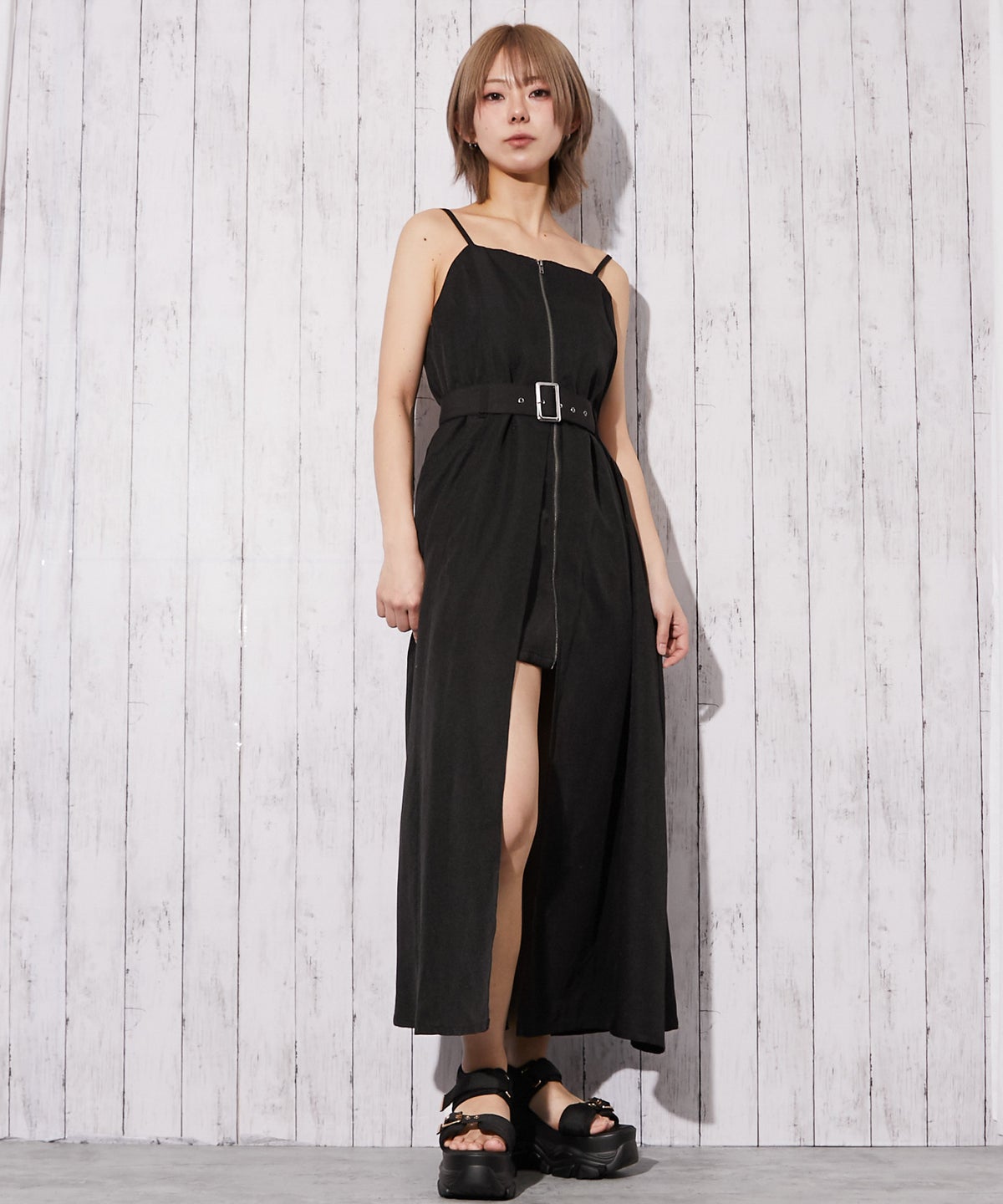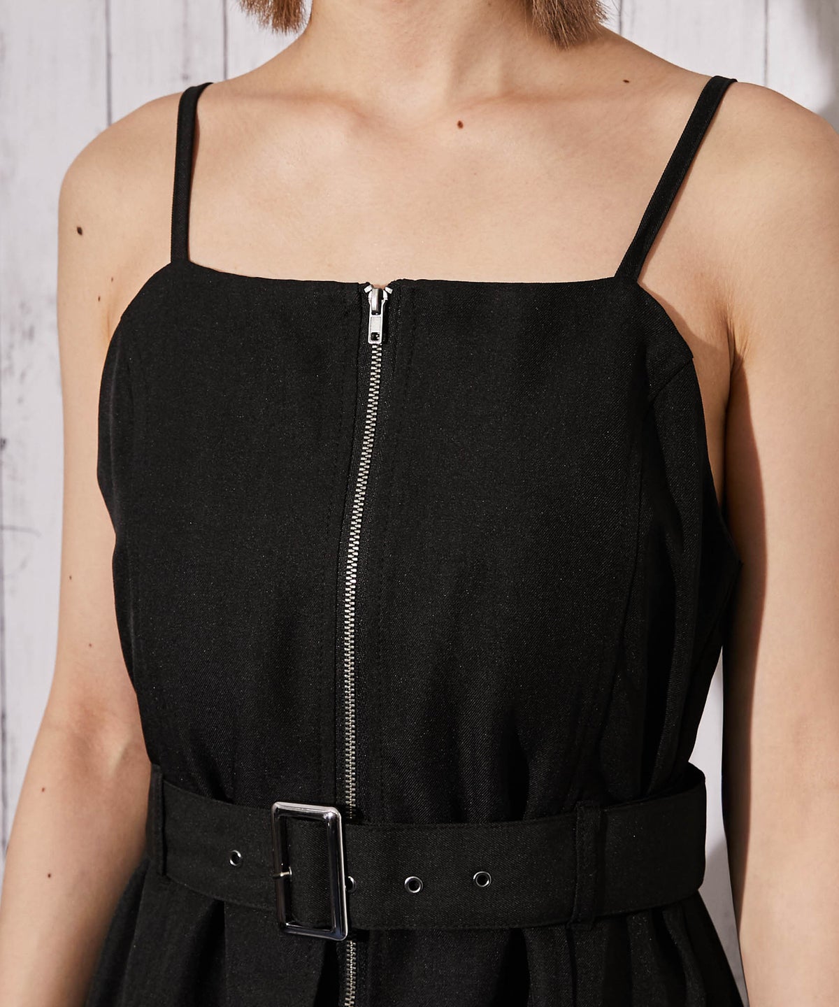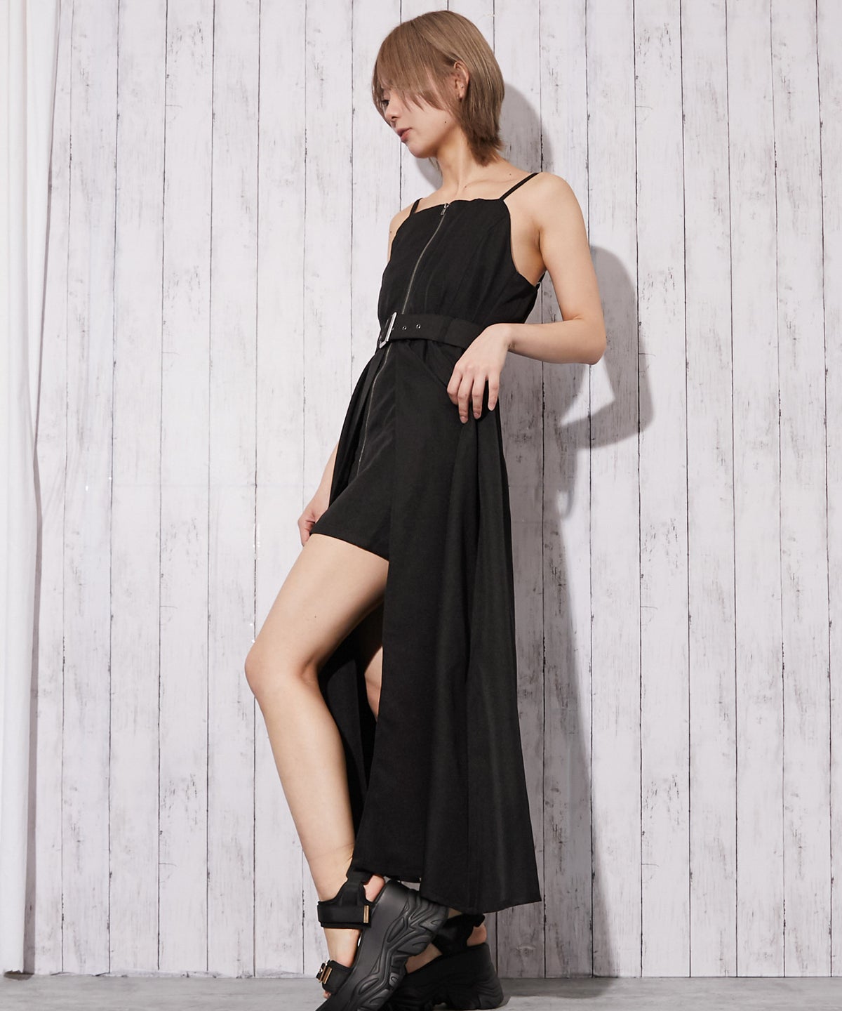 《ベルト付き×フロントZIP》オールインワン/カジュアル/春夏秋/全3色