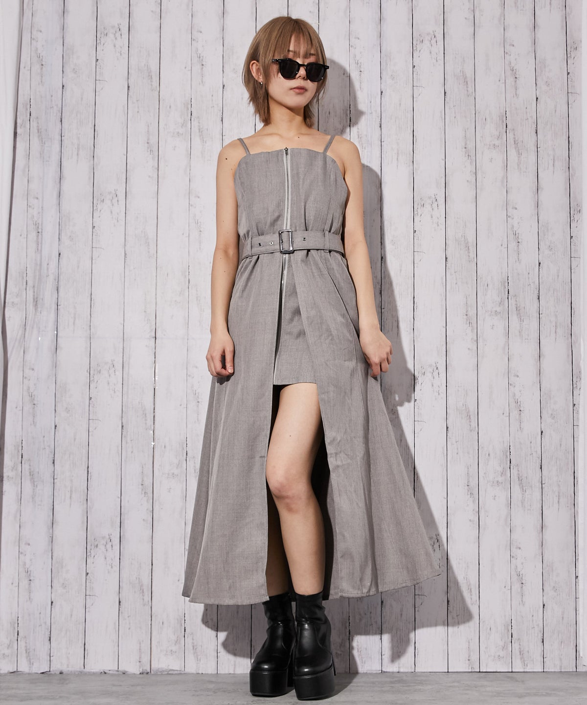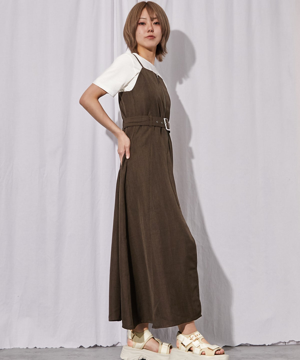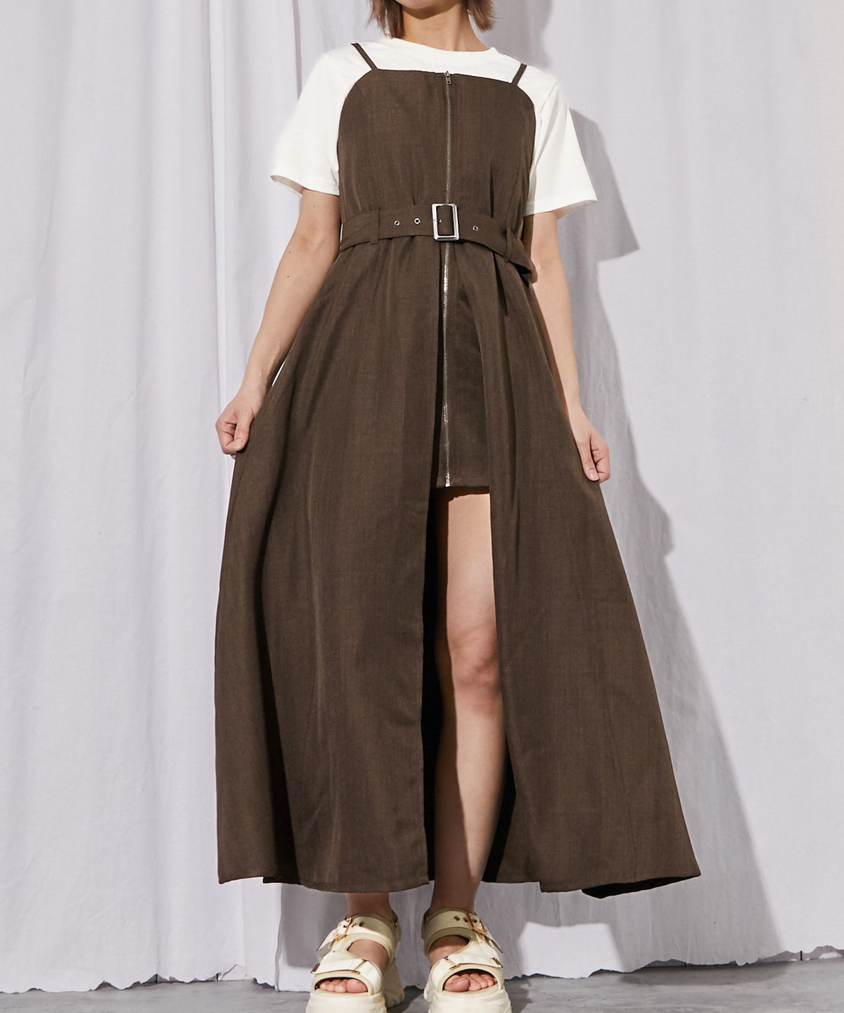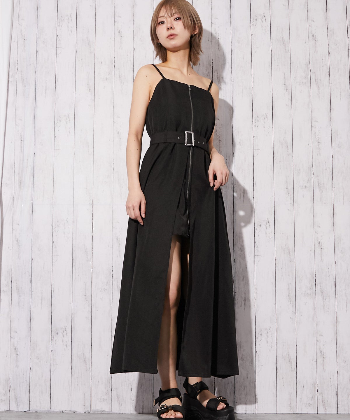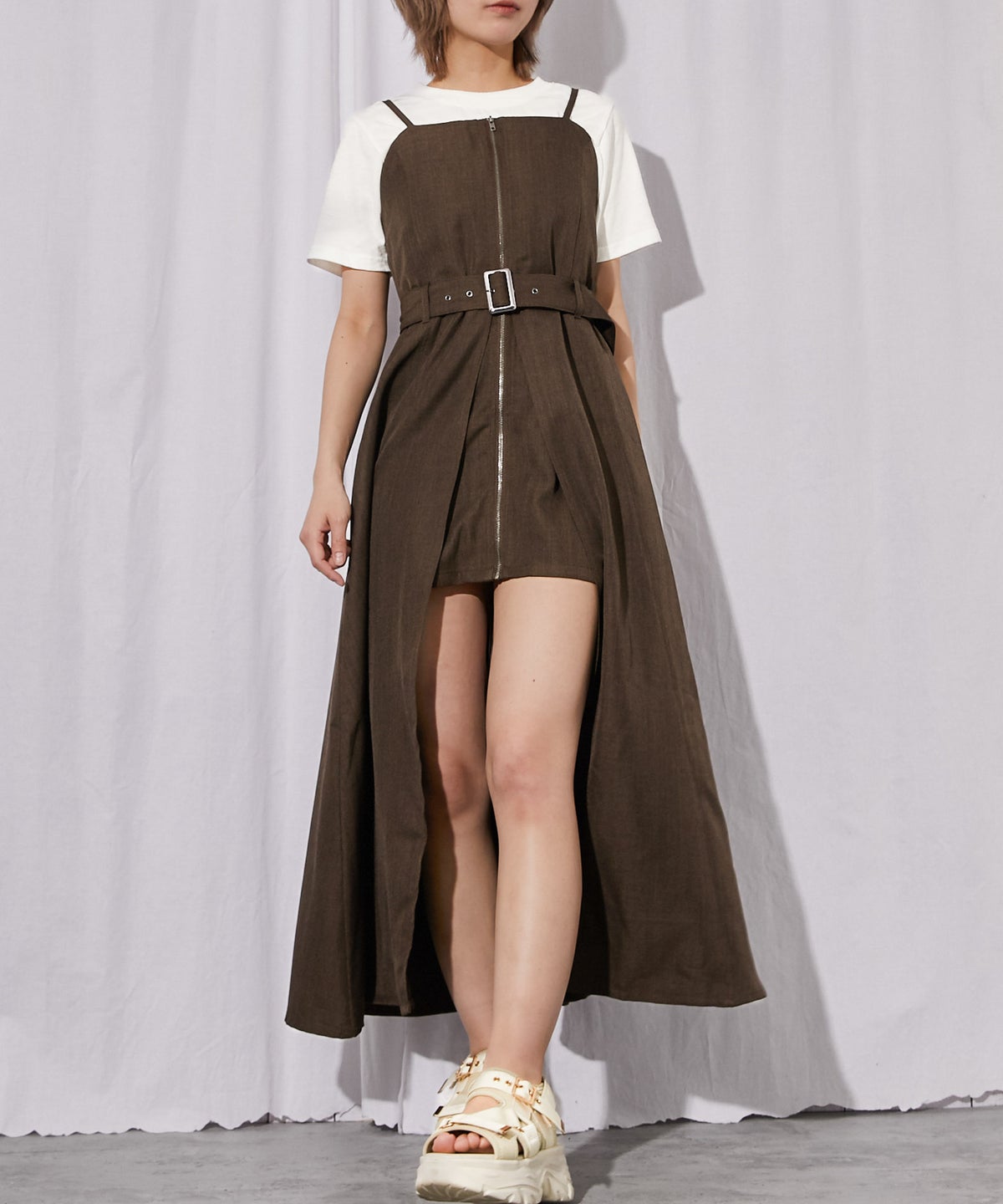 《ベルト付き×フロントZIP》オールインワン/カジュアル/春夏秋/全3色
