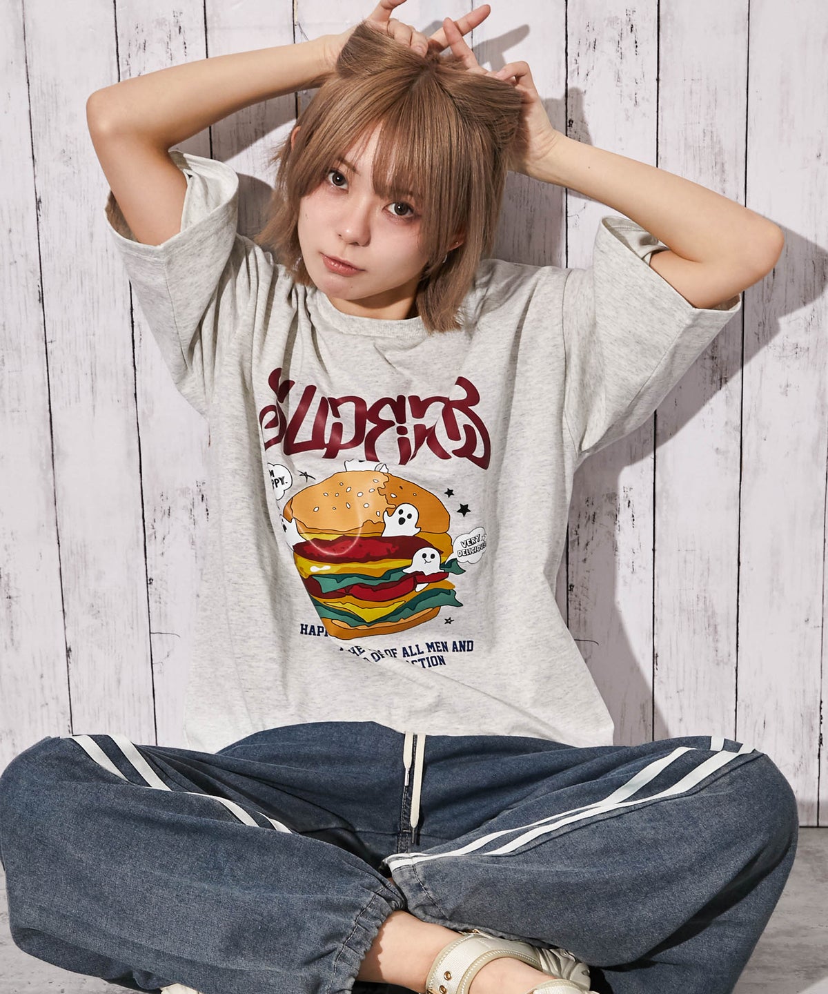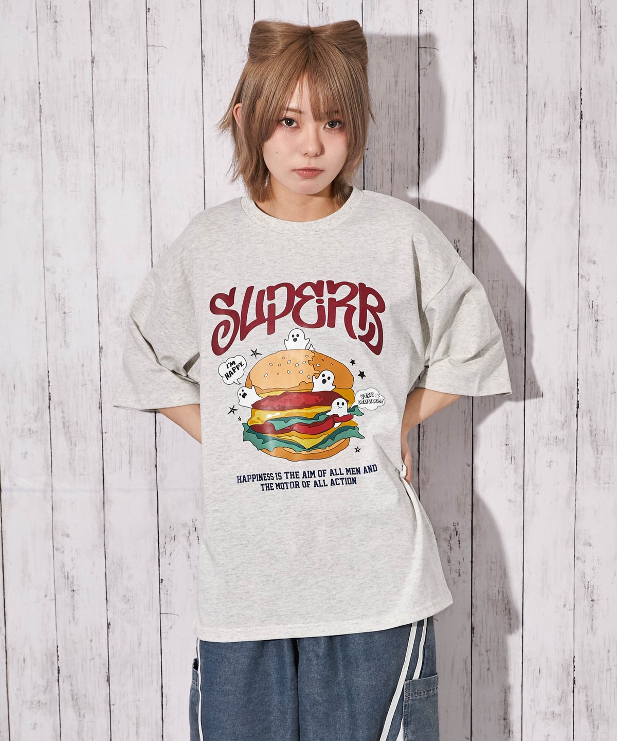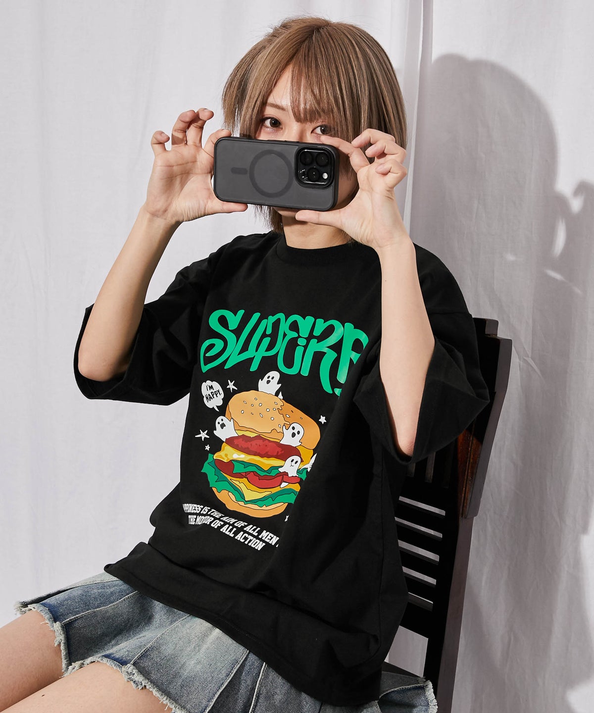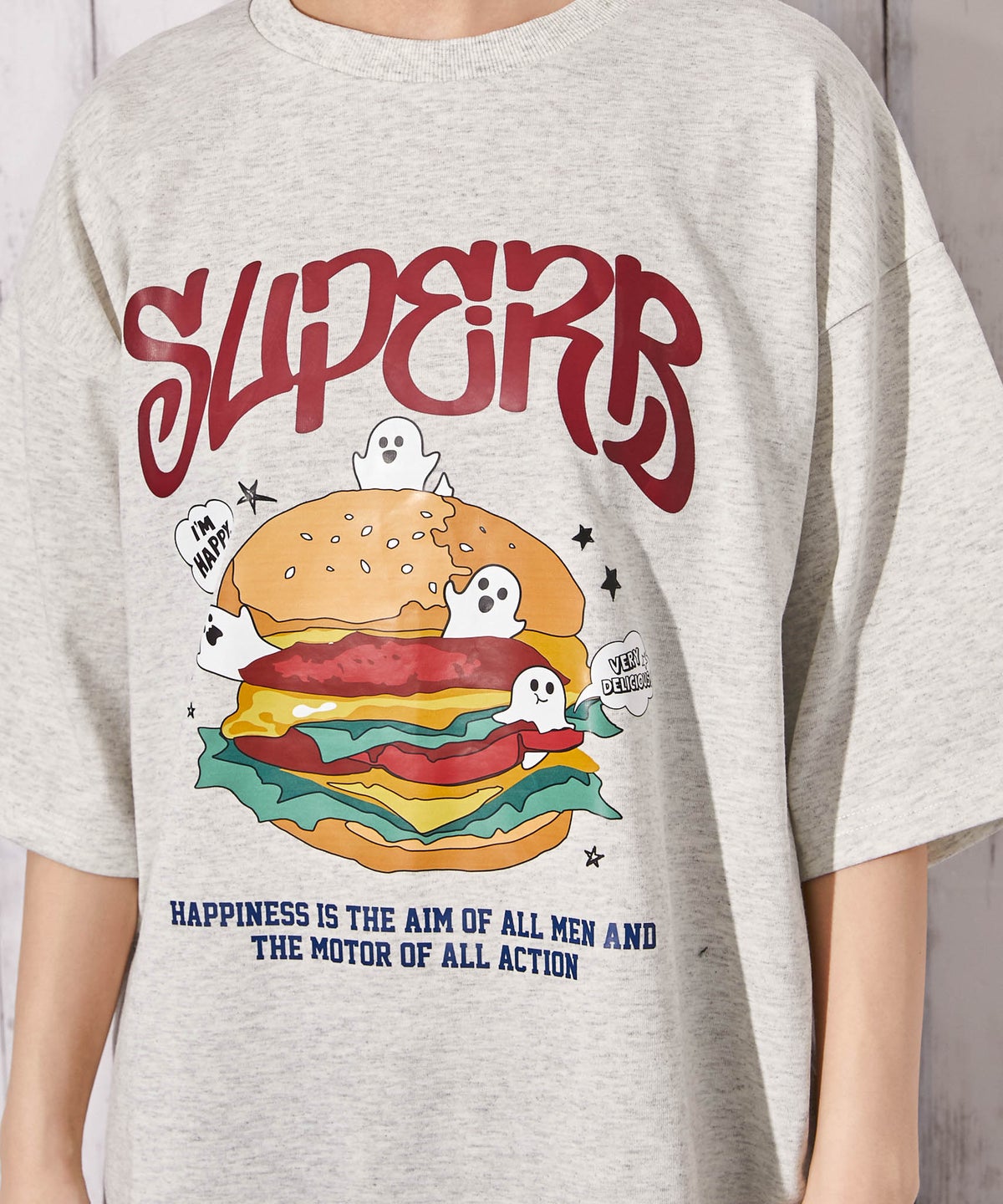 《バーガー×ゴーストプリント》BIGTシャツ/ストリート/春夏/全2色