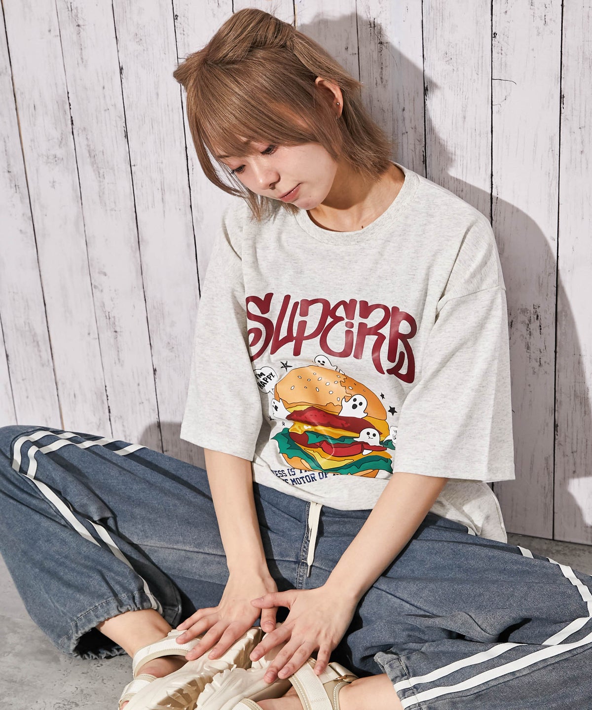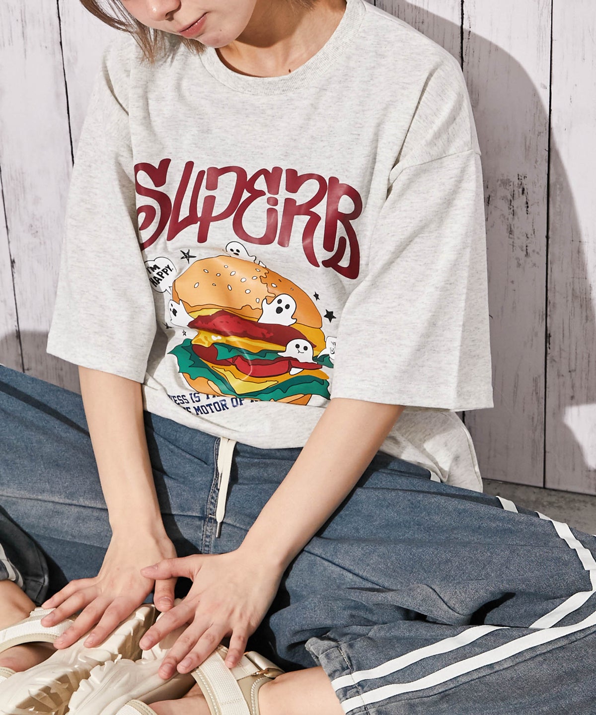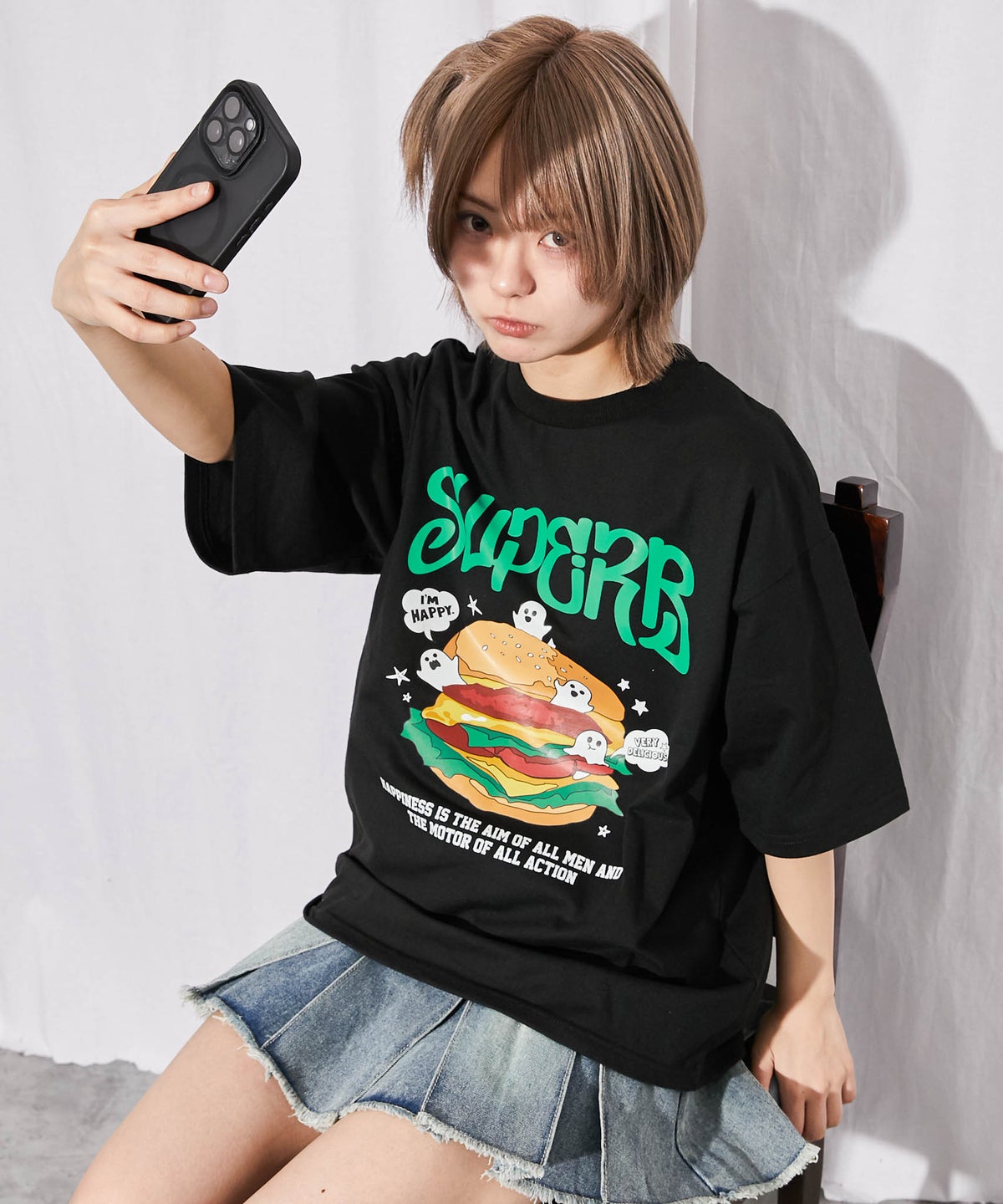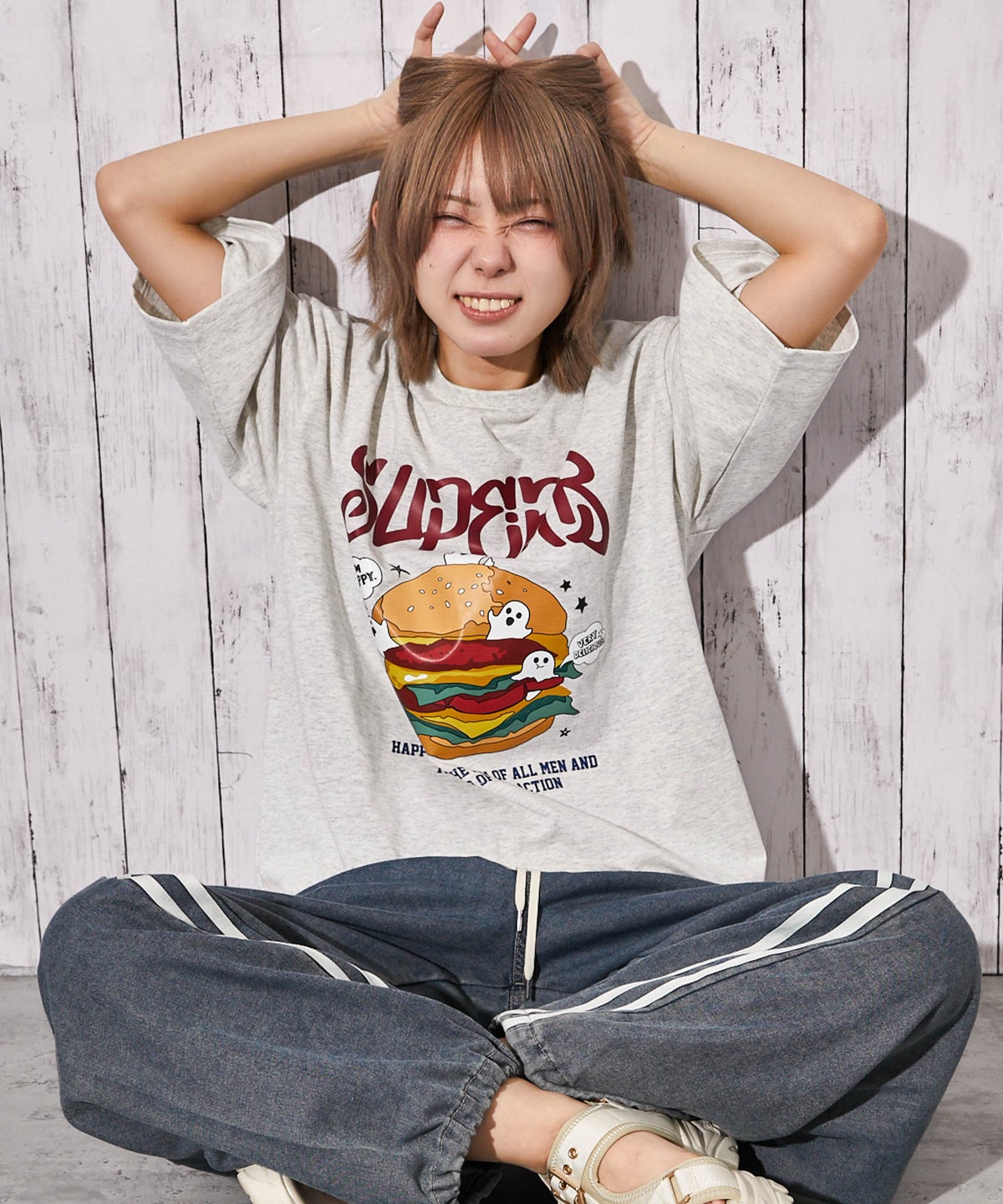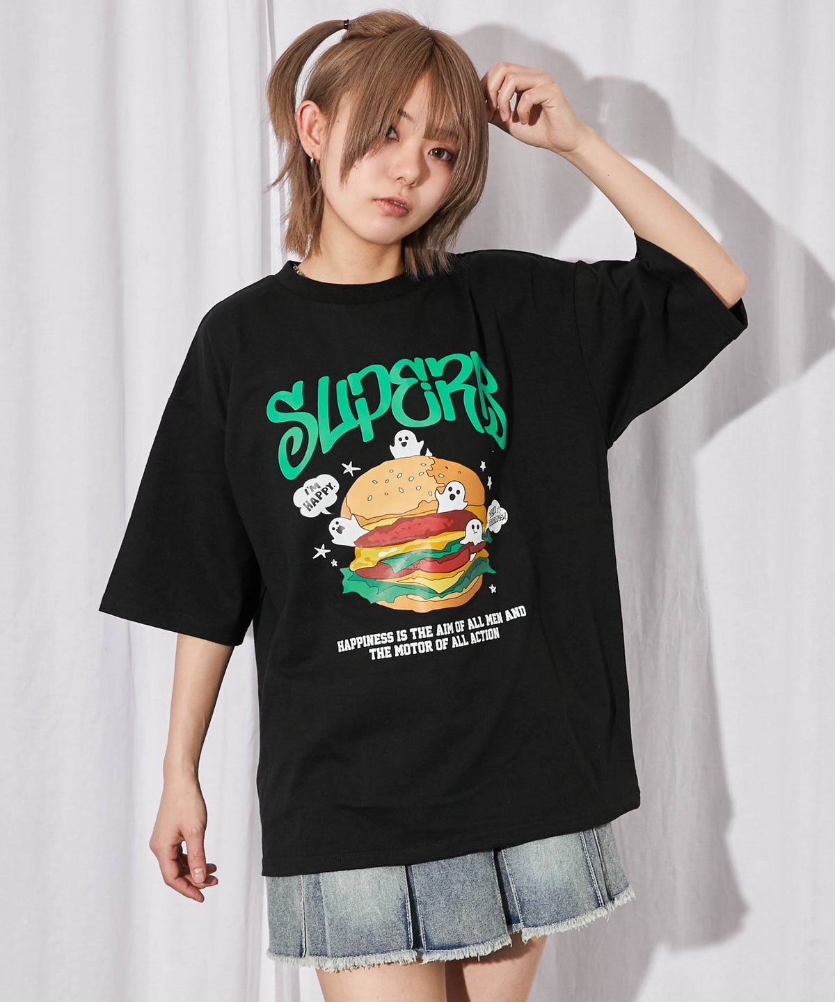 《バーガー×ゴーストプリント》BIGTシャツ/ストリート/春夏/全2色