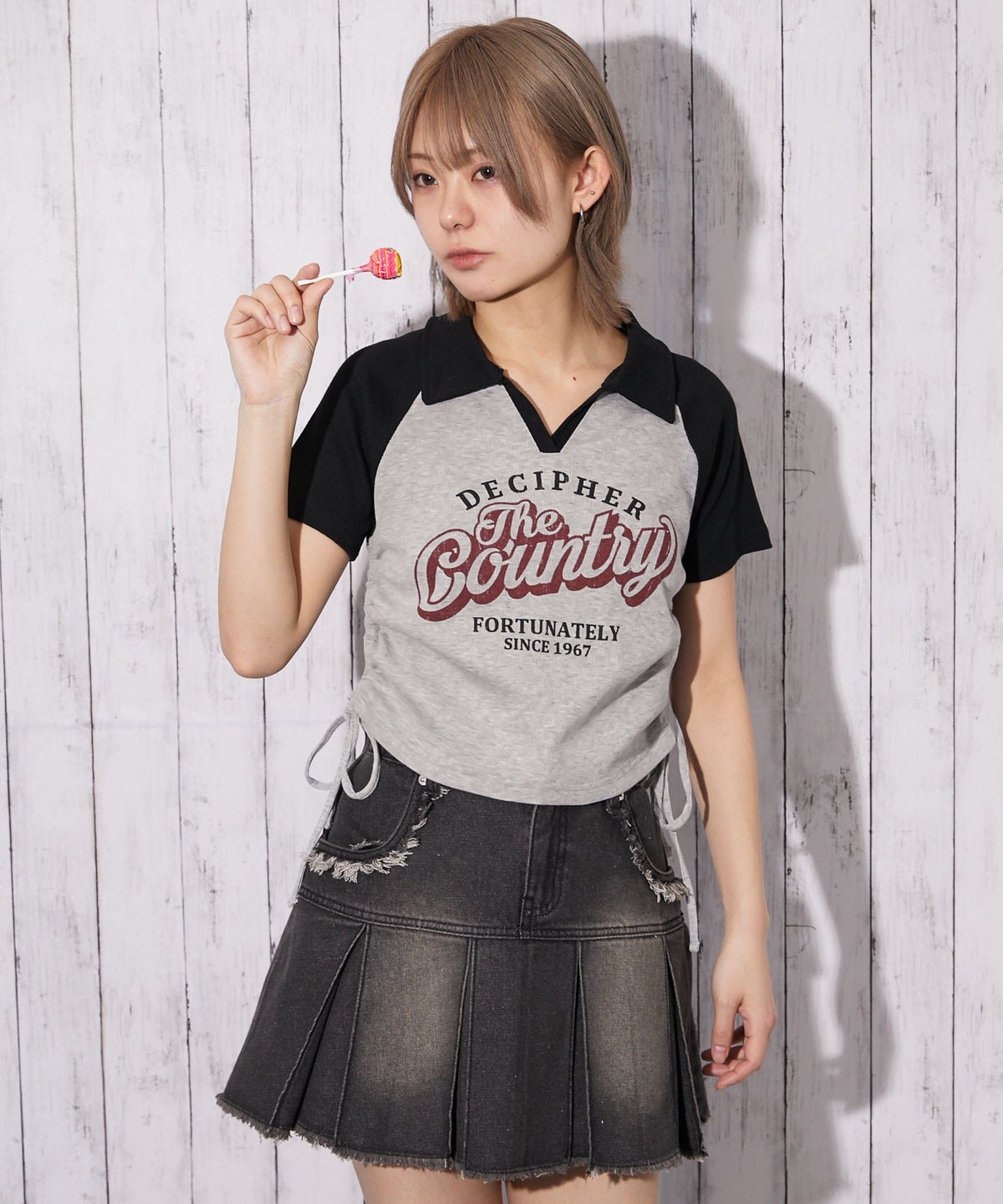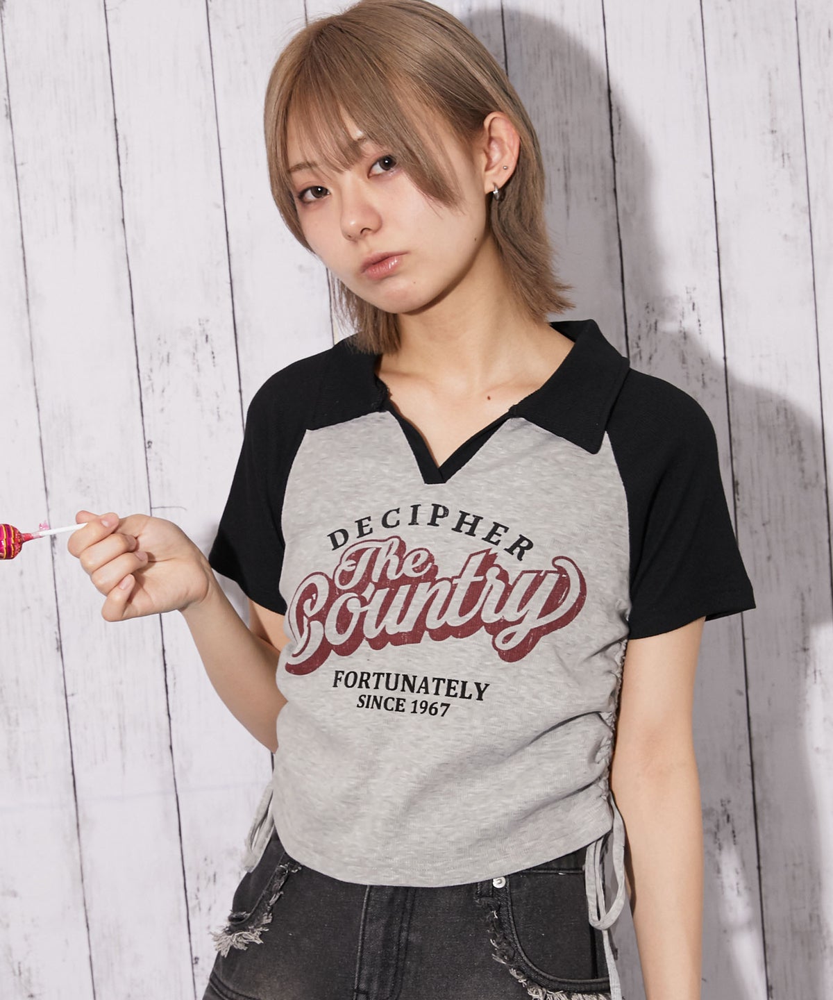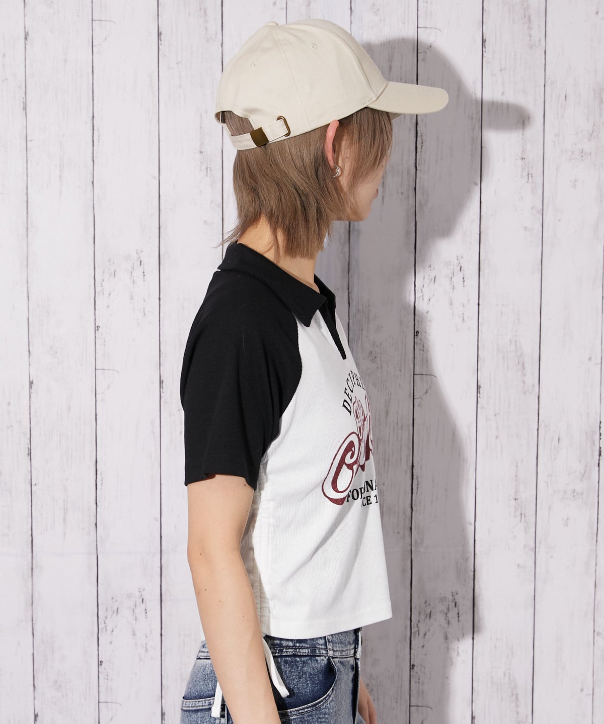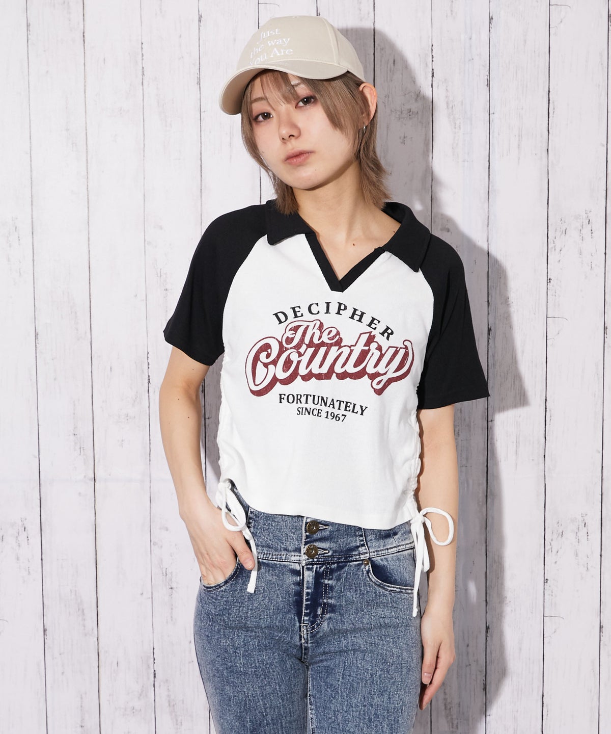 《配色ラグラン×英字ロゴ》スキッパーTシャツ/ストリート/春夏/全2色
