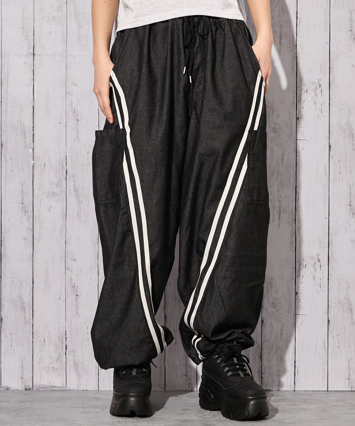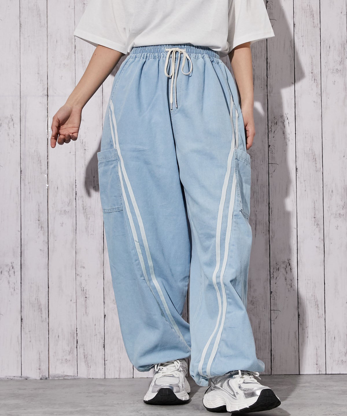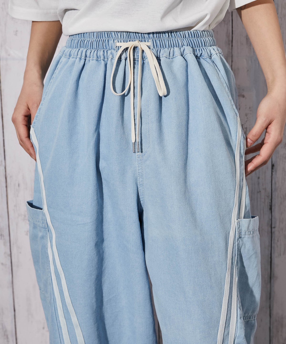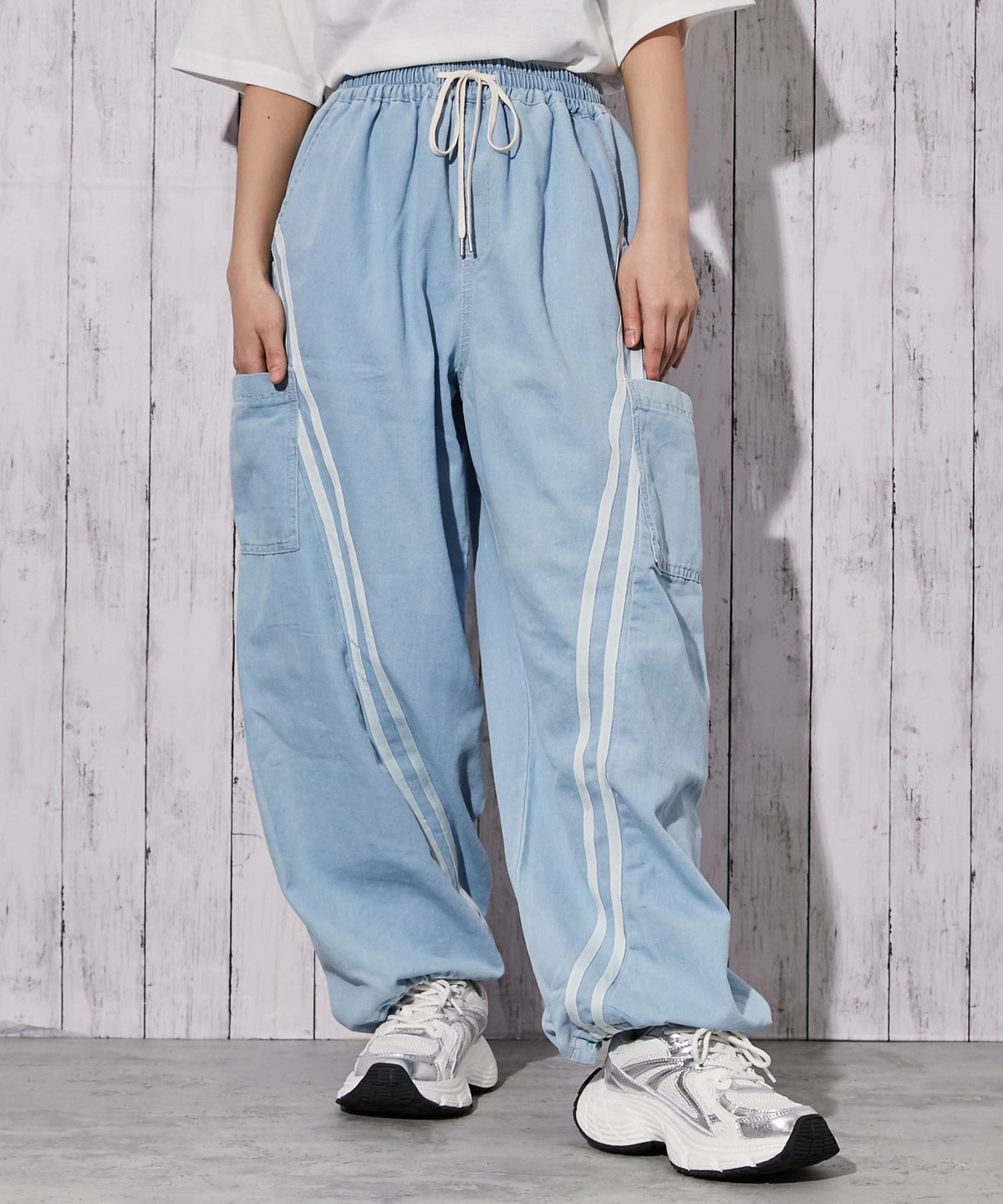《デニム×カーゴ×ライン》ワイドカーゴパンツ/ストリート/オールシーズン/全3色