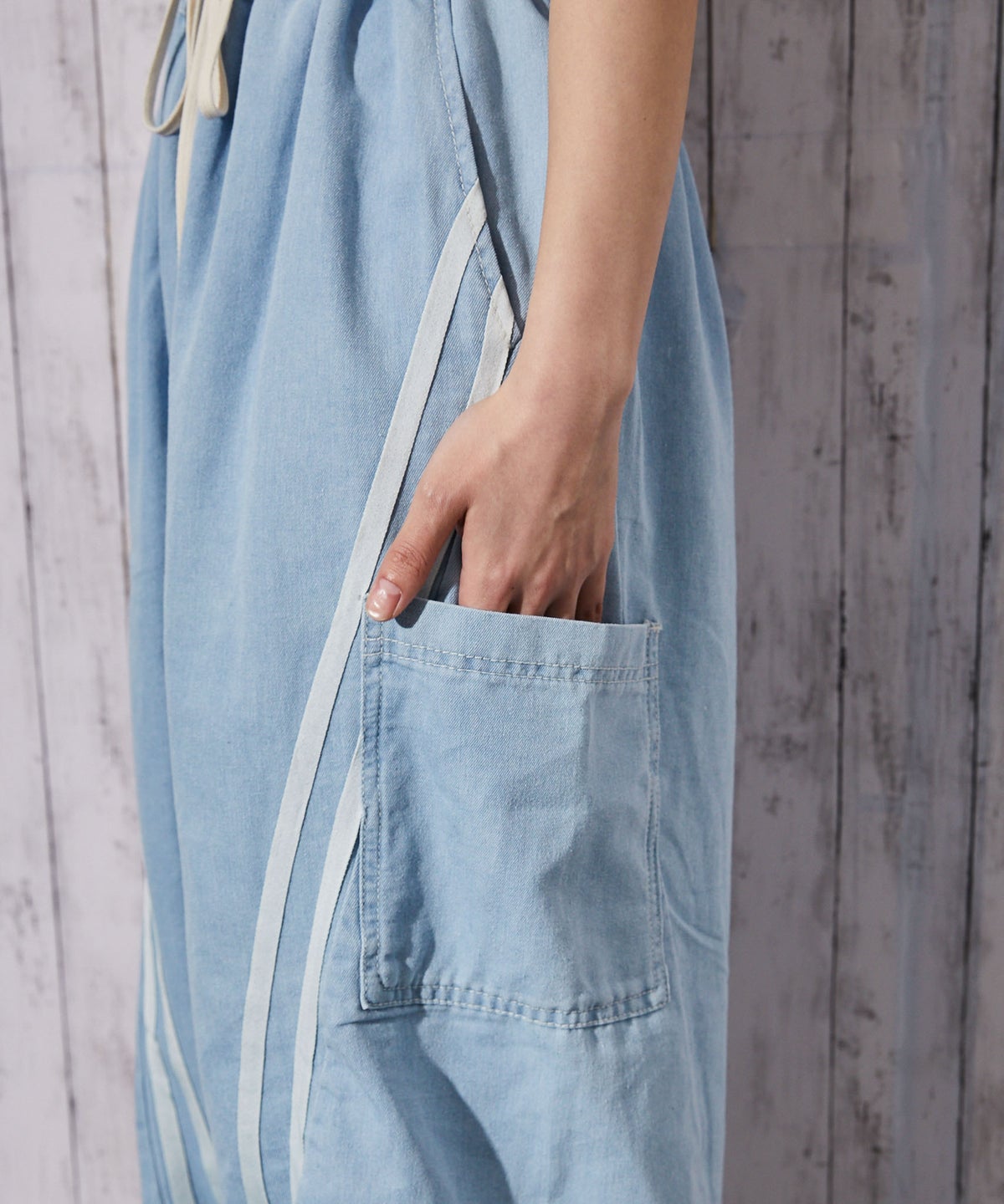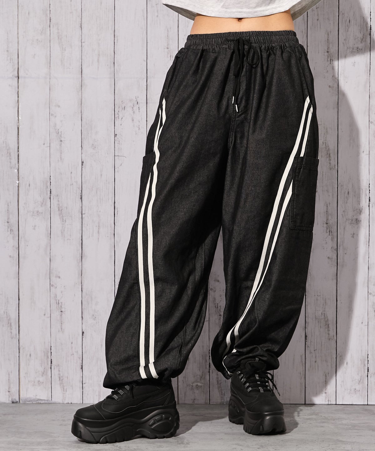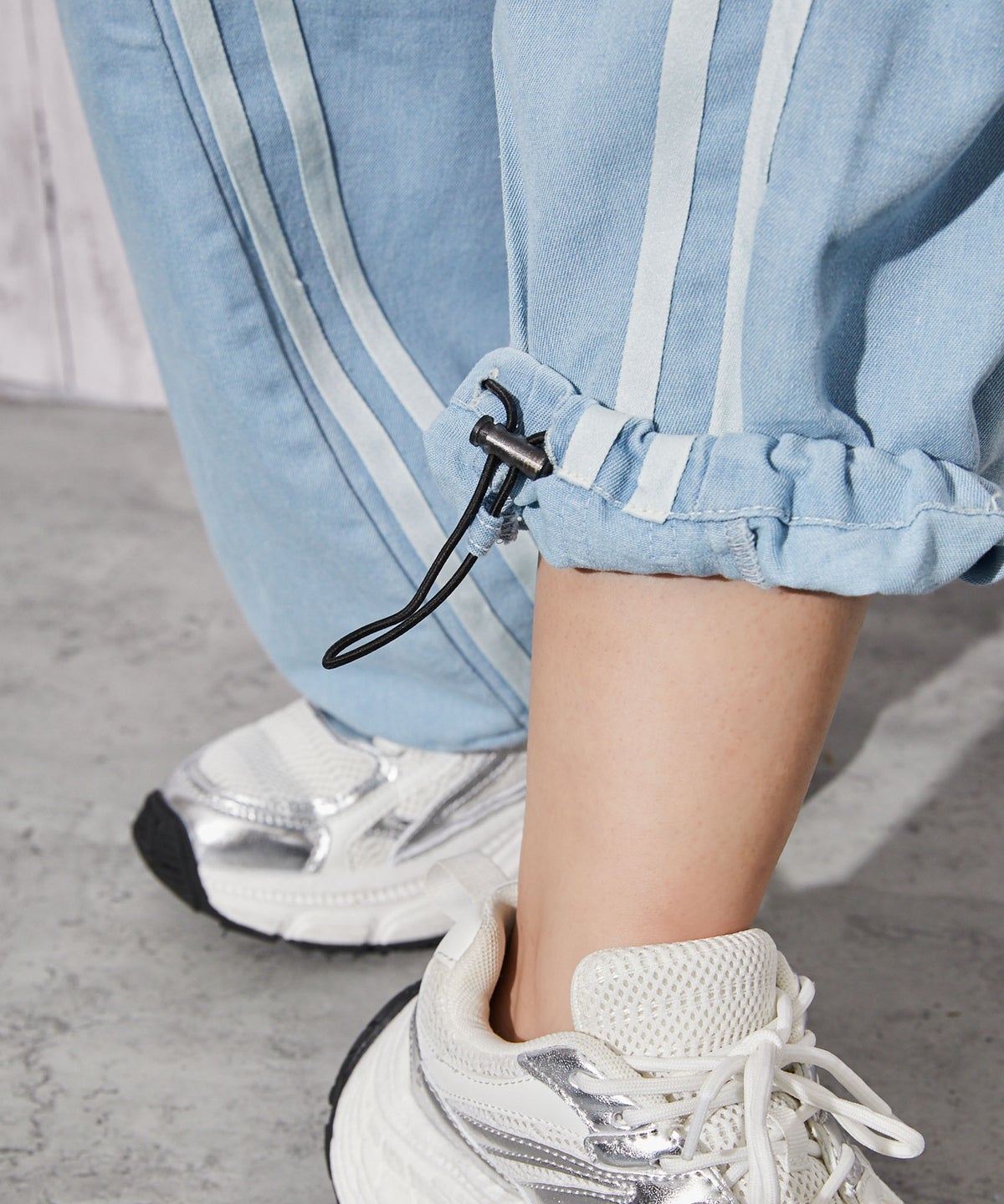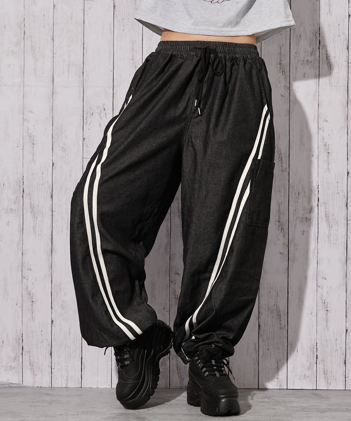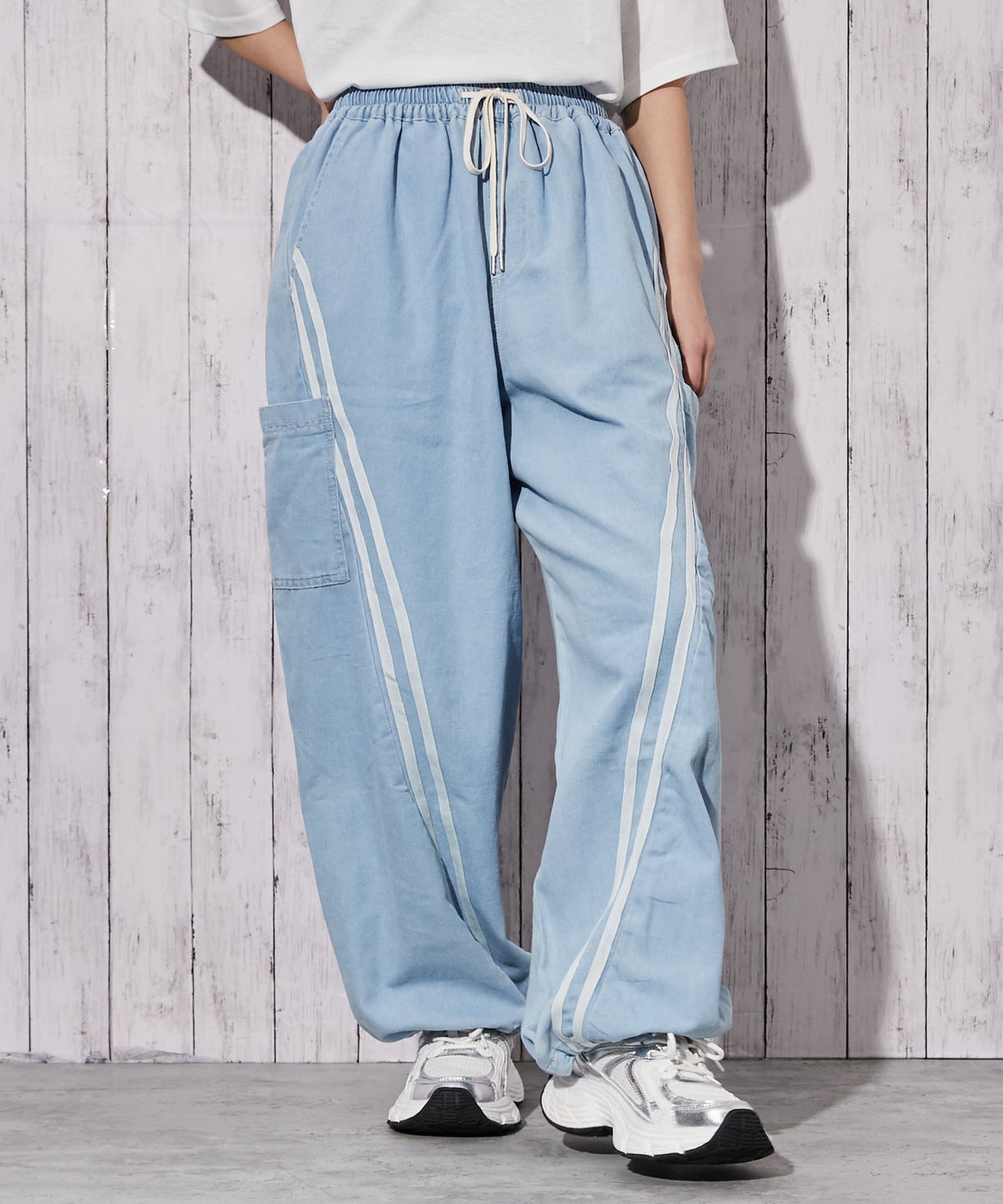 《デニム×カーゴ×ライン》ワイドカーゴパンツ/ストリート/オールシーズン/全3色