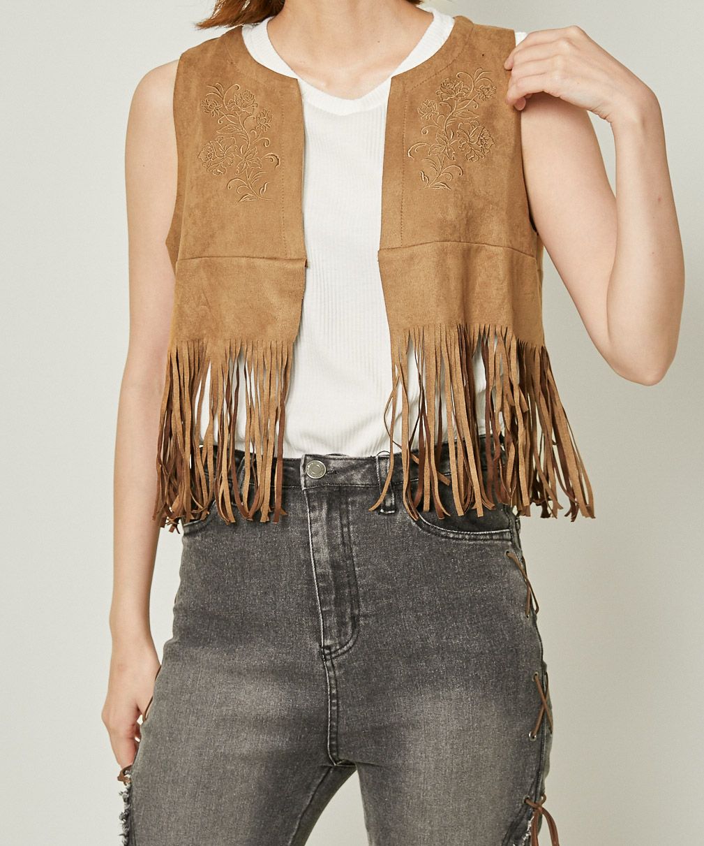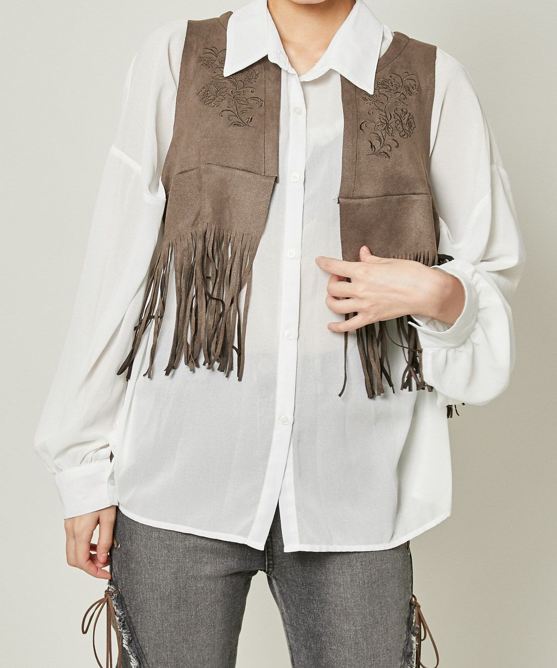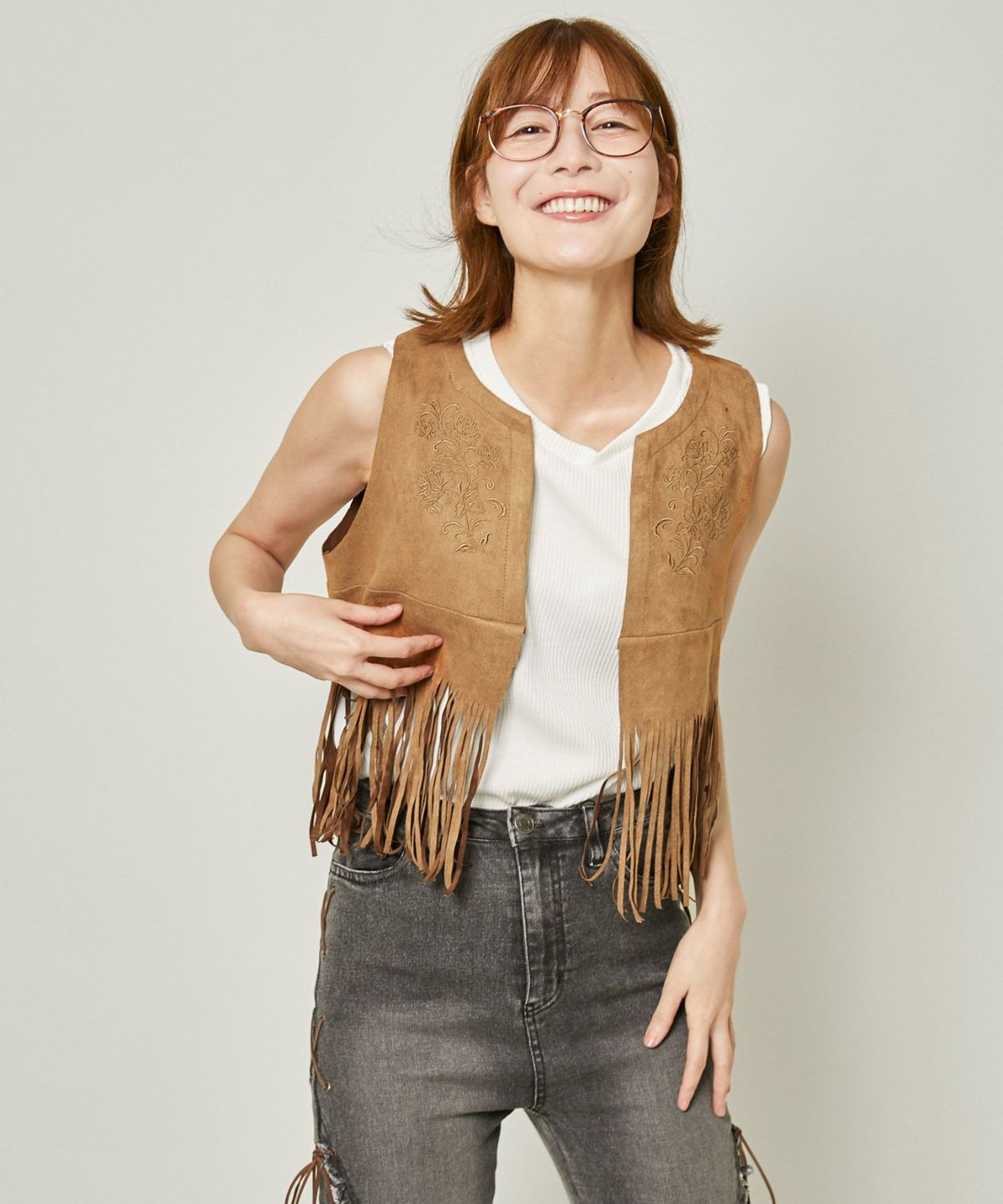 他の画像を見る 《ヴィンテージムード×個性派フリンジ》主役級スエード刺繍ベスト 2BUY10%OFF 定価 ¥ 5,489 のところ SALE価格 ¥ 1,969 税込 カートに入れる お気に入りに登録する