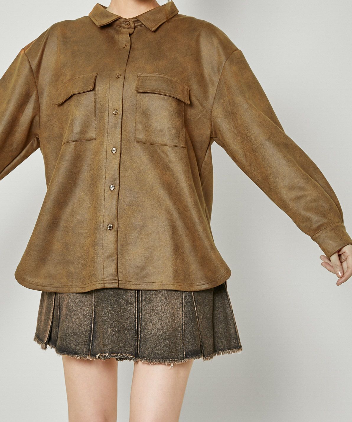 他の画像を見る 《フェイクレザー見え×ゆるシルエット》一枚でサマ見え!合皮風ポンチジャケット 2BUY10%OFF 定価 ¥ 6,589 のところ SALE価格 ¥ 2,739 税込 カートに入れる お気に入りに登録する