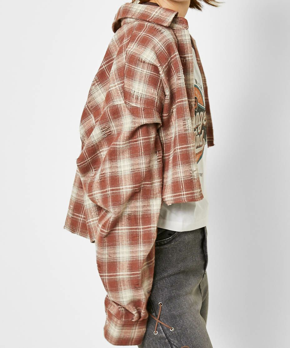 他の画像を見る 《トレンド感×ラフな抜け感》ストリート映え抜群!ダメージ加工チェックショートシャツ 2BUY10%OFF 定価 ¥ 4,939 のところ SALE価格 ¥ 1,639 税込 カートに入れる お気に入りに登録する