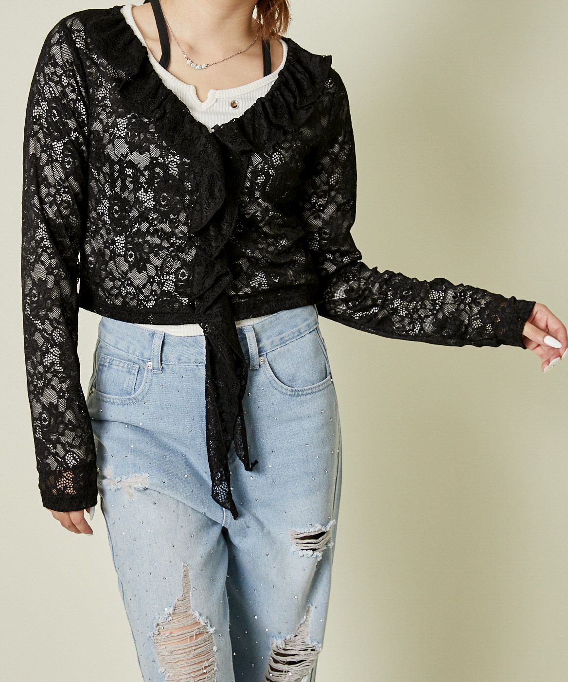 他の画像を見る 《レース×フリル前結び》レディース カーディガン シアー 羽織り トップス 春夏秋 2BUY10%OFF 定価 ¥ 4,389 のところ SALE価格 ¥ 1,529 税込 カートに入れる お気に入りに登録する