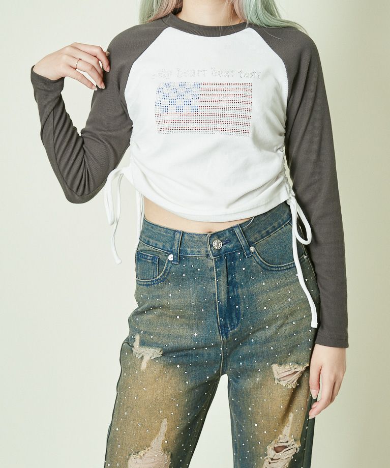 他の画像を見る 《ラインストーン×ドロストデザイン》レディース テレコ 長袖トップス クロップド丈 春秋 2BUY10%OFF 定価 ¥ 4,389 のところ SALE価格 ¥ 1,755 税込 カートに入れる お気に入りに登録する