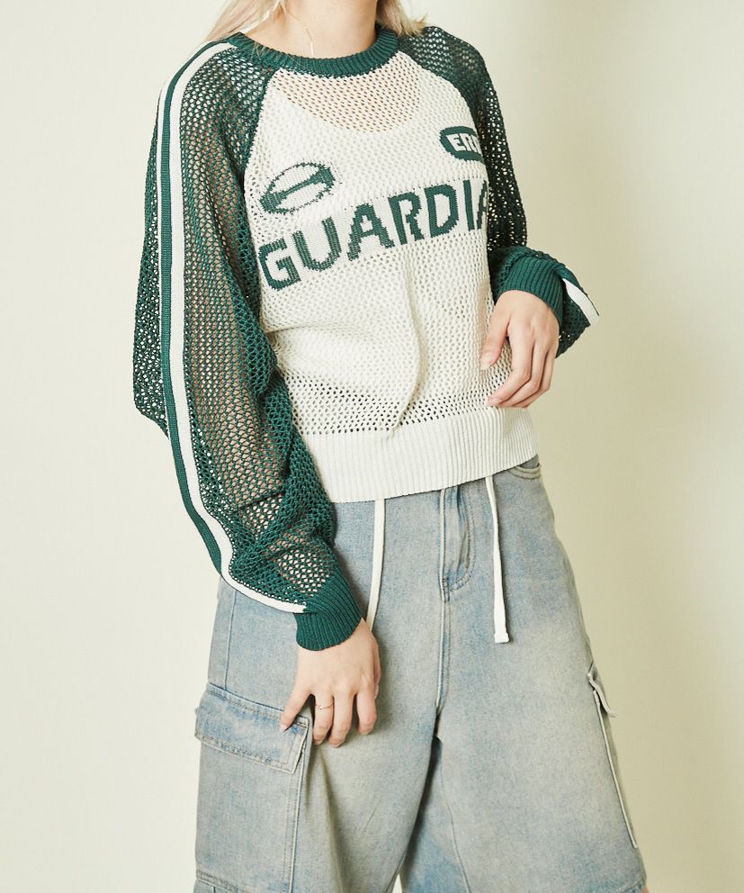 他の画像を見る 《メッシュ×ライン袖》レディース ニットプルオーバー 透かし編み 春夏秋 2BUY10%OFF 定価 ¥ 4,939 のところ SALE価格 ¥ 1,975 税込 カートに入れる お気に入りに登録する