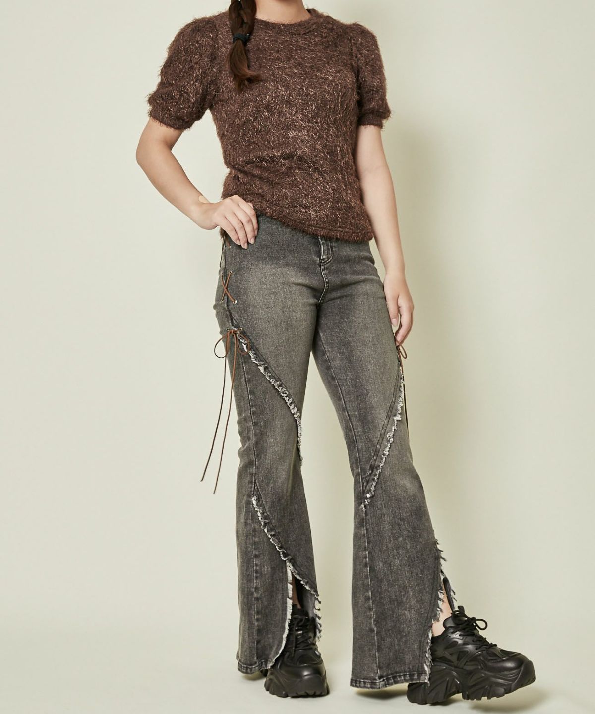 他の画像を見る 《レースアップ×ペイント柄》レディース クロップドトップス 編み上げデザイン 春秋 2BUY10%OFF 定価 ¥ 4,939 のところ SALE価格 ¥ 1,639 税込 カートに入れる お気に入りに登録する