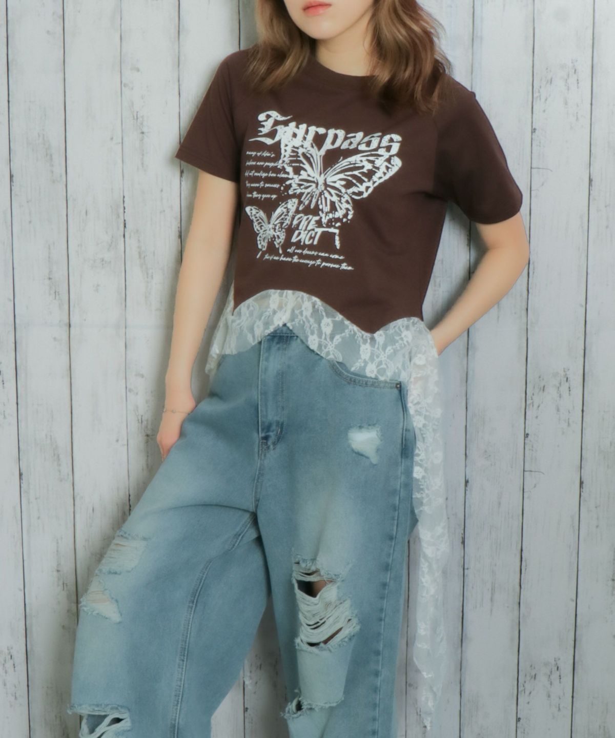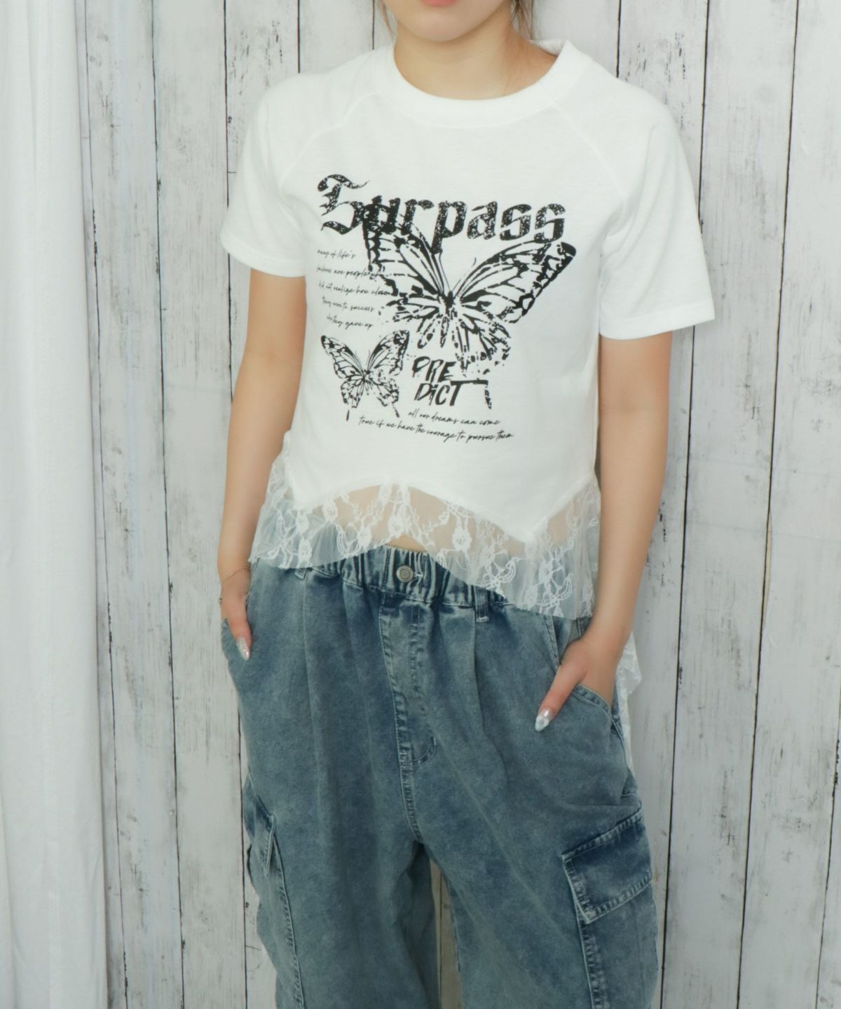 他の画像を見る 《バタフライ×ロングレース裾》レディース 半袖Tシャツ Y2K 甘辛MIX 春夏秋 2BUY10%OFF 定価 ¥ 4,389 のところ SALE価格 ¥ 1,419 税込 カートに入れる お気に入りに登録する