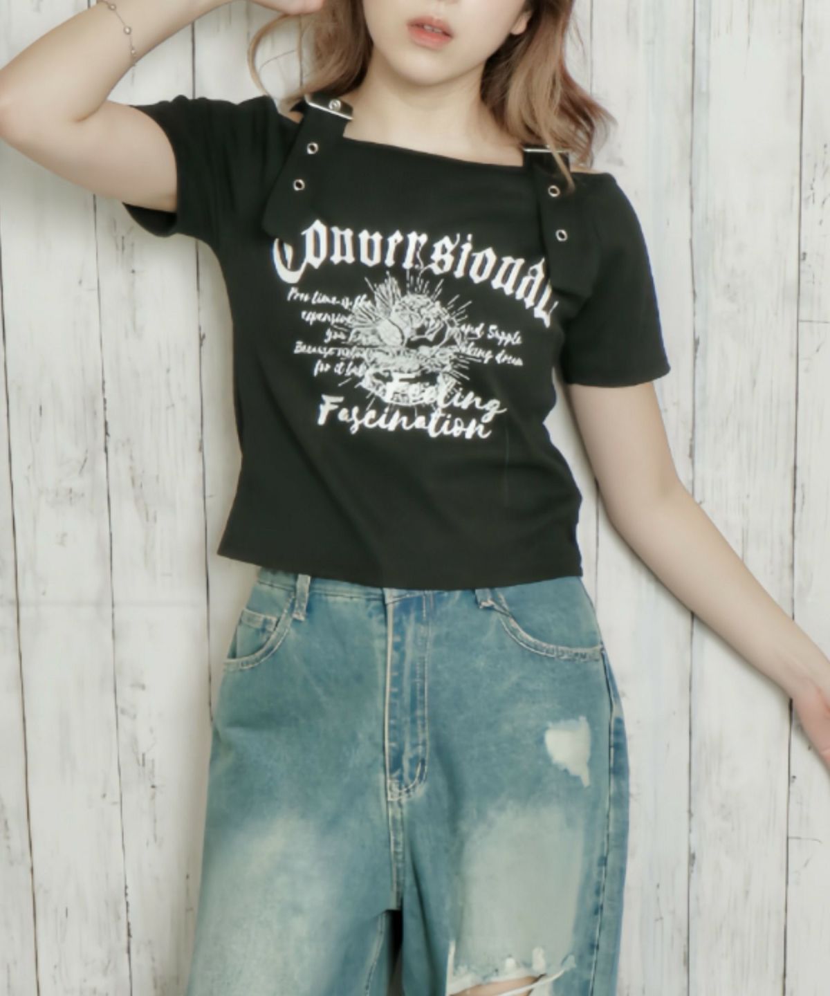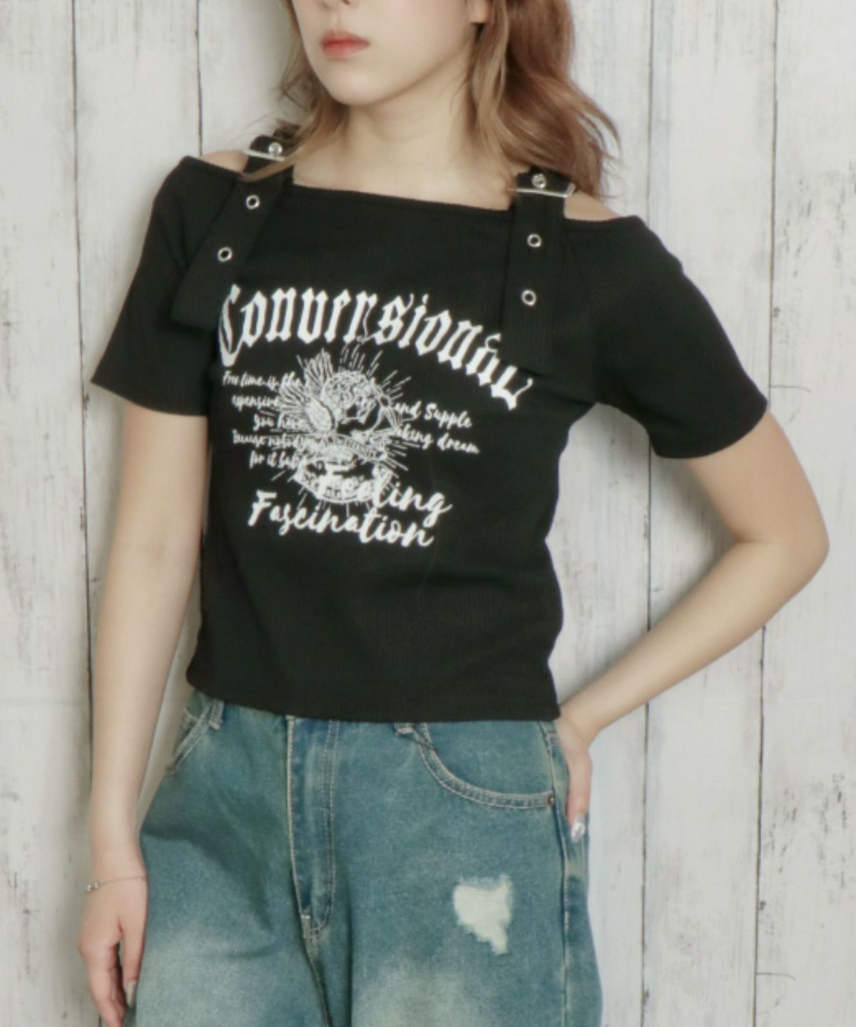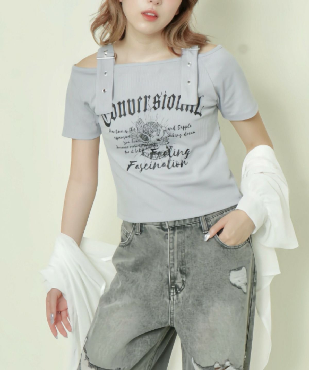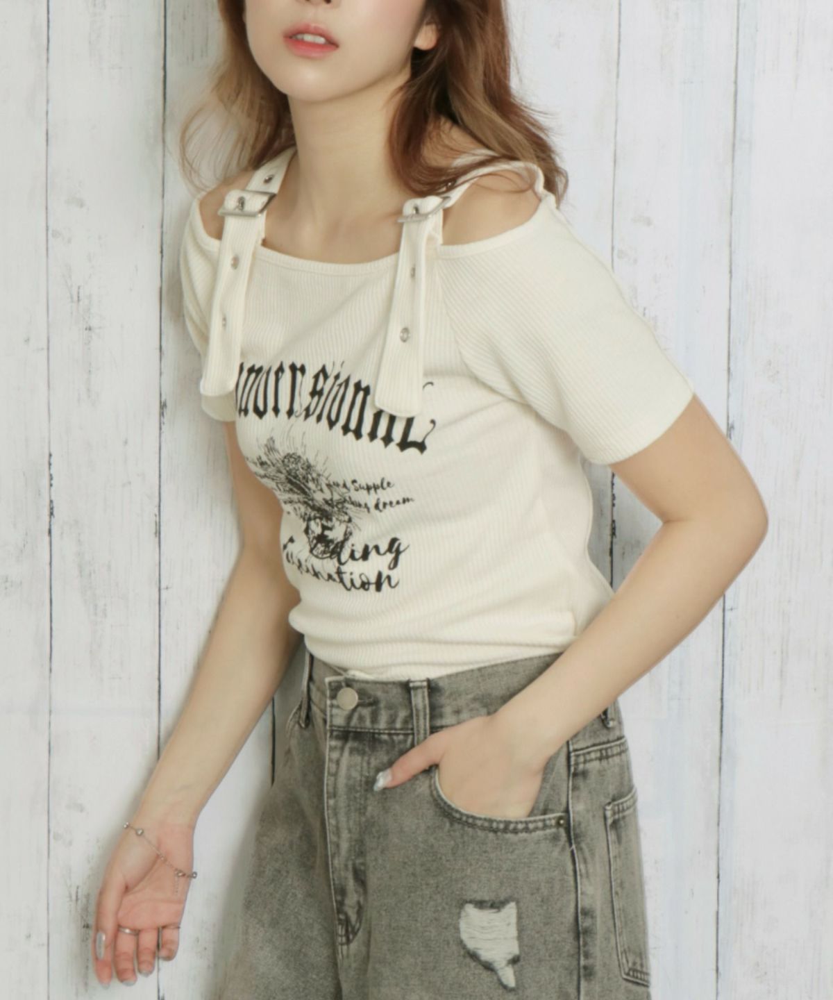 他の画像を見る 《肩ベルト×ロゴプリント》レディース テレコ半袖トップス オフショル風 春夏秋 2BUY10%OFF 定価 ¥ 4,389 のところ SALE価格 ¥ 1,755 税込 カートに入れる お気に入りに登録する