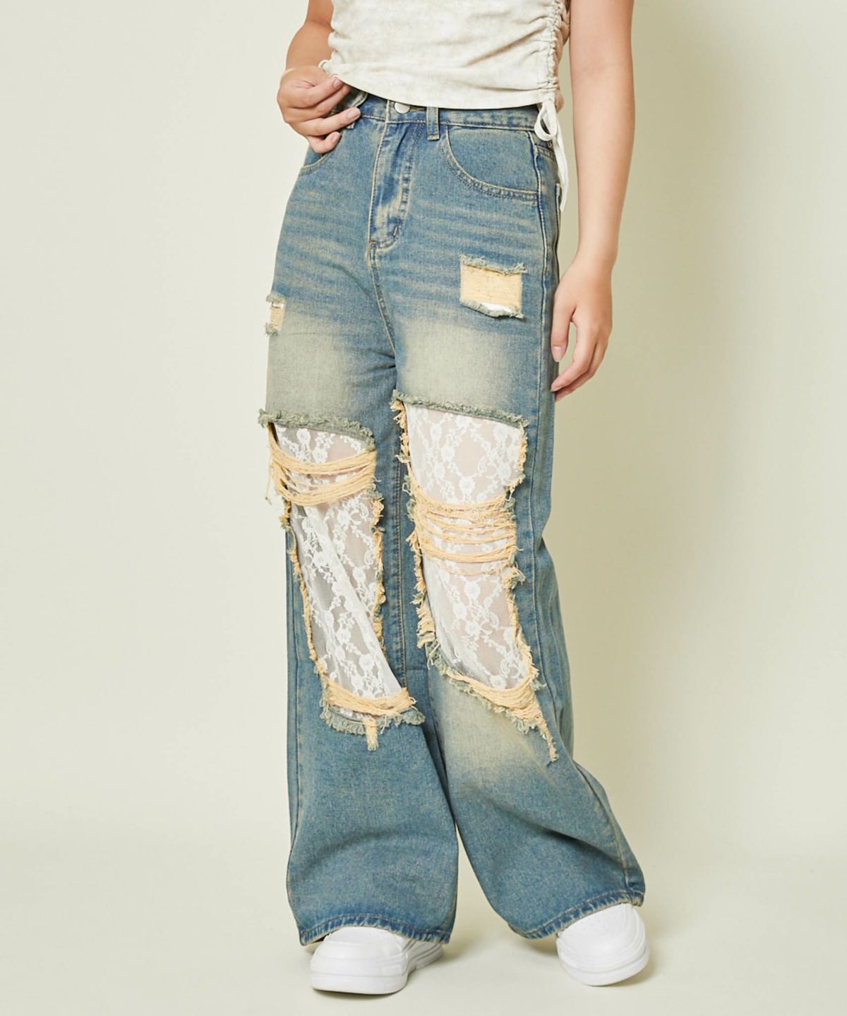 他の画像を見る 《レース×クラッシュ加工》レディース ワイドデニムパンツ 個性派 映え 春夏秋冬 2BUY10%OFF 定価 ¥ 6,589 のところ SALE価格 ¥ 2,739 税込 カートに入れる お気に入りに登録する