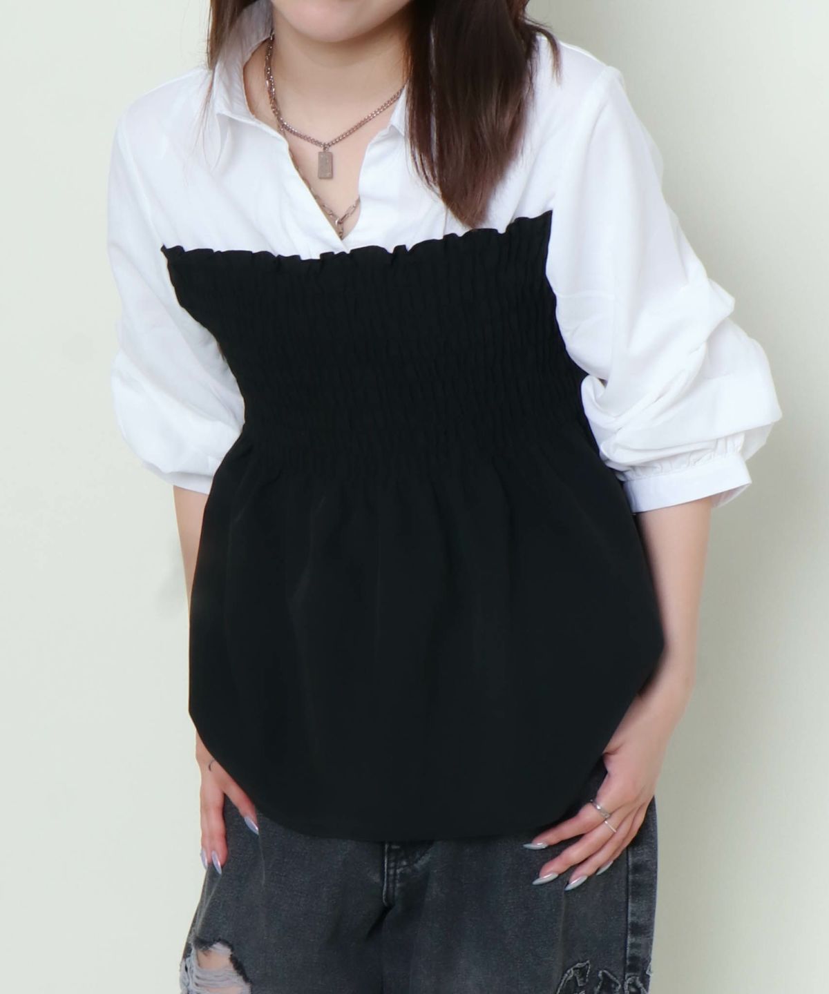 他の画像を見る 《シャーリング×フェイクレイヤード》レディース ドッキングシャツ ブラウス風 春秋 2BUY10%OFF 定価 ¥ 5,489 のところ SALE価格 ¥ 2,744 税込 カートに入れる お気に入りに登録する