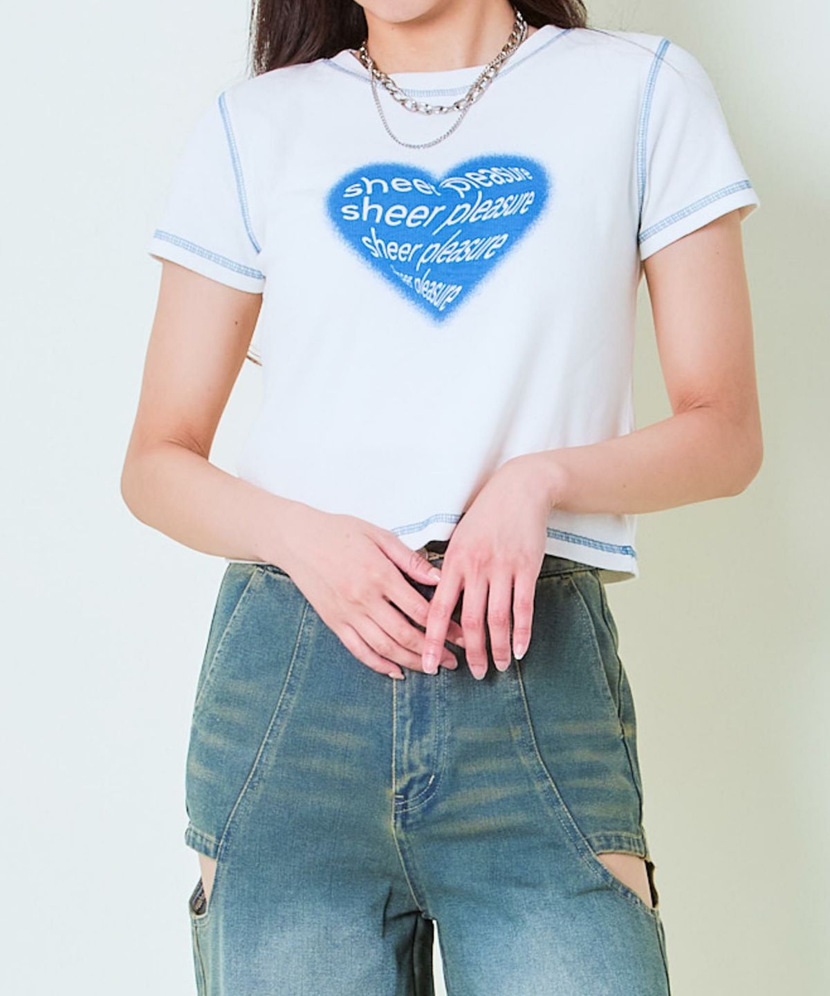 他の画像を見る 《ハートロゴ×配色ステッチ》レディース テレコ半袖Tシャツ クロップド丈 春夏秋 2BUY10%OFF 定価 ¥ 4,389 のところ SALE価格 ¥ 1,089 税込 カートに入れる お気に入りに登録する