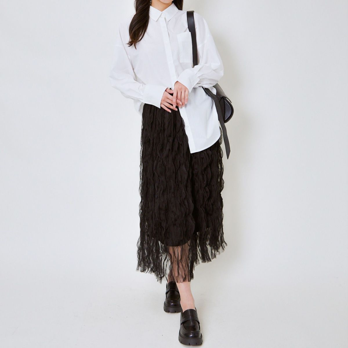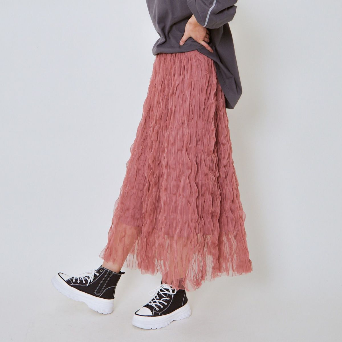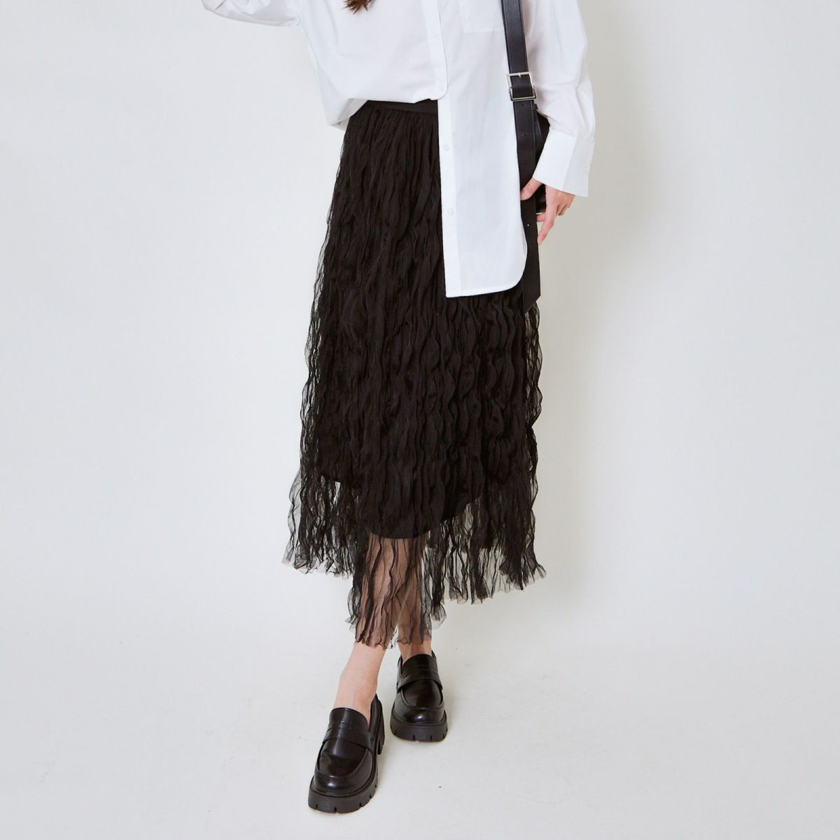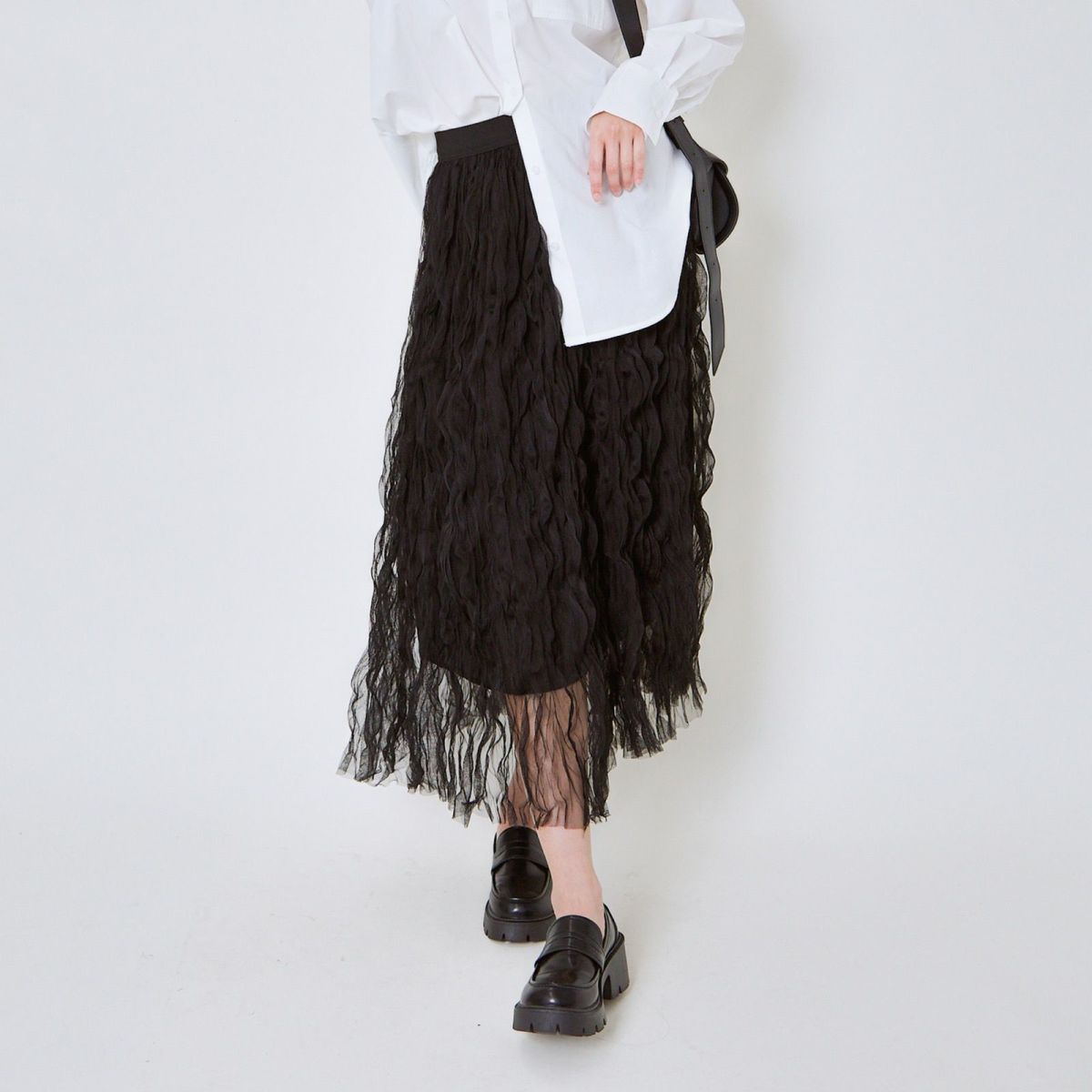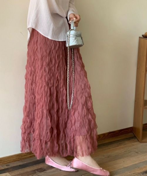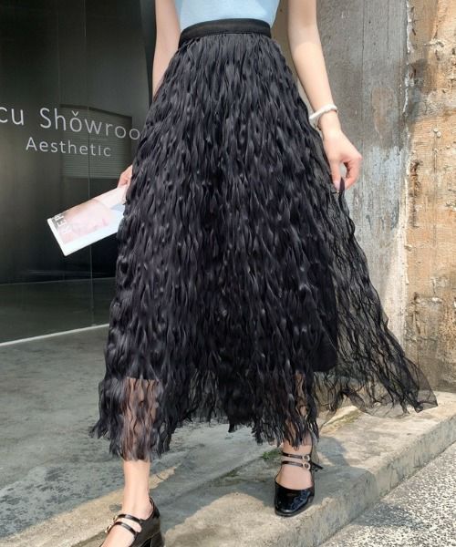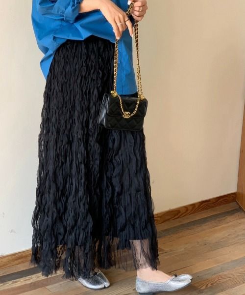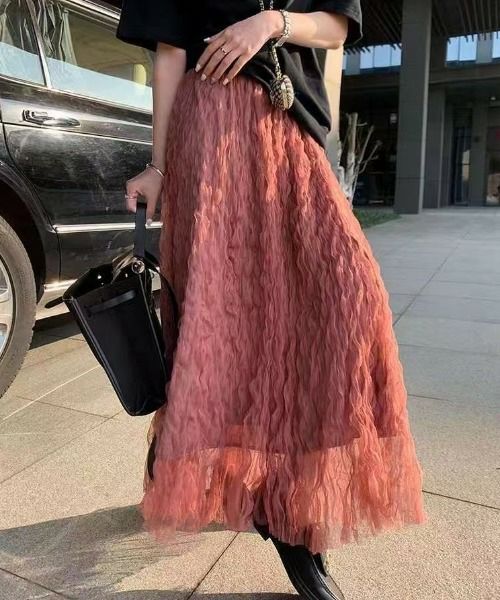 他の画像を見る 《ウェーブチュール×透け感レイヤード》レディース ロングスカート フレアシルエット 春夏秋冬 2BUY10%OFF 定価 ¥ 6,589 のところ SALE価格 ¥ 3,294 税込 カートに入れる お気に入りに登録する
