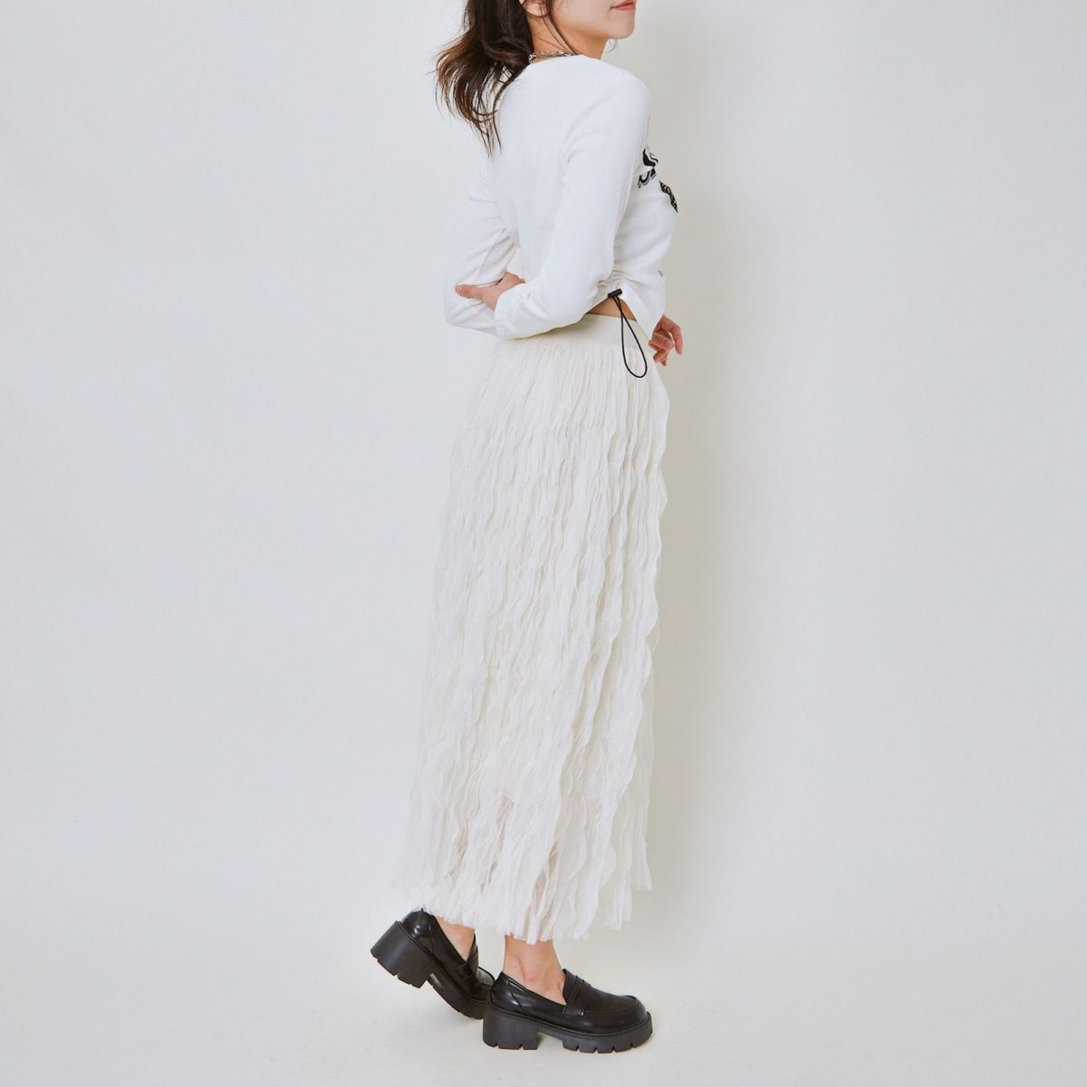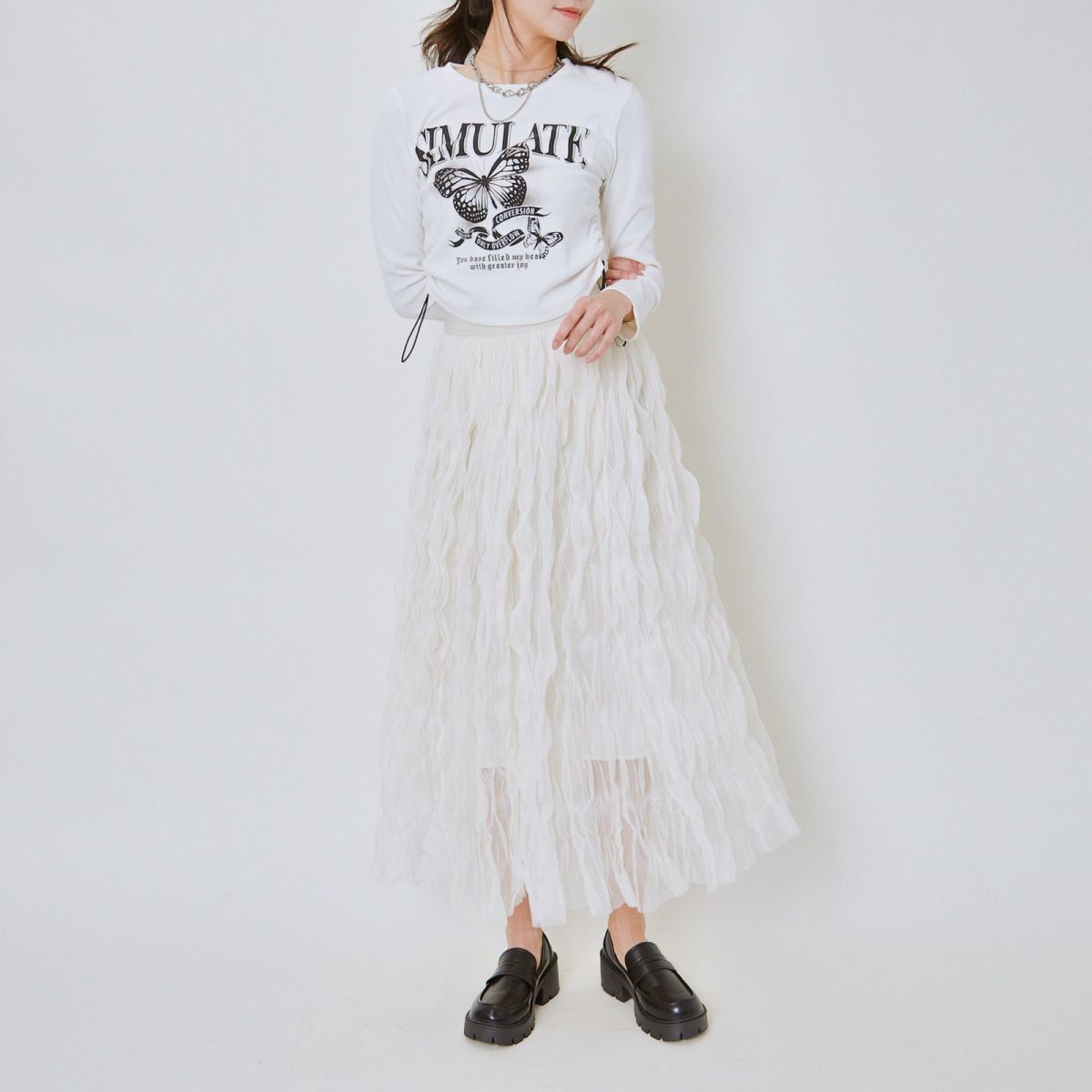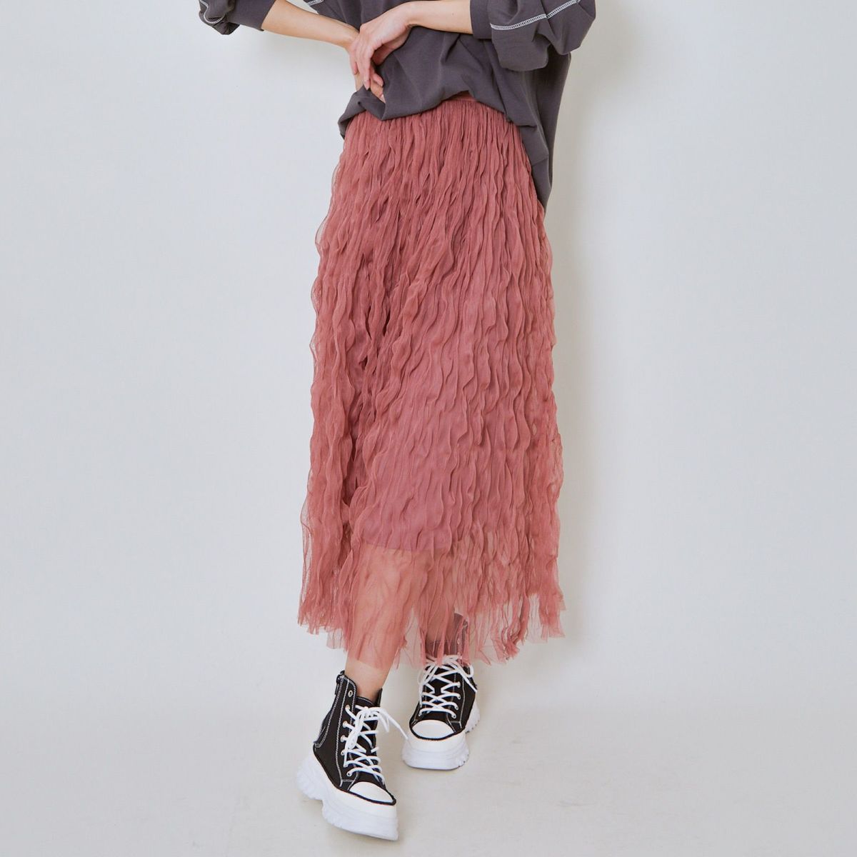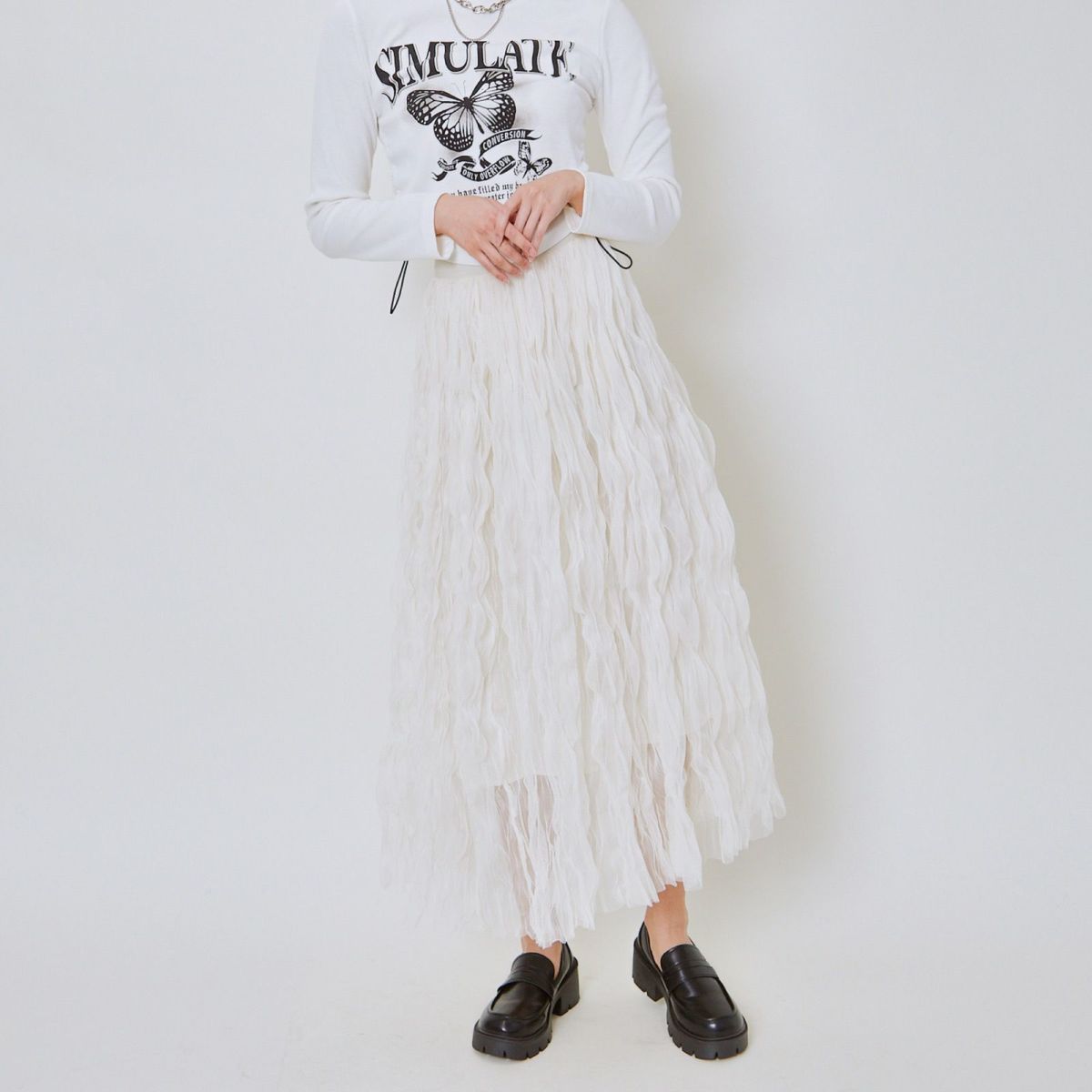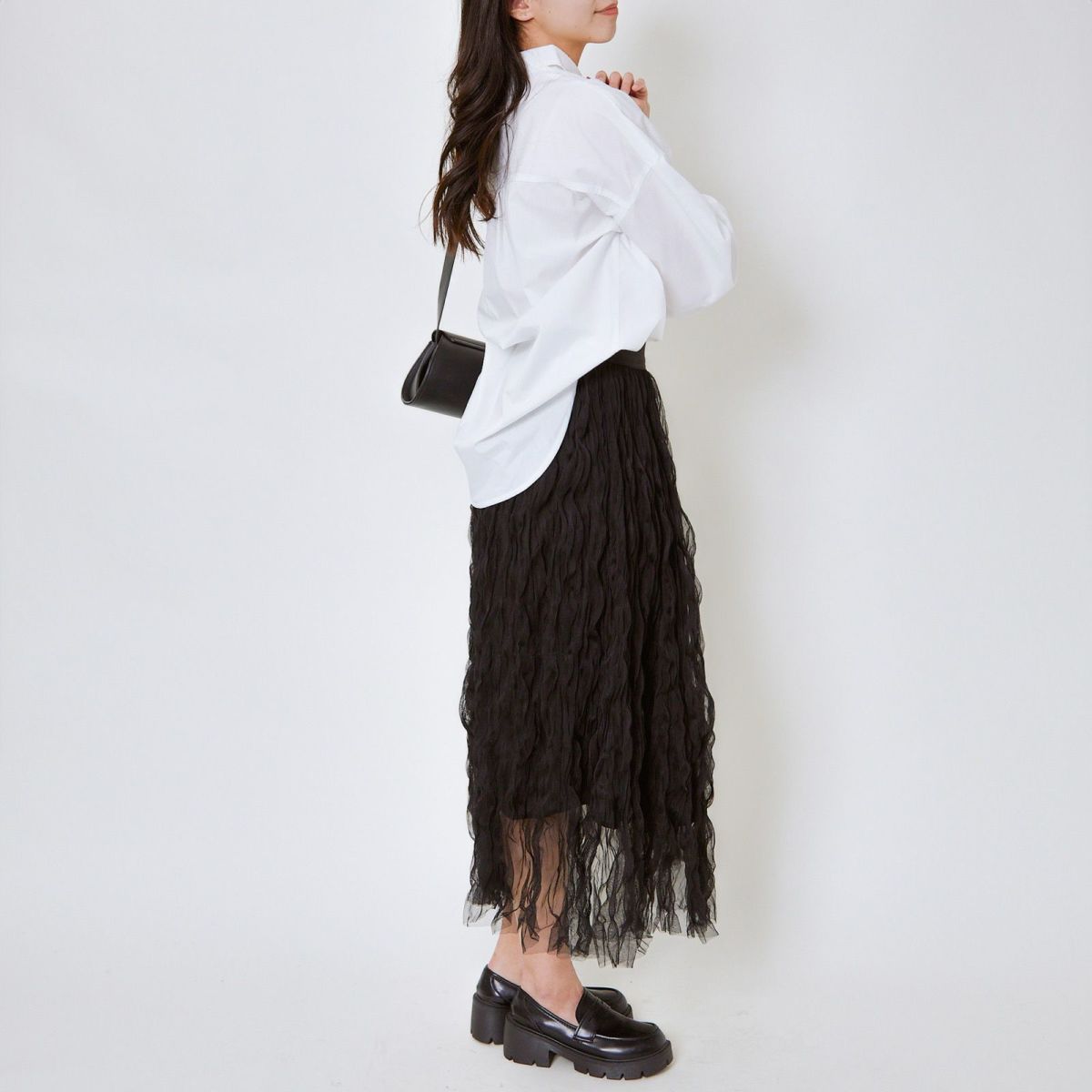 他の画像を見る 《ウェーブチュール×透け感レイヤード》レディース ロングスカート フレアシルエット 春夏秋冬 2BUY10%OFF 定価 ¥ 6,589 のところ SALE価格 ¥ 3,294 税込 カートに入れる お気に入りに登録する