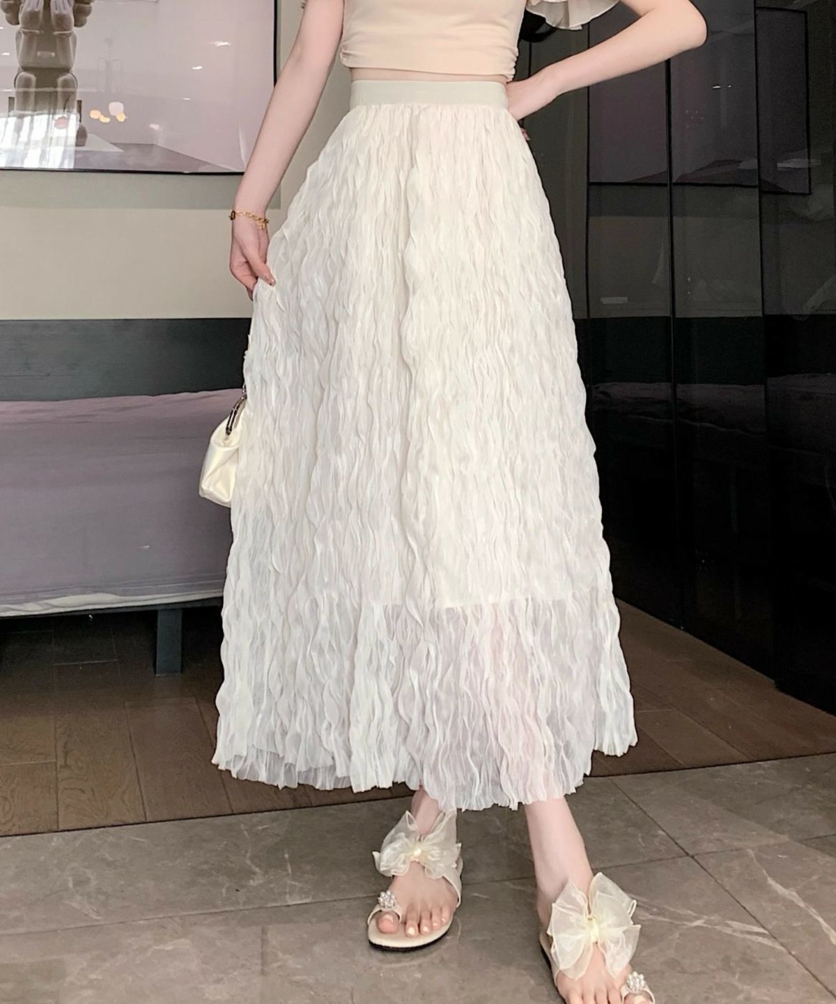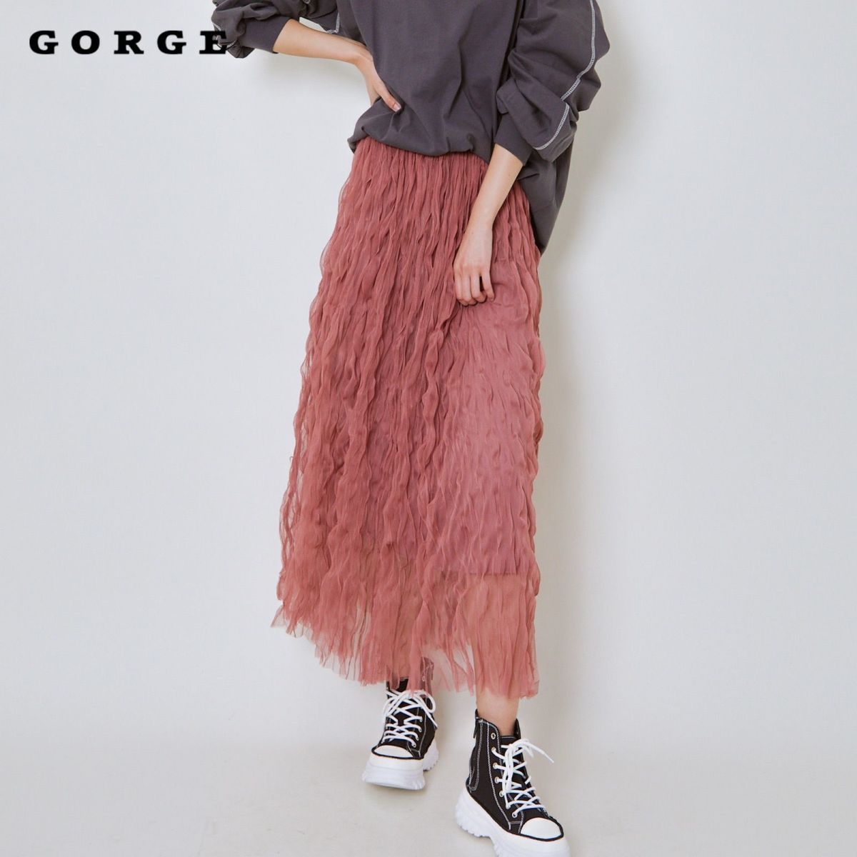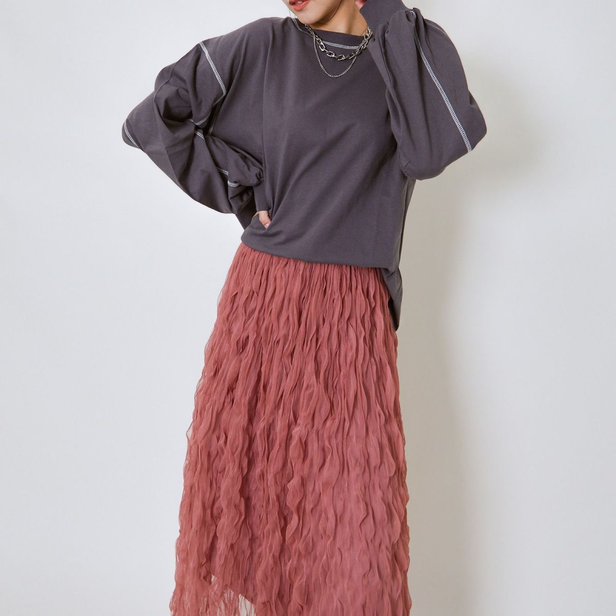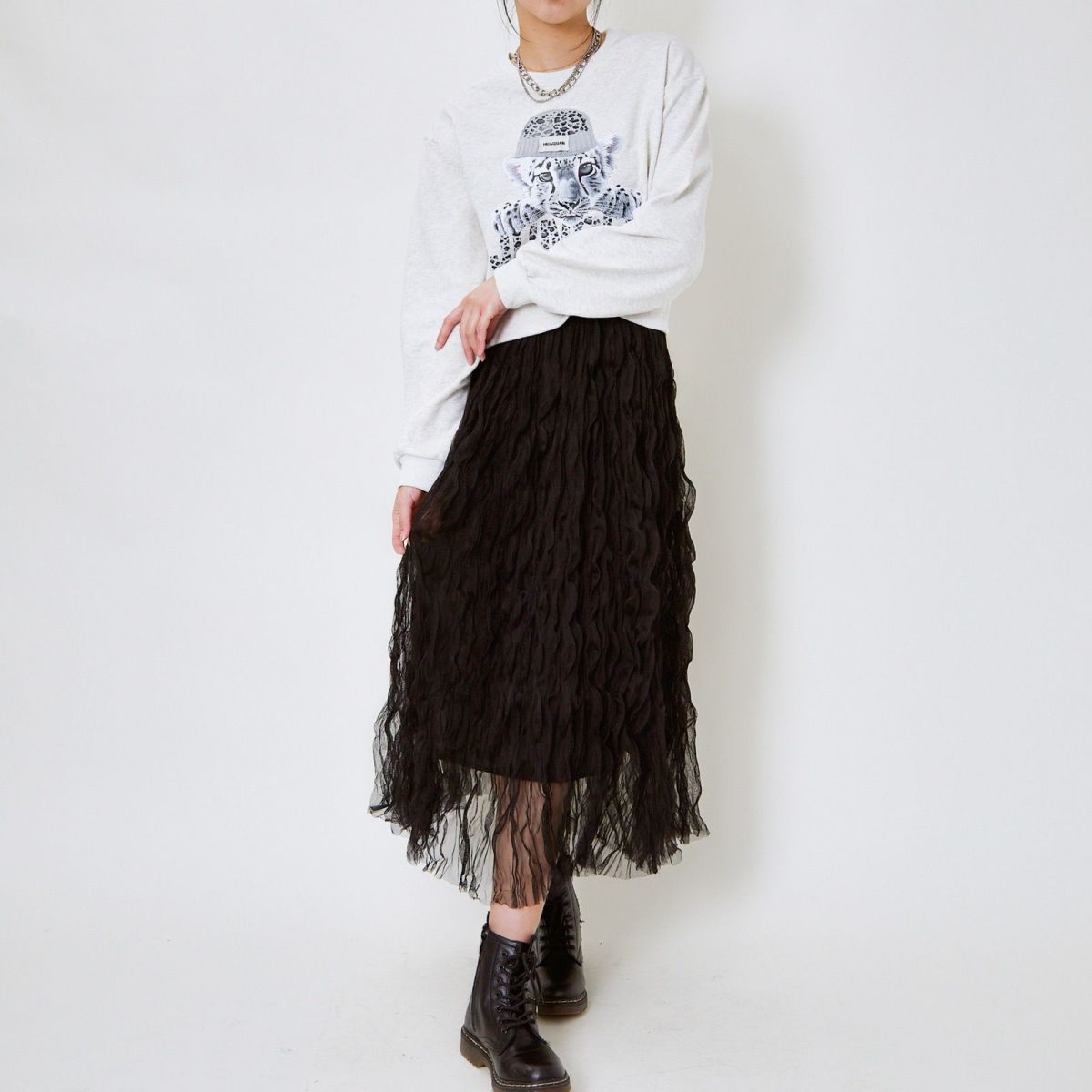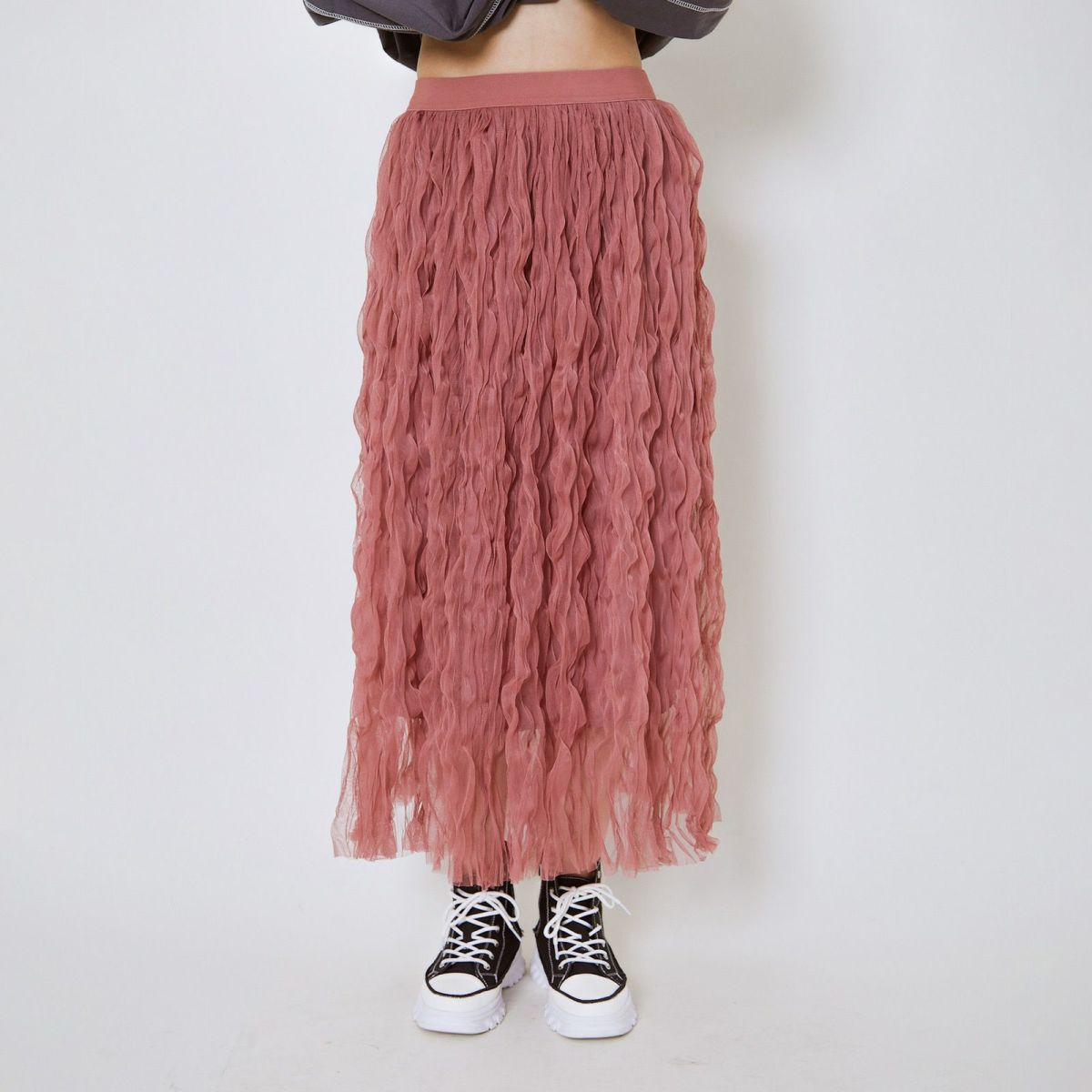 他の画像を見る 《ウェーブチュール×透け感レイヤード》レディース ロングスカート フレアシルエット 春夏秋冬 2BUY10%OFF 定価 ¥ 6,589 のところ SALE価格 ¥ 3,294 税込 カートに入れる お気に入りに登録する