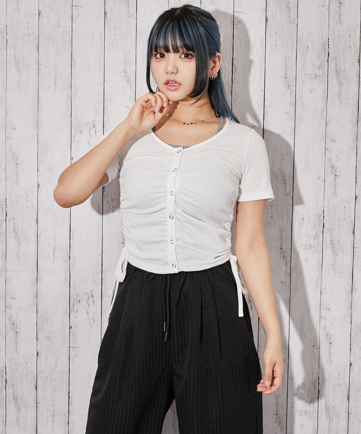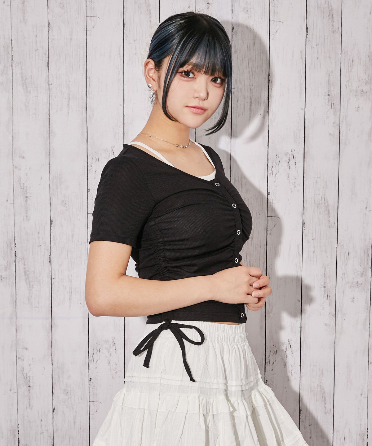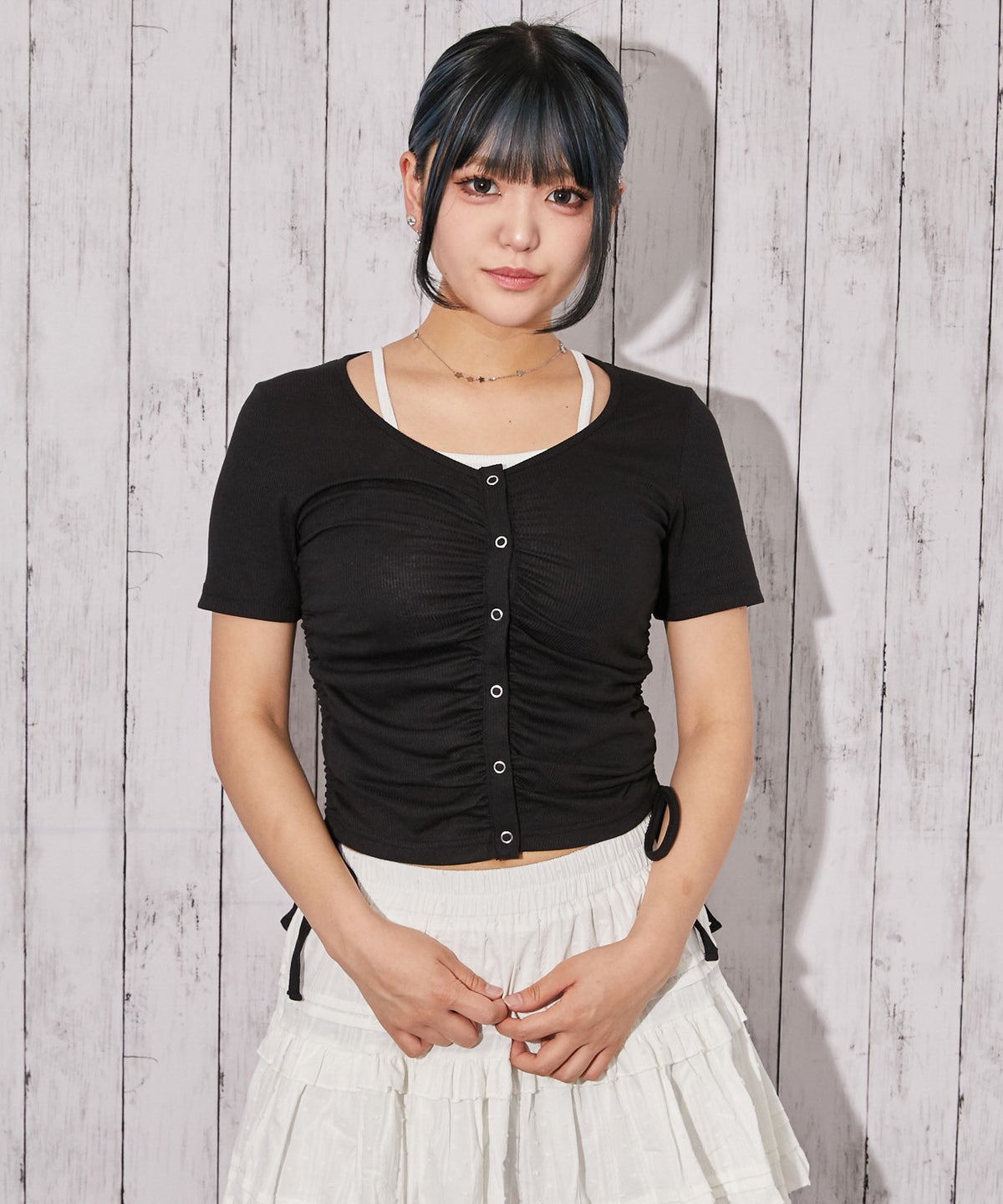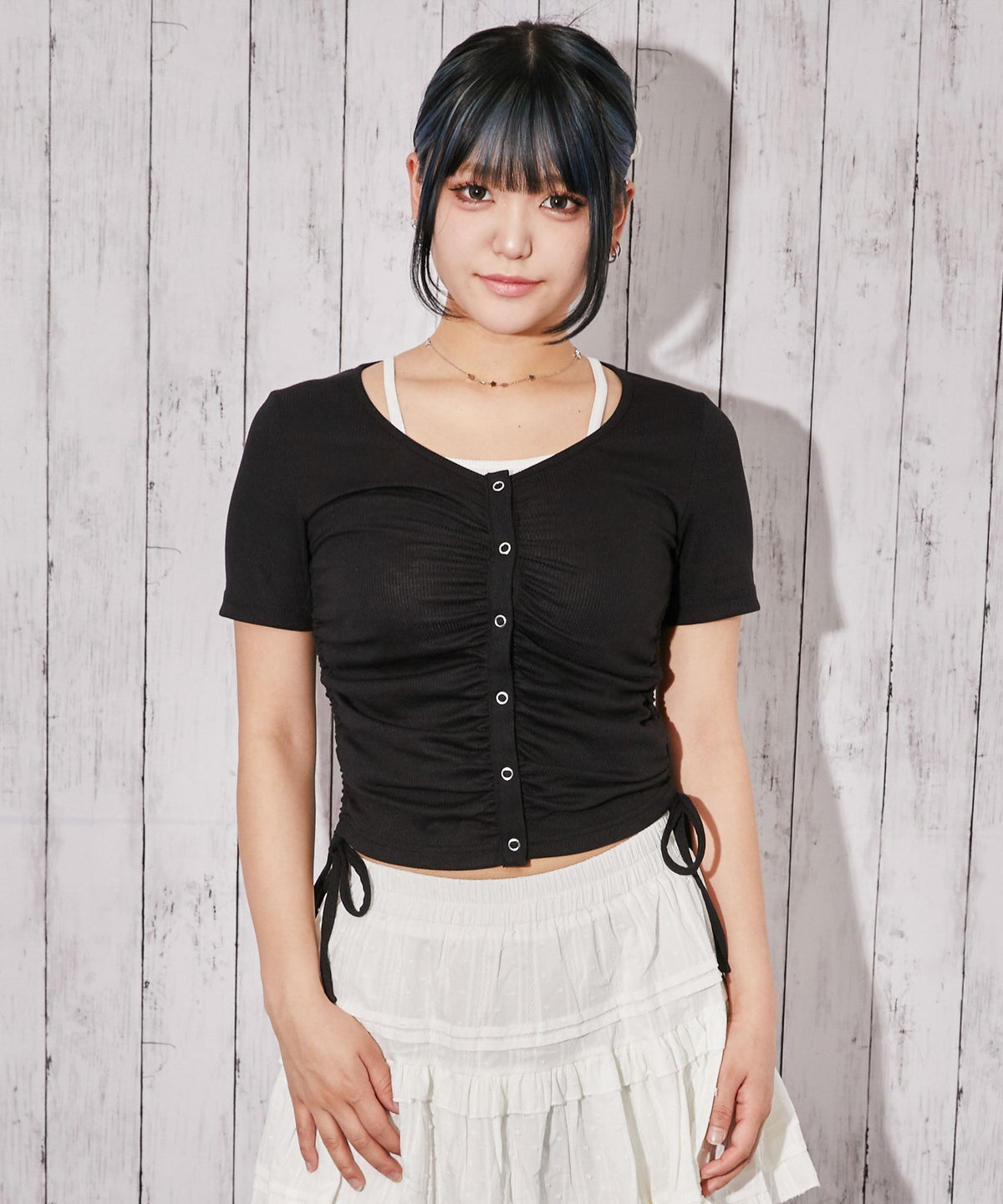 《フロントリボン×シャーリング》ブラウス/フェミニン/春夏/全3色