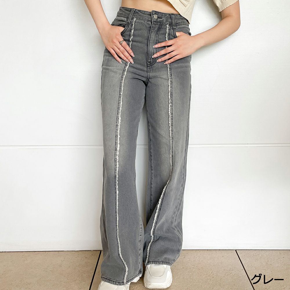 センターフリンジデニムワイドパンツ