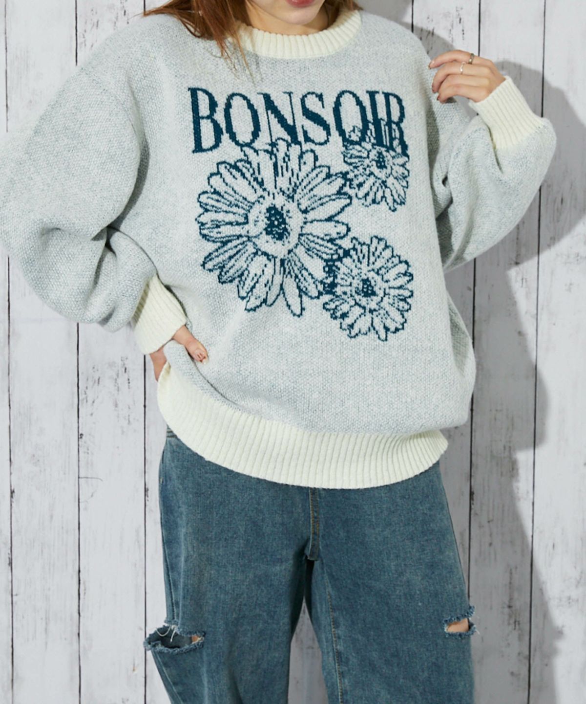他の画像を見る 《フラワージャカード×ロゴデザイン》レディース ニットプルオーバー ゆるシルエット 秋冬 NEW 2BUY10%OFF 定価 ¥ 6,039 のところ SALE価格 ¥ 3,019 税込 カートに入れる お気に入りに登録する
